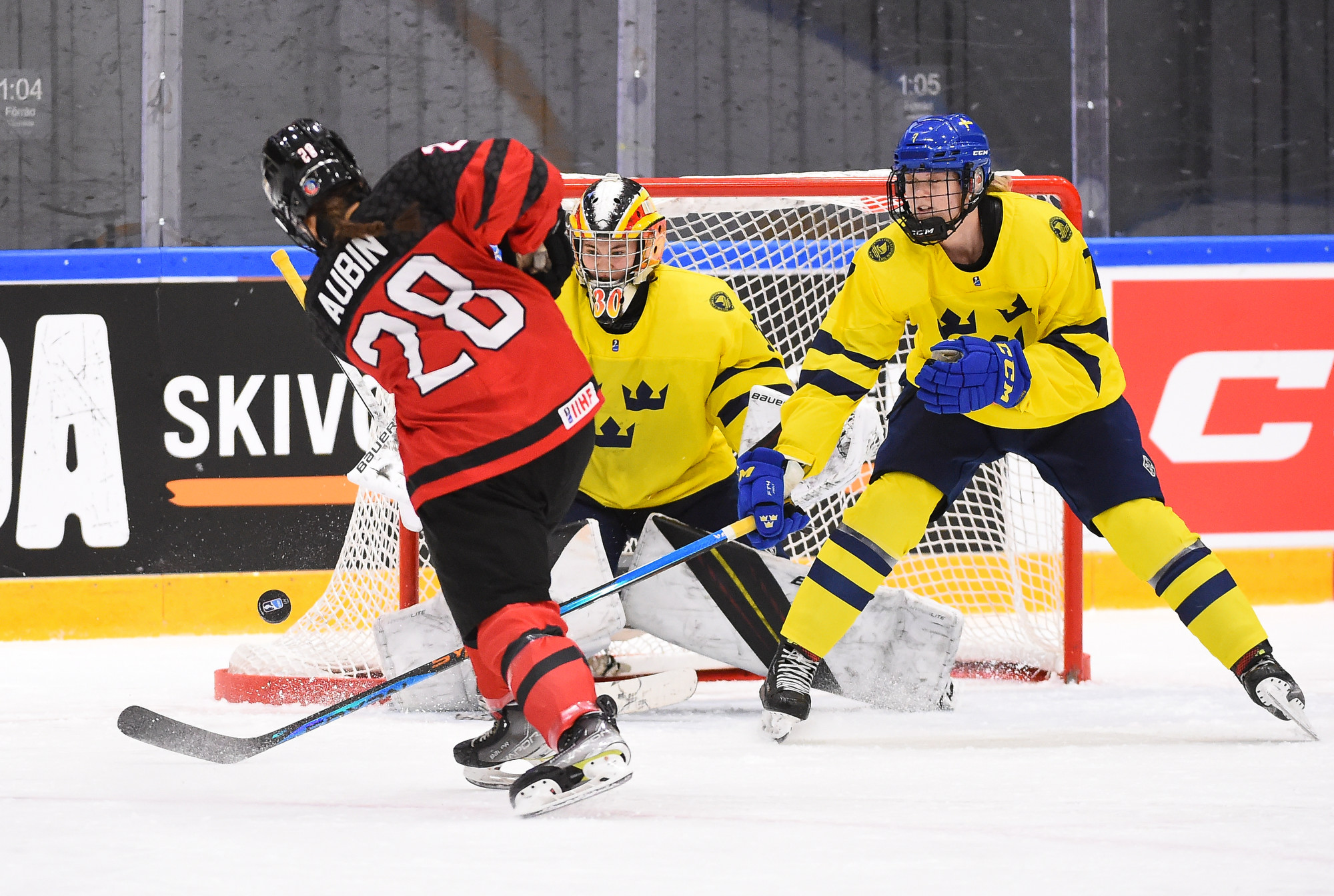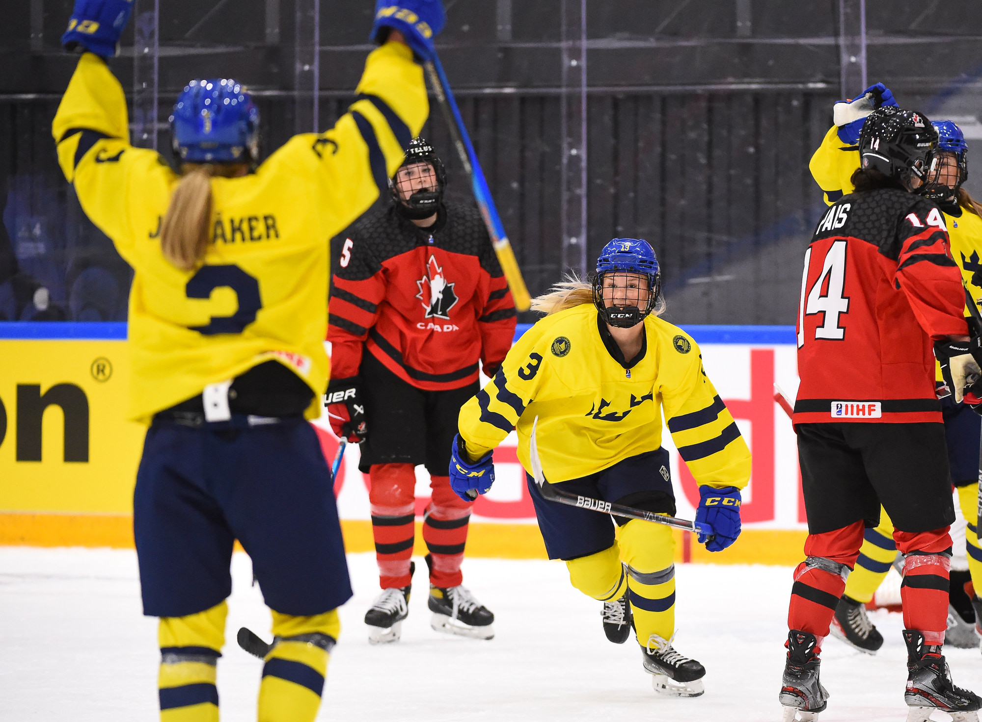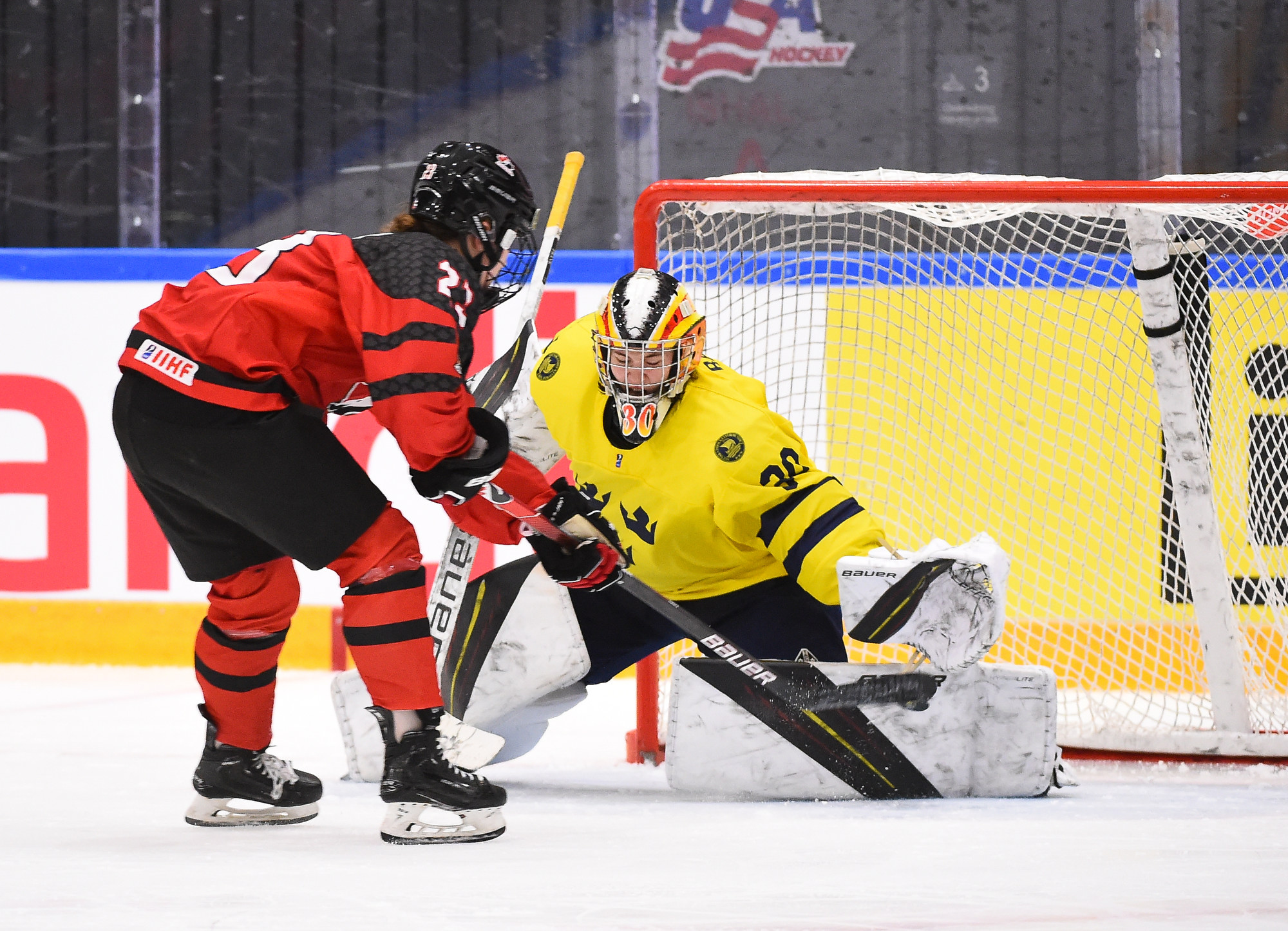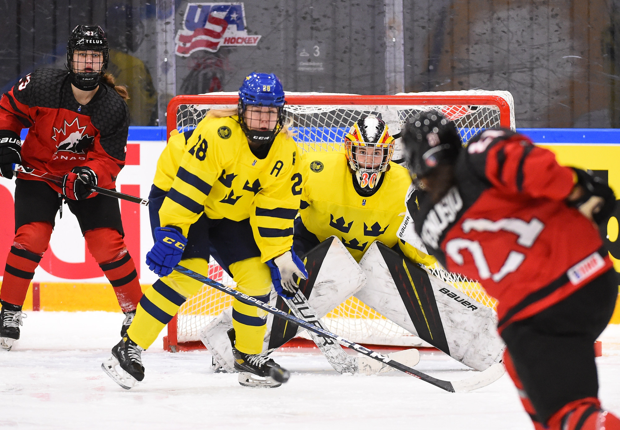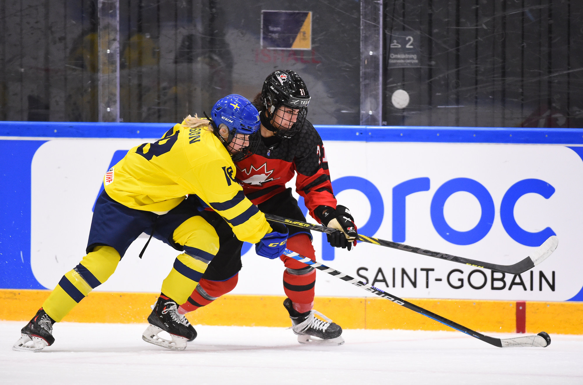 That proved to be much for even Canada’s penalty kill. Twenty-seven seconds before the end of the period, Mira Jungaker, one of Sweden’s returning players dom last Worlds, fired a slapshot that changed direction on its way to the back of the net, beating Clark on the blocker side.