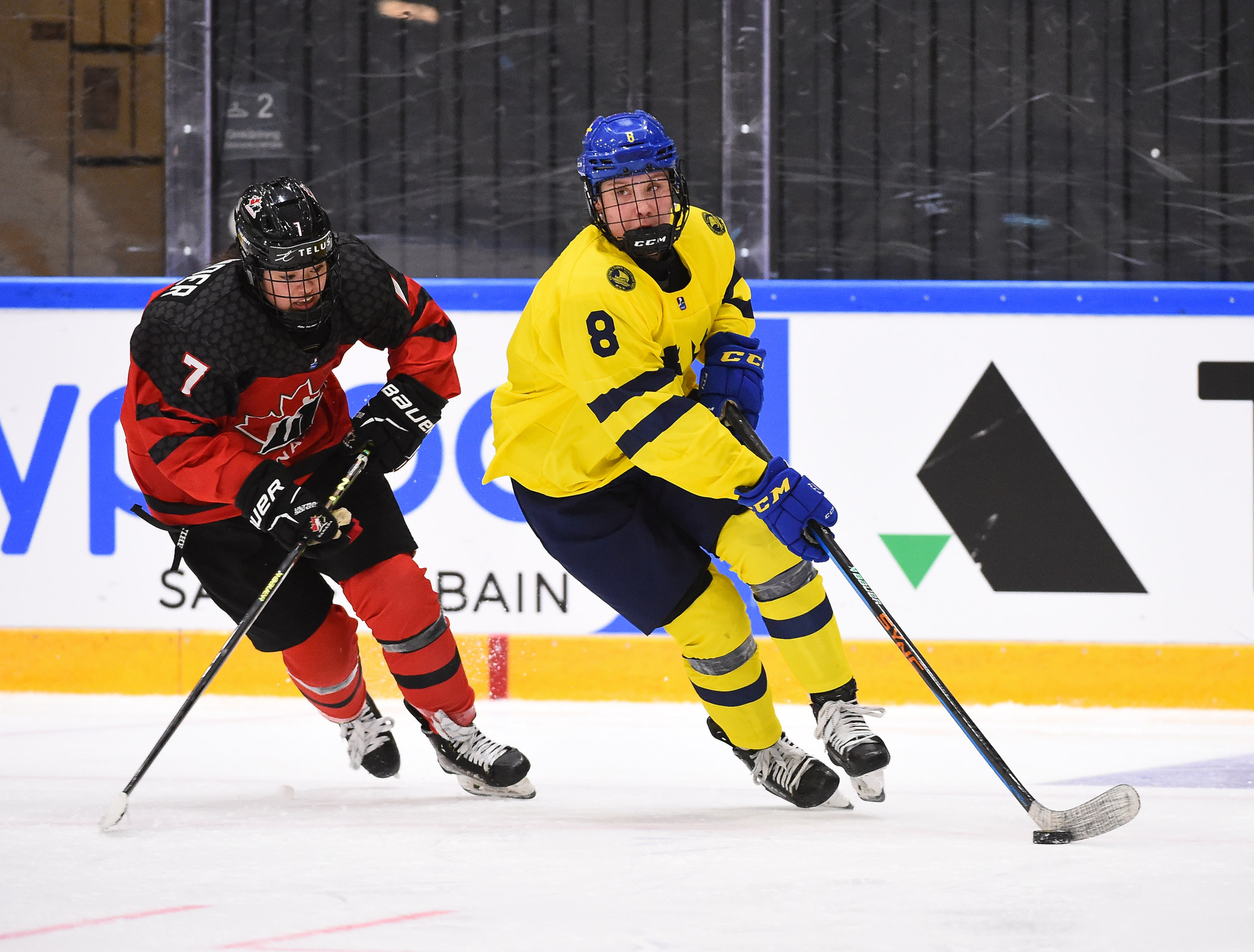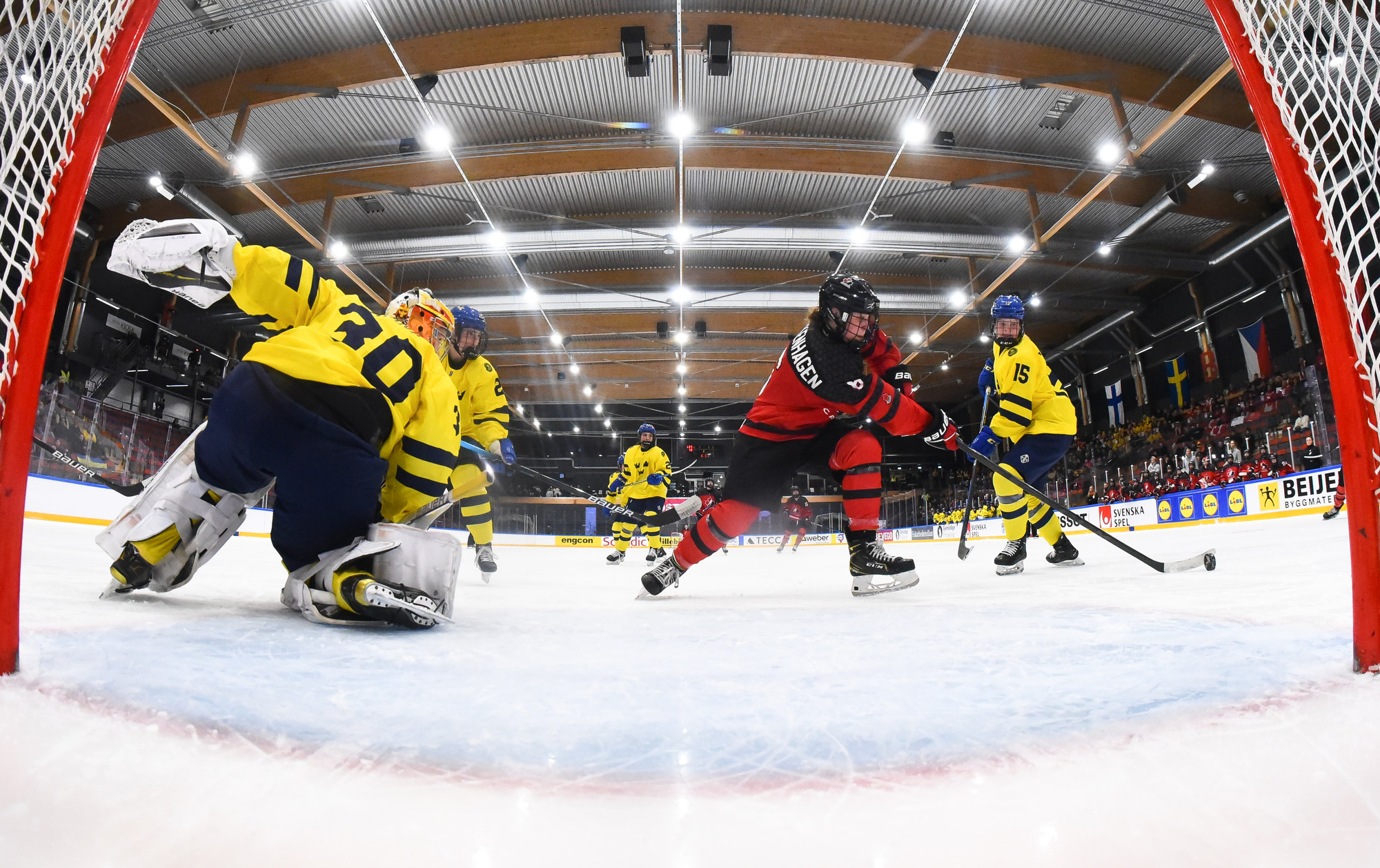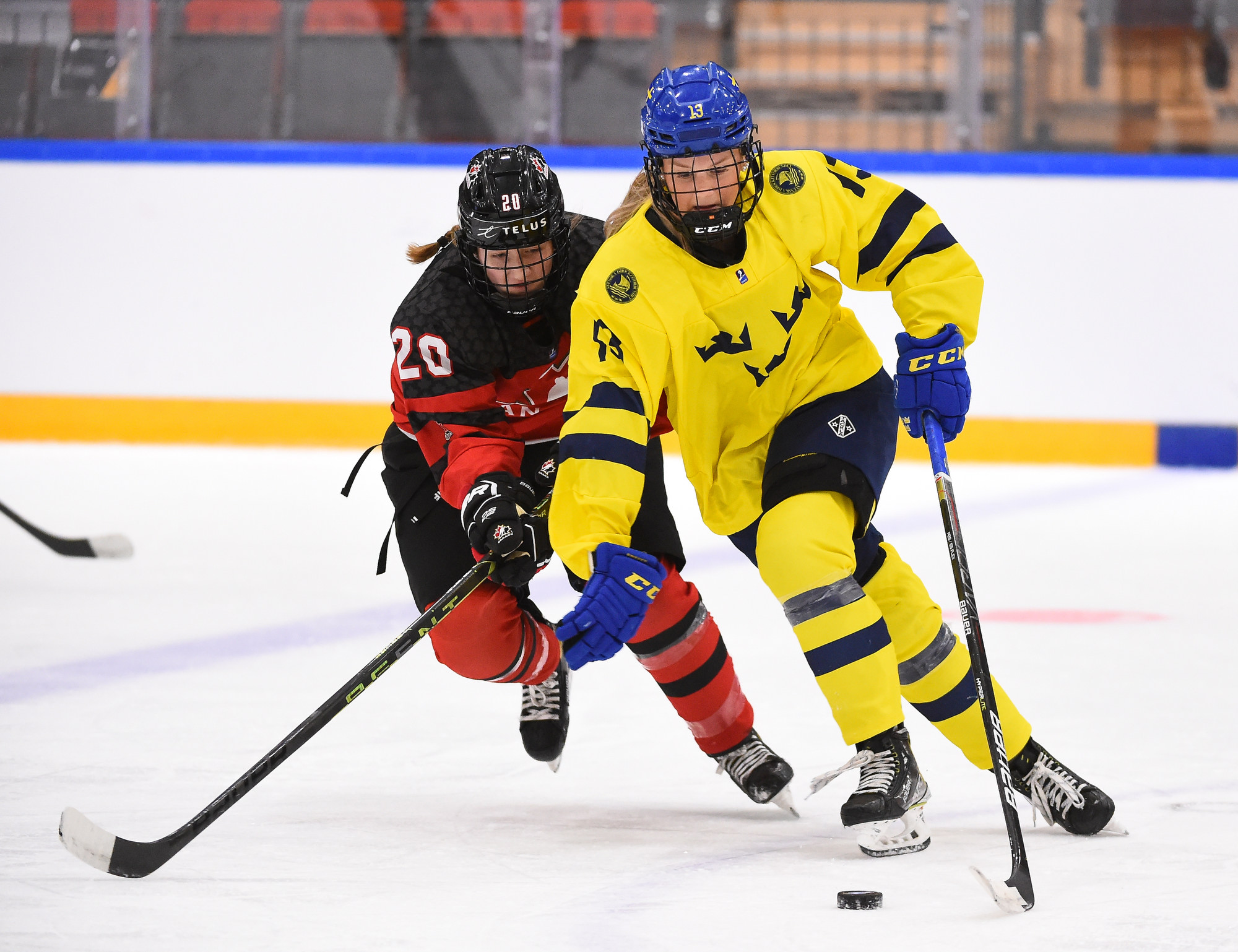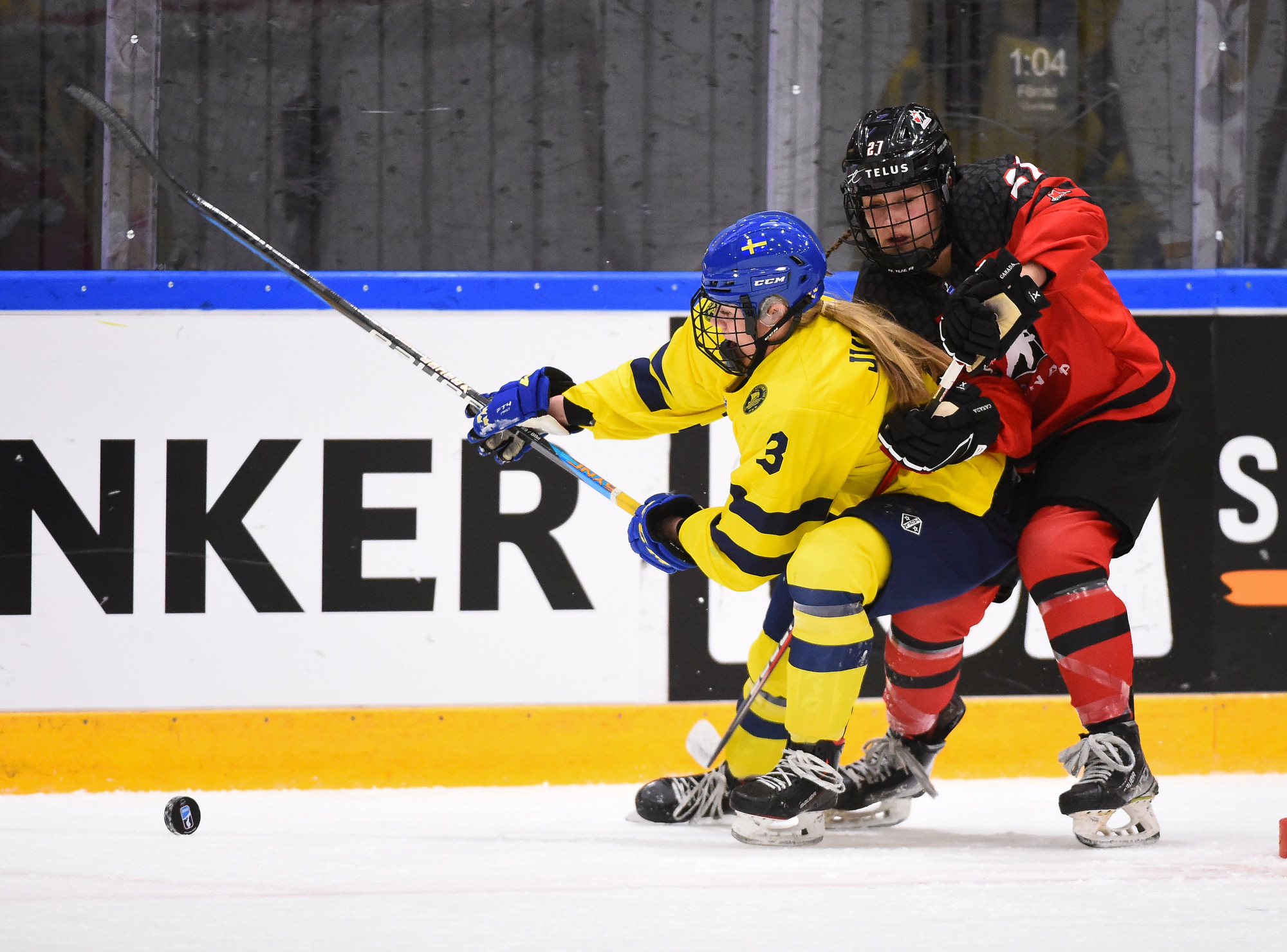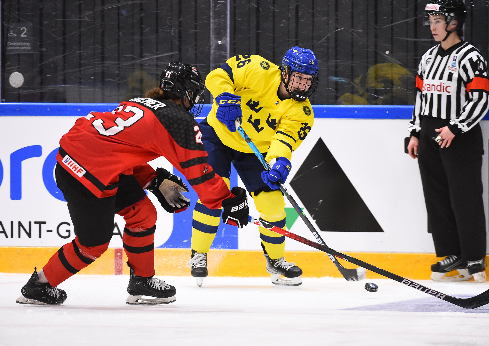 That proved to be much for even Canada’s penalty kill. Twenty-seven seconds before the end of the period, Mira Jungaker, one of Sweden’s returning players dom last Worlds, fired a slapshot that changed direction on its way to the back of the net, beating Clark on the blocker side.