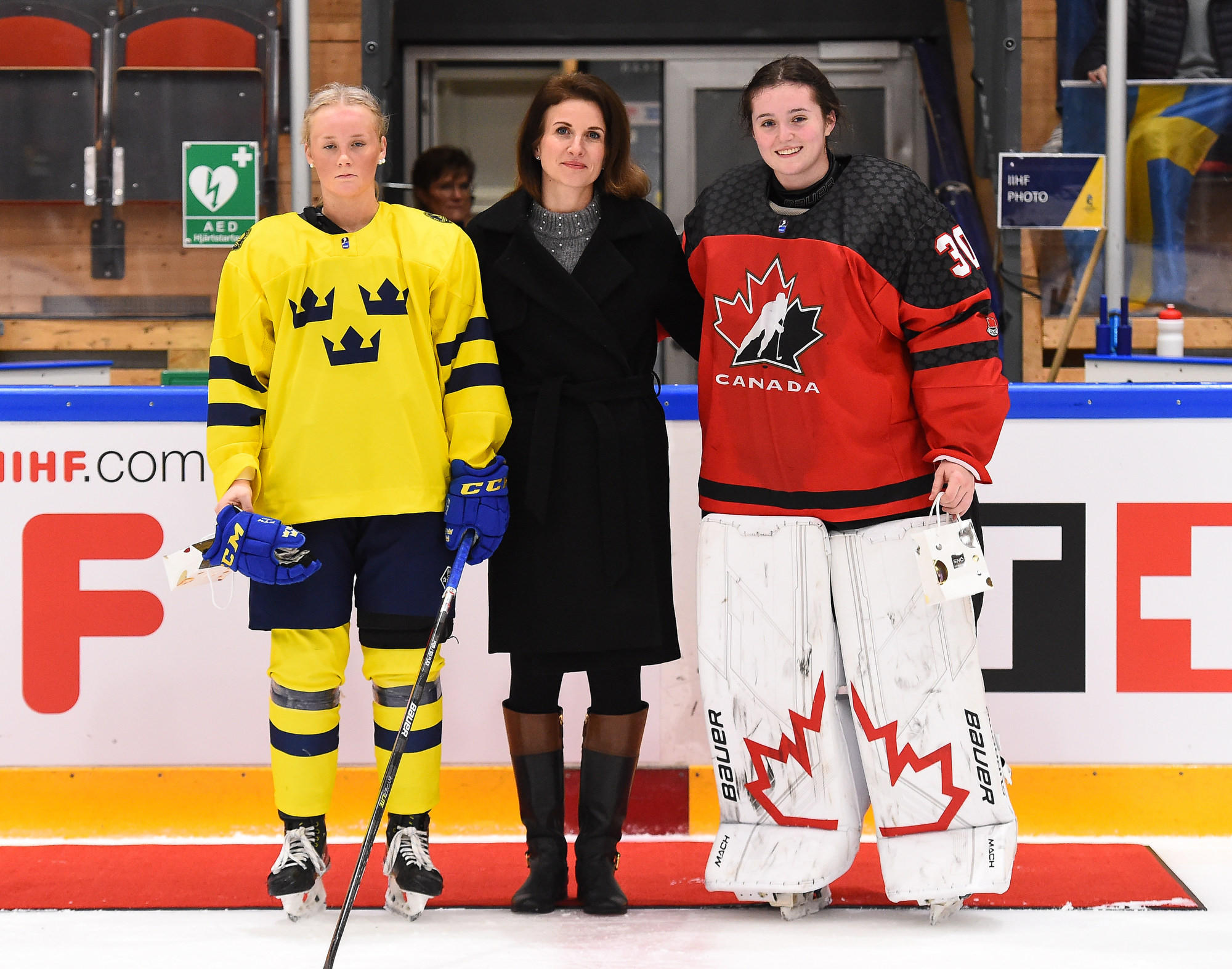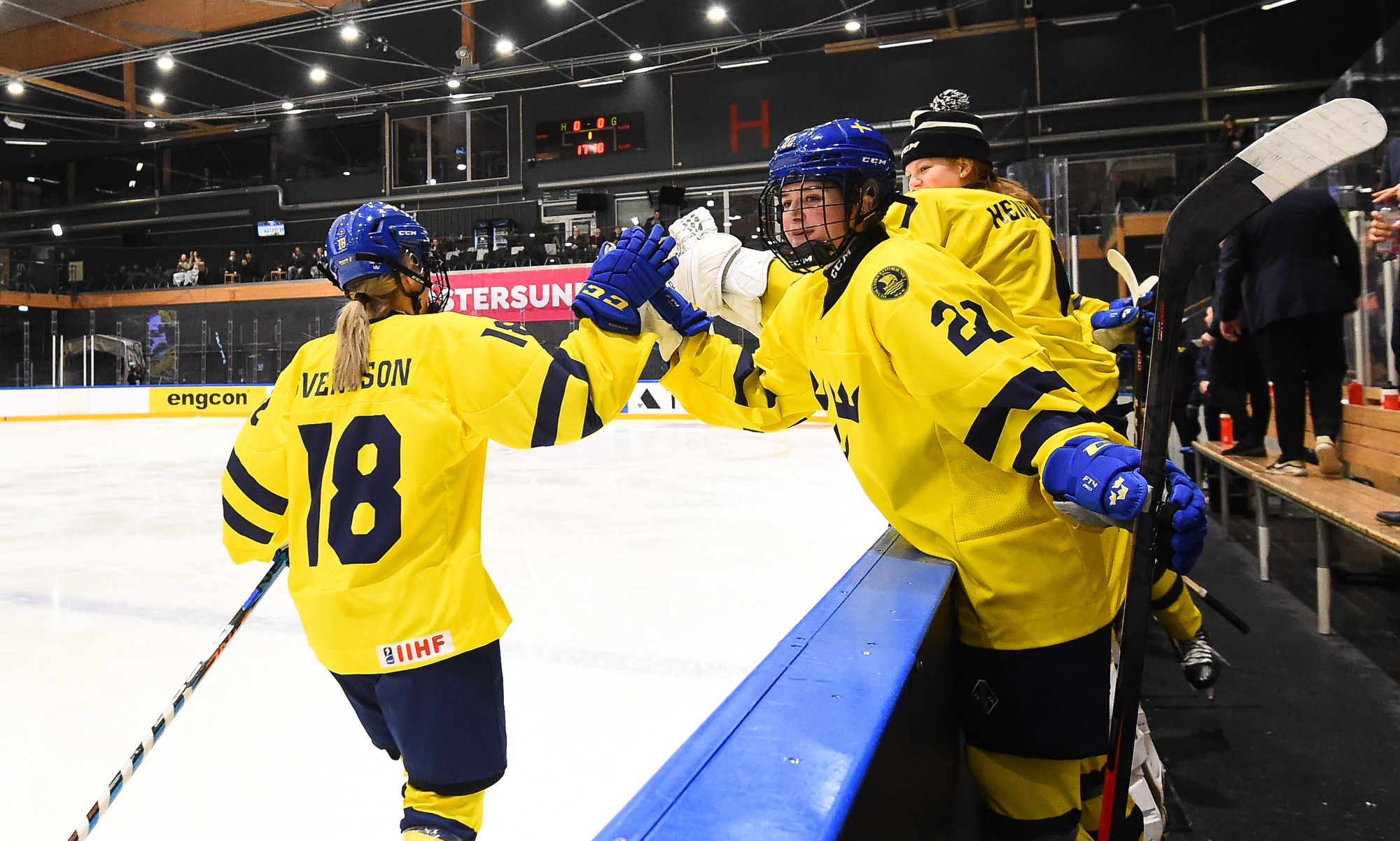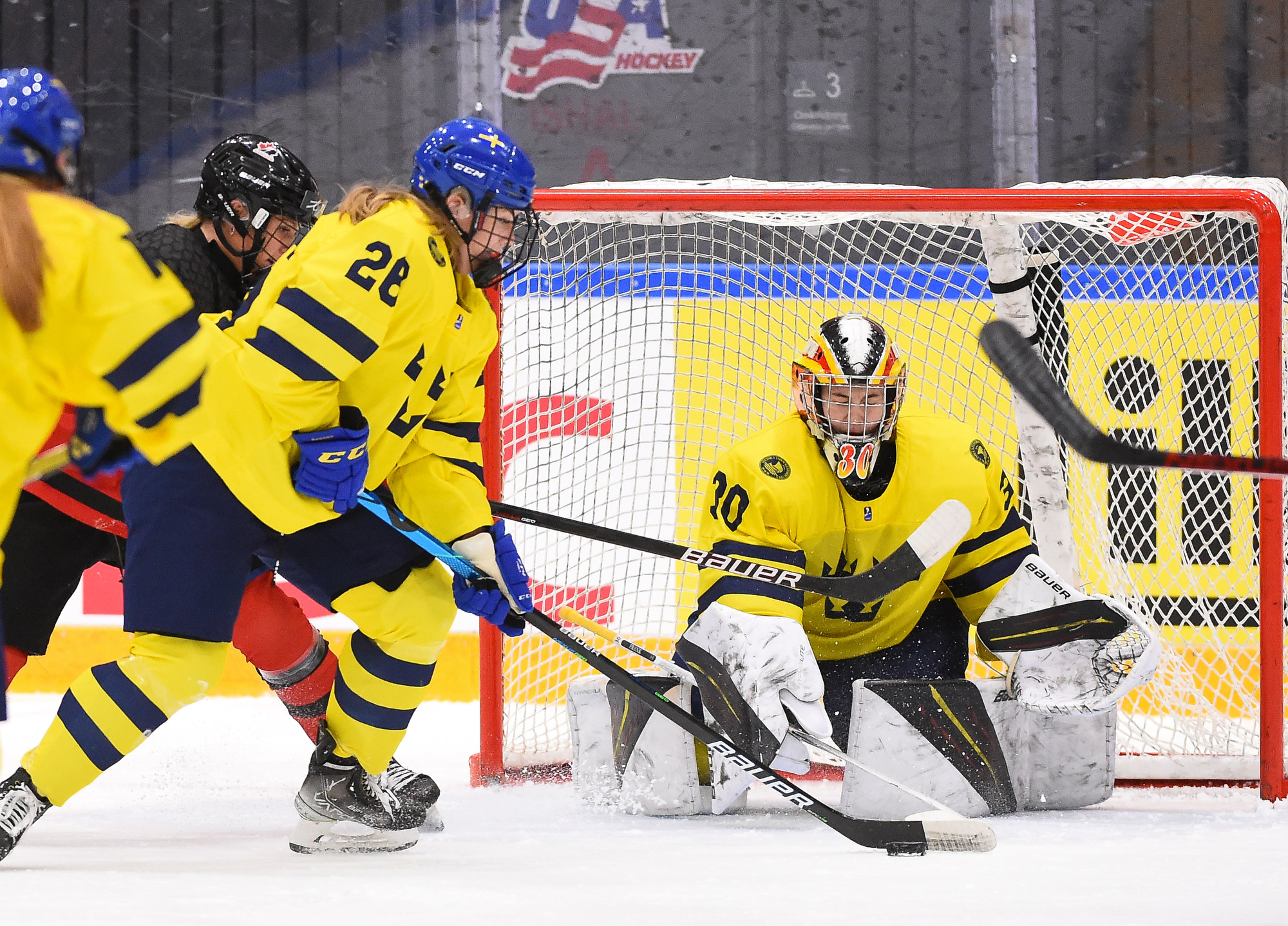 Sweden got exactly the start they wanted when Hilda Svensson, after a broken play in the corner, got the puck and fired a wrist shot right under the crossbar beating Hannah Clark for 1-0.
