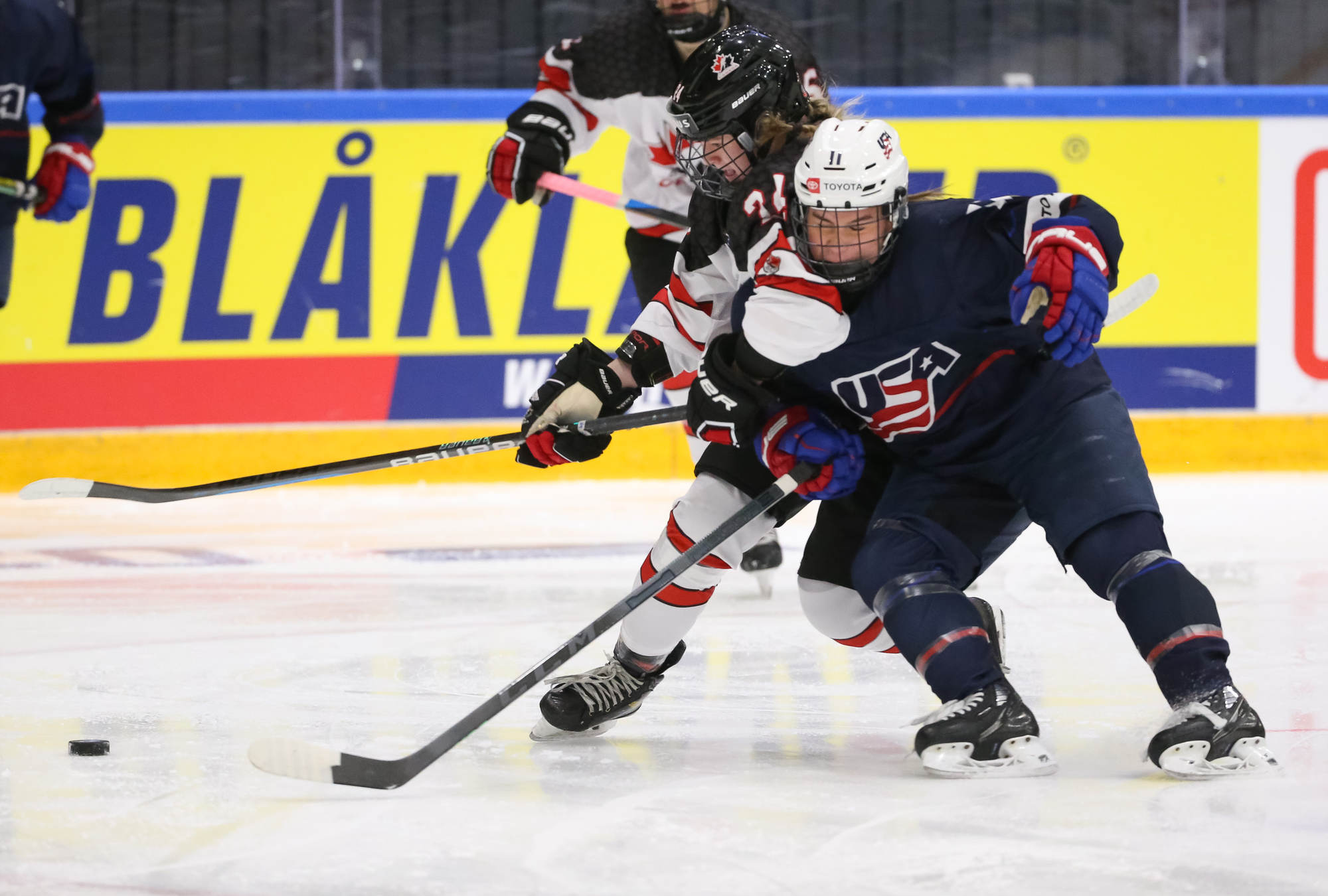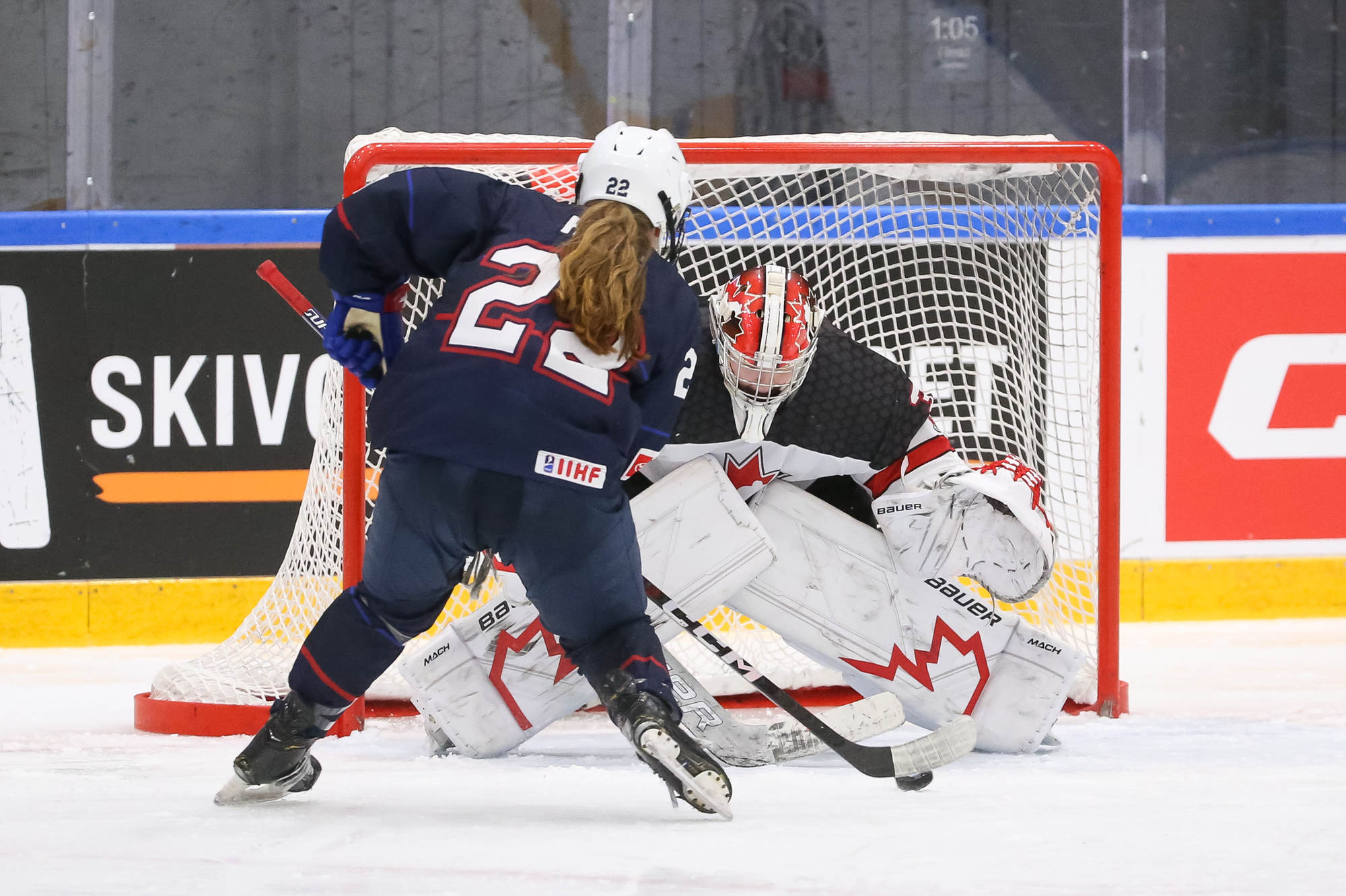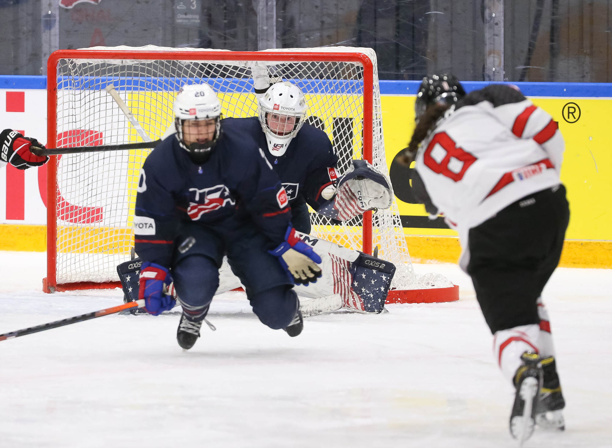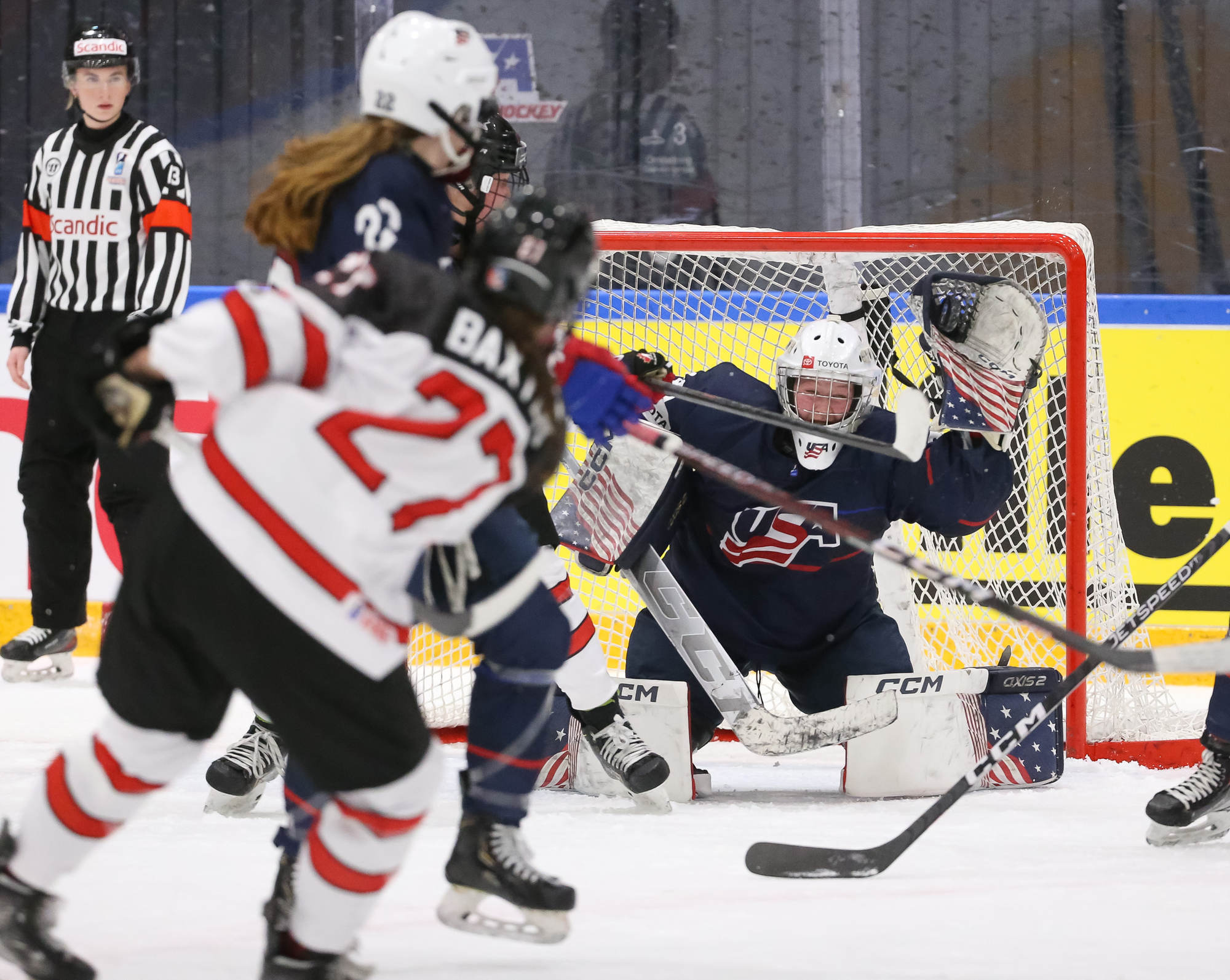 With 3:34 left in the contest and Canada's Baxter in the box for cross-checking, the U.S. pulled Bergmann for a 6-on-4. The power play unraveled quickly with a misplayed puck along the blue line, followed shortly thereafter by a cross-checking penalty by Molly Jordan to wipe out the advantage.