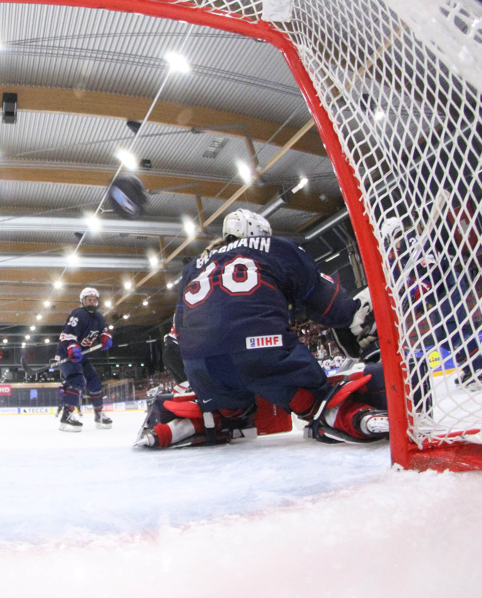 U.S. netminder Annelies Bergmann finished with 32 saves in the loss.