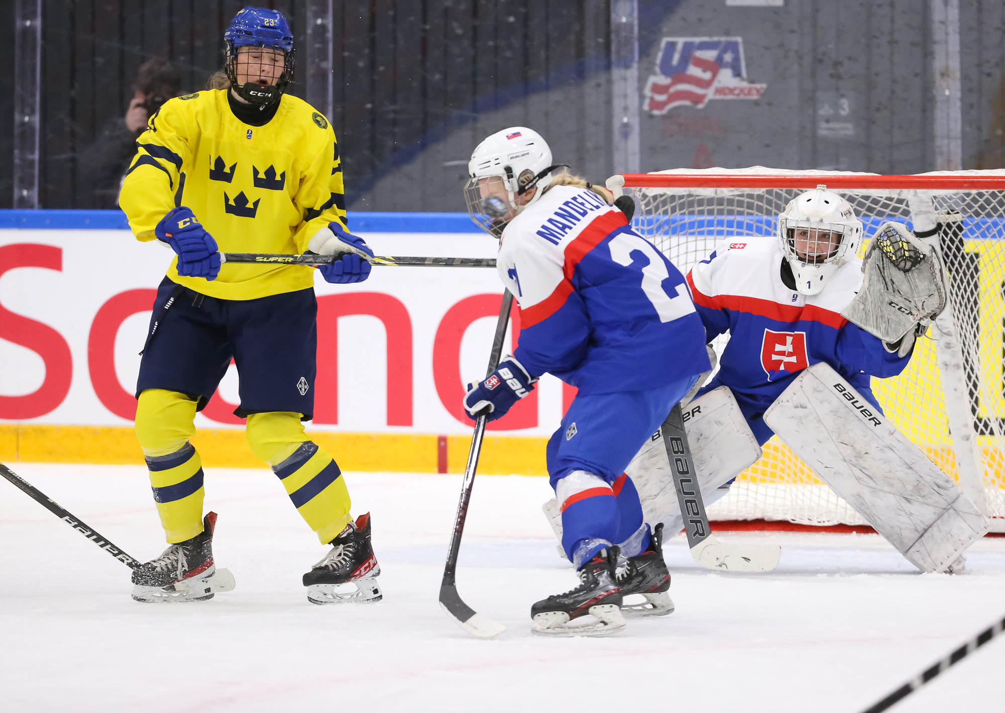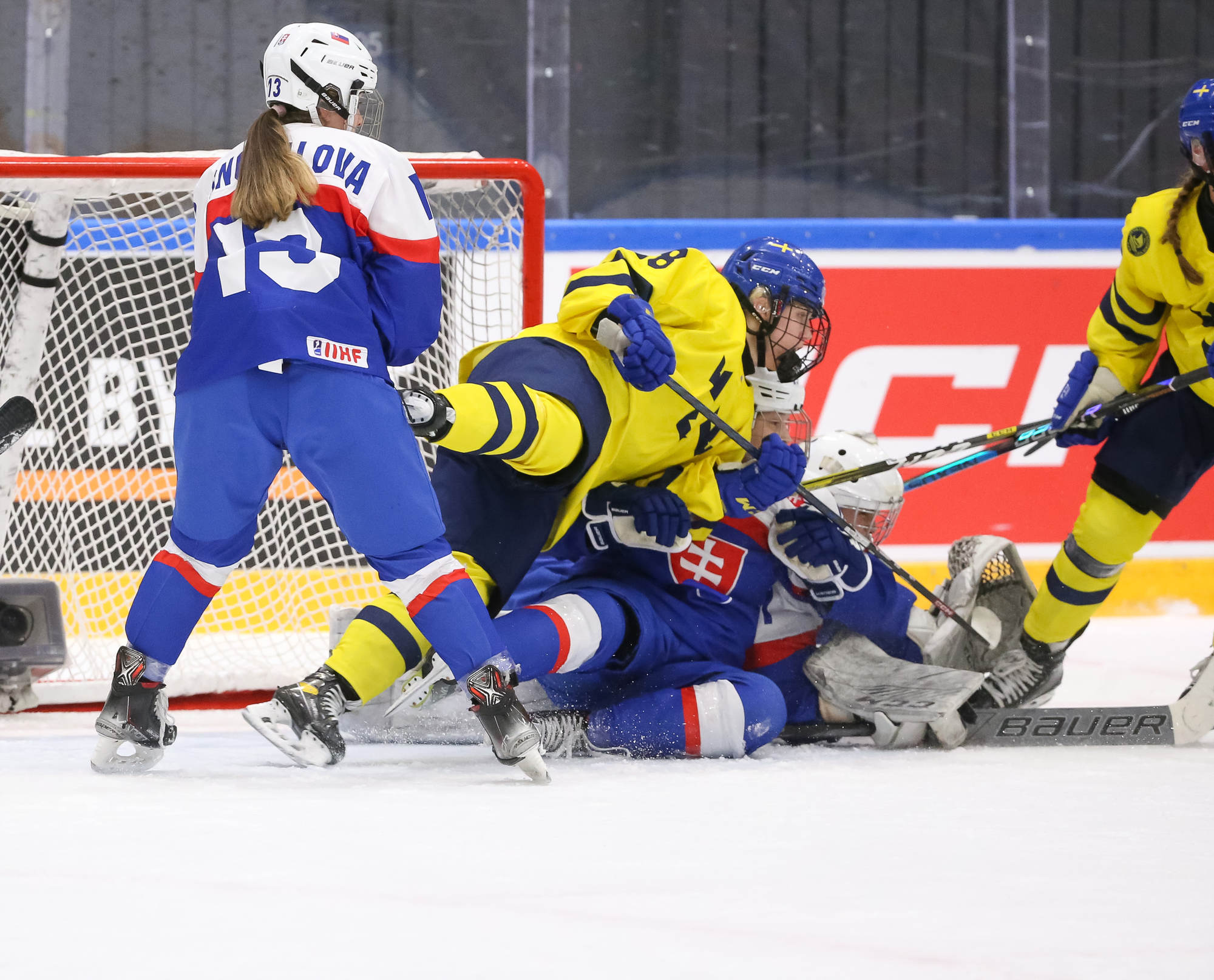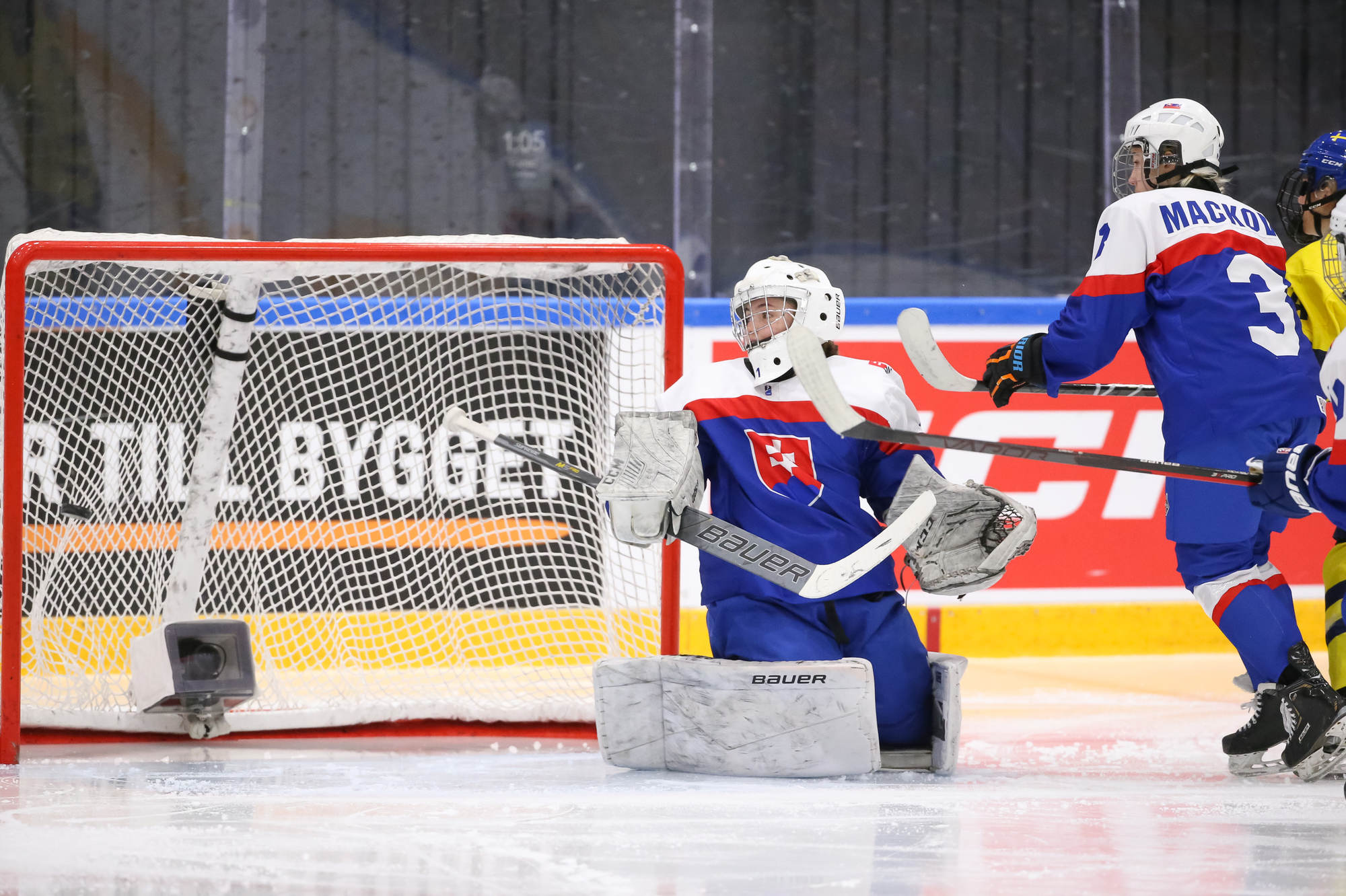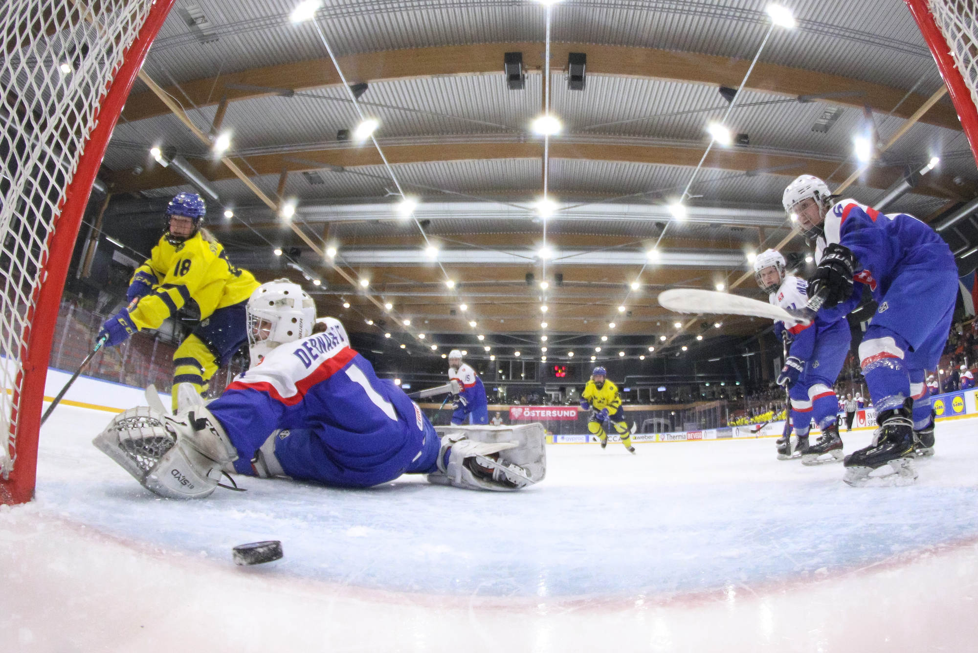 Sweden's leading scorer, Hilda Svensson, also got on the scoresheet halfway through the period when she connected with Mia Markstrom who flipped the puck to her from behind the bet. Svensson patiently waited out Debnarova and backhanded the puck into the net for 6-1 at 7.50.