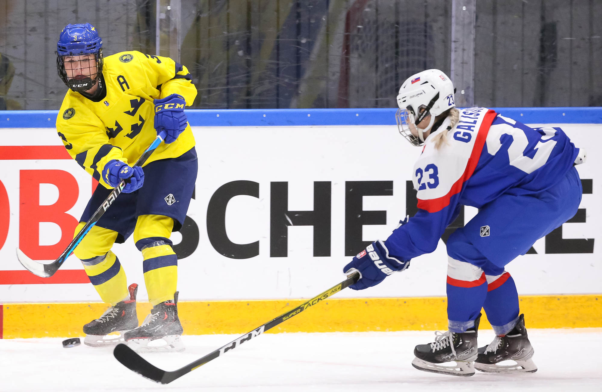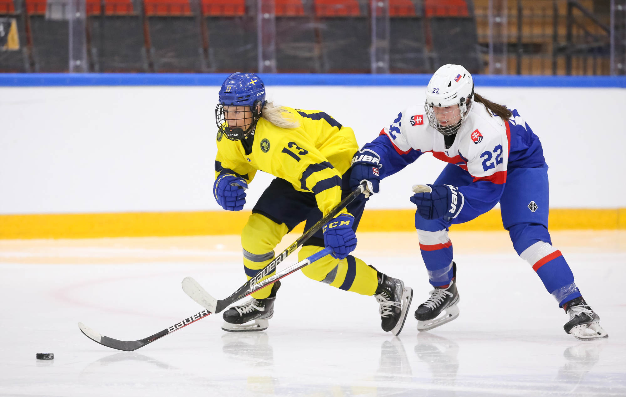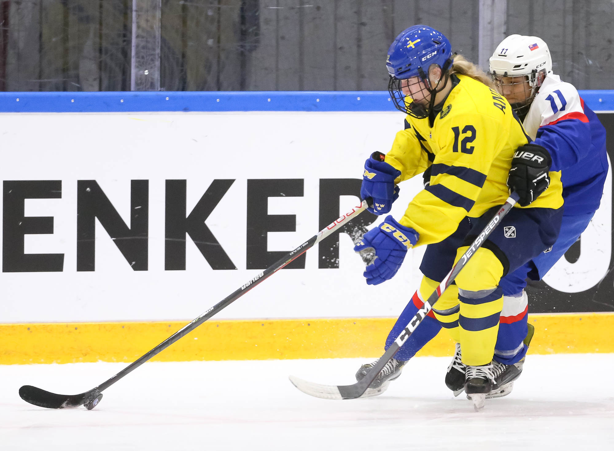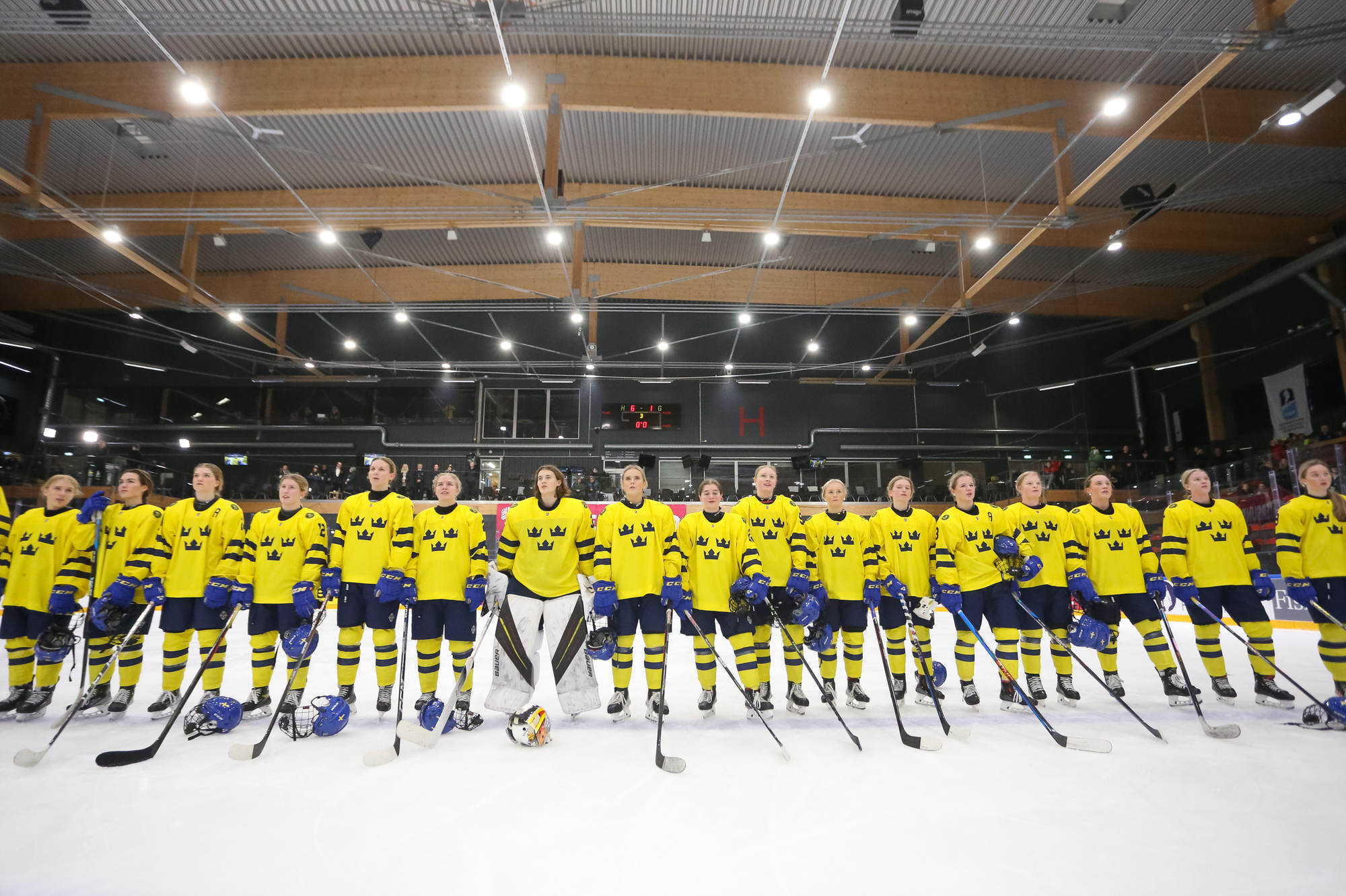 Sweden's leading scorer, Hilda Svensson, also got on the scoresheet halfway through the period when she connected with Mia Markstrom who flipped the puck to her from behind the bet. Svensson patiently waited out Debnarova and backhanded the puck into the net for 6-1 at 7.50.