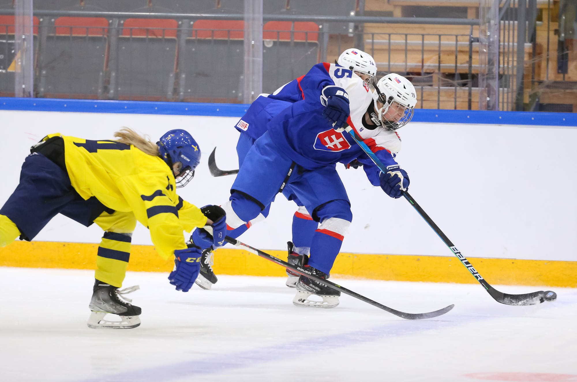 Sweden took complete control of the game in the second period, keeping Slovakia in their own zone, pushing them on their heels. At 3.31, Isabelle Leijonhielm gabbed a loose puck from the corner, circled back and fired a wrister from the slot that beat Livia Debnarova to make it 3-1.