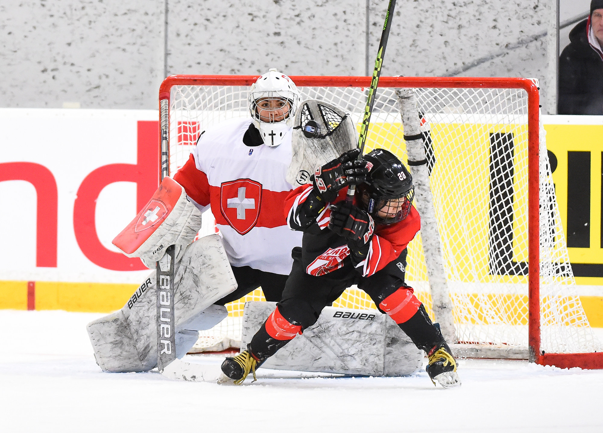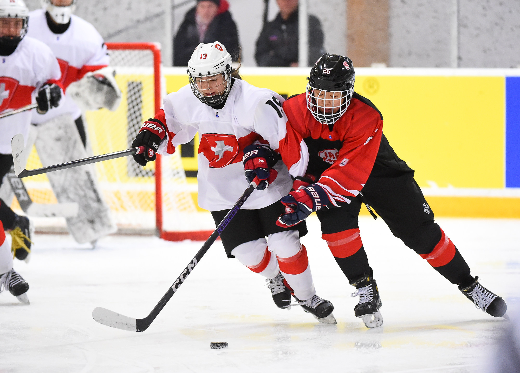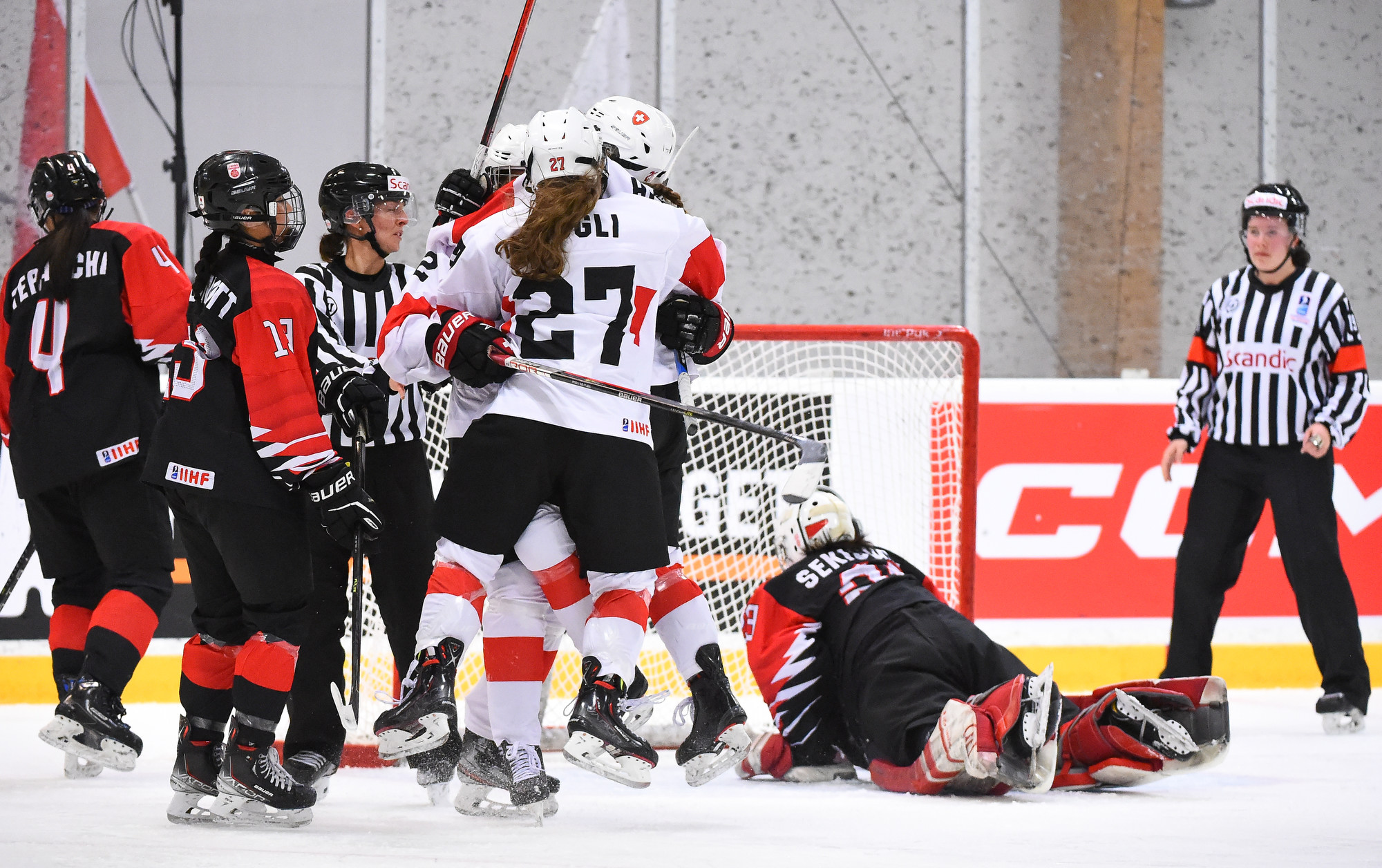 With 54 seconds left in the opening period, Naemi Herzig fired a shot from the right circle which Japanese netminder Madoka Sekiguchi stopped. But the puck took a weird bounce and slid through the crease, hit the skate of a Japanese player in front and slowly crossed the goal line.