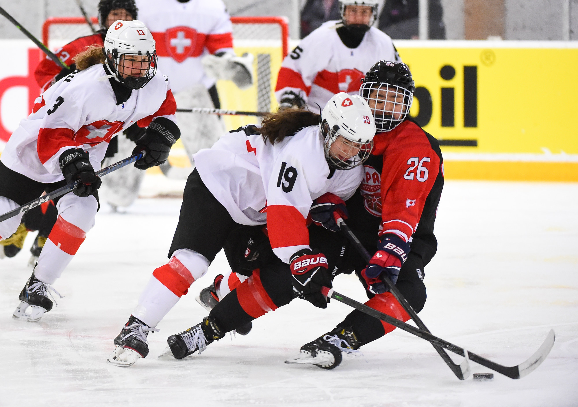 "The Japanese are a very tough team, very persistent. They go all the time," Switzerland coach Melanie Haefliger said. "We know we need a strong defensive zone and a good goalie in the net. We're happy Talina showed us what she can do and held us in the game."