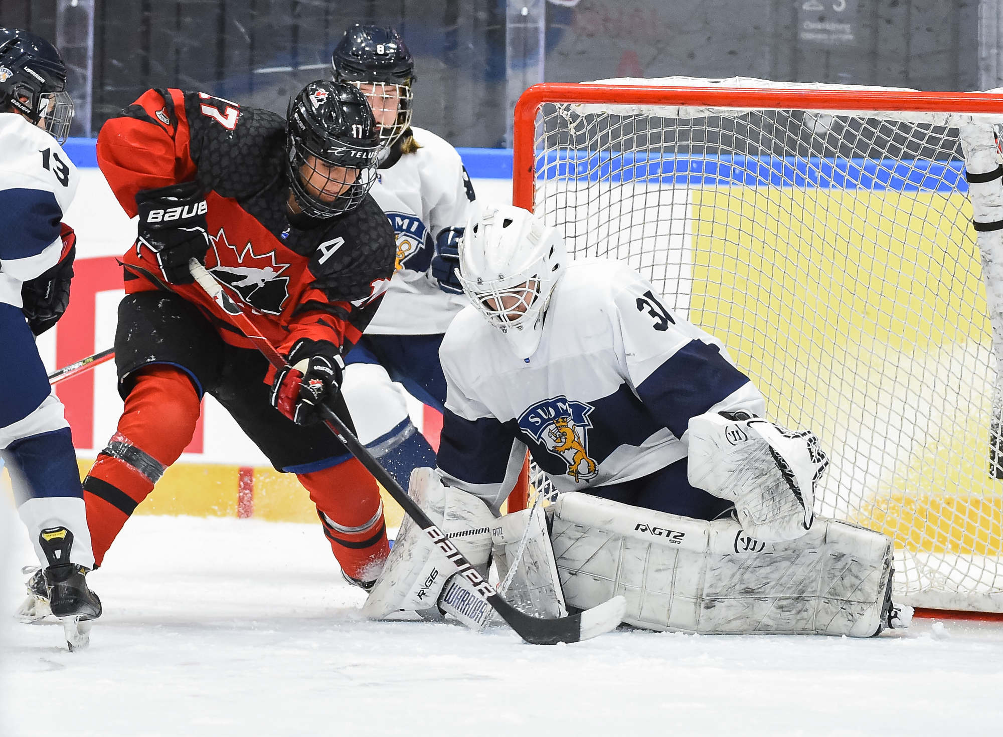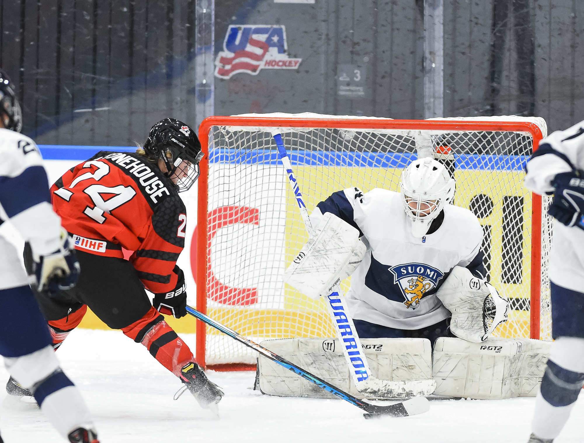 Canada invited Finland to come back into the game when Alex Law took an illegal hit minor less than 90 seconds in the second period and Eloise Caron a tripping minor seven minutes later.
