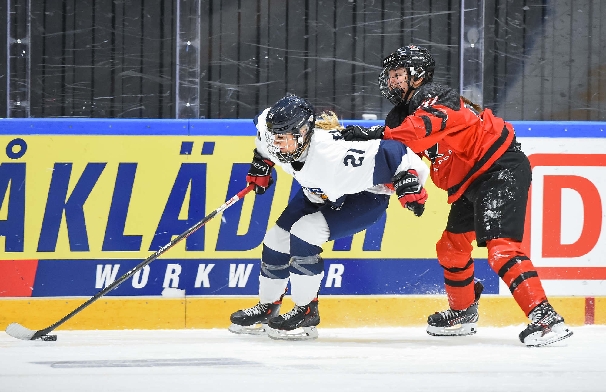 Alex Law scored twice for Canada; including the OT winner. Sanni Vanhanen and Pauliina Salonen combined for two goals and four points, Kerttu Kuja-Halkola made 38 saves for Finland.
