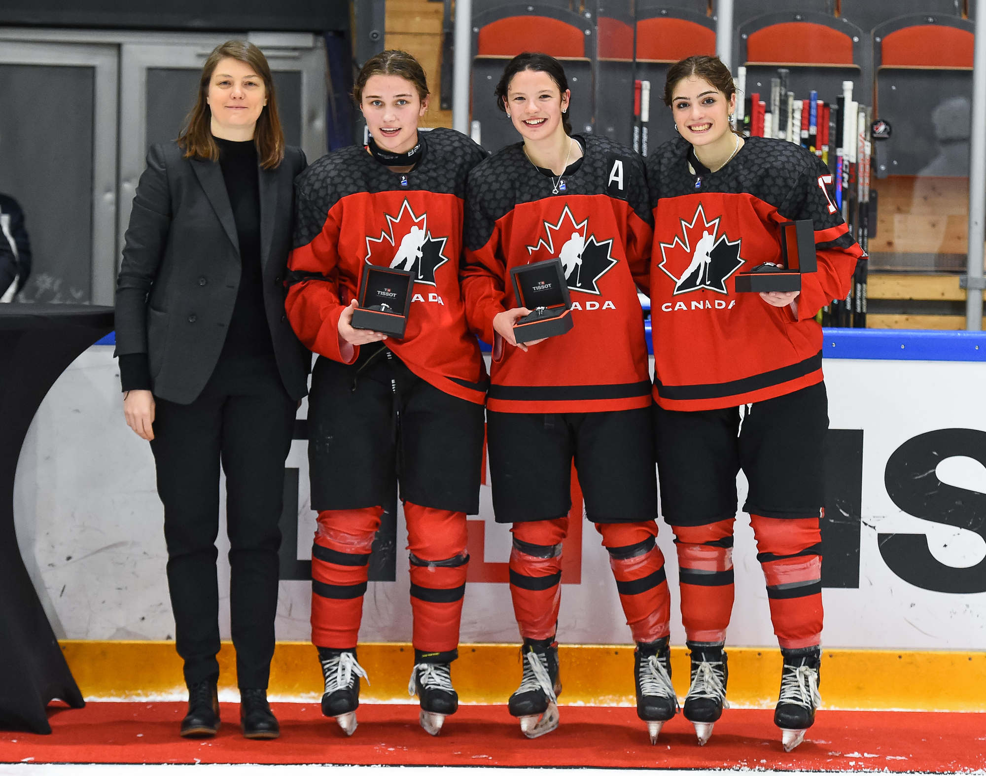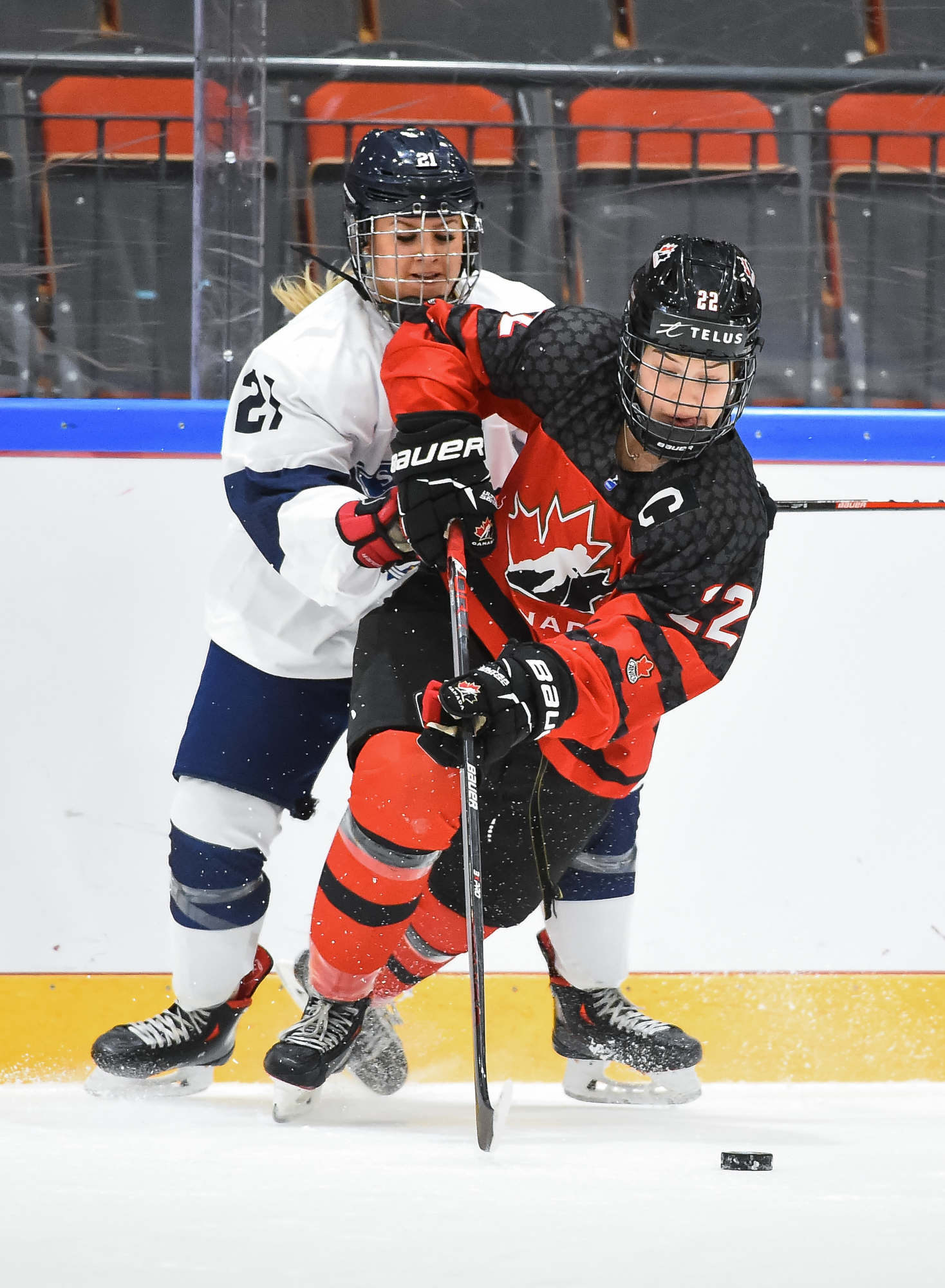 "Their plan was to slow us down and we struggled all game with trying to figure out how to break that. Finally in the last ten minutes, we really picked it up and started to play our game," Team Canada's coach Courtney Kessel said.