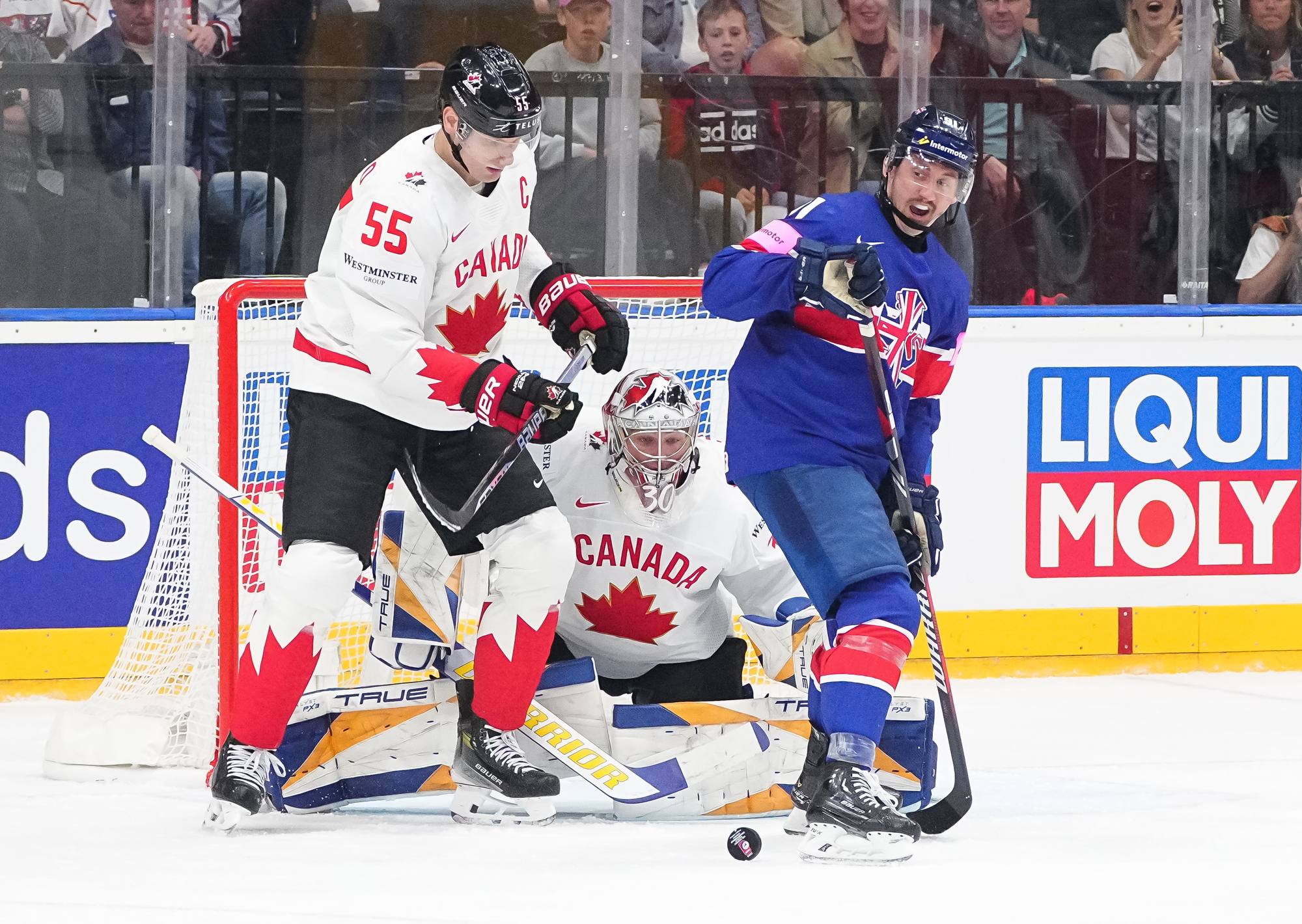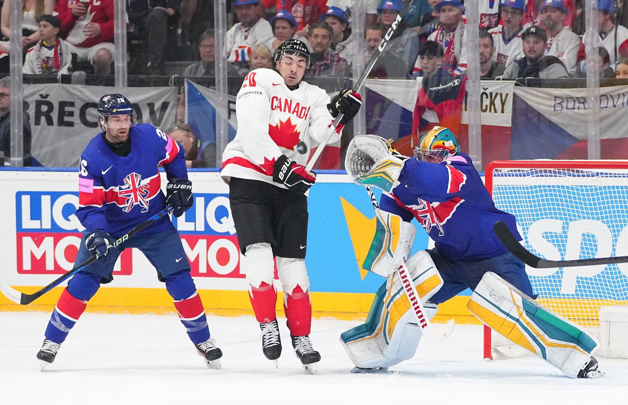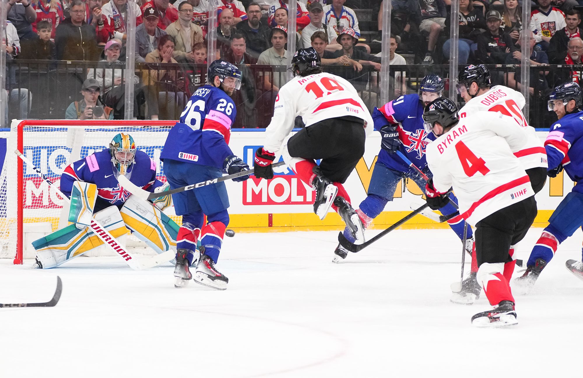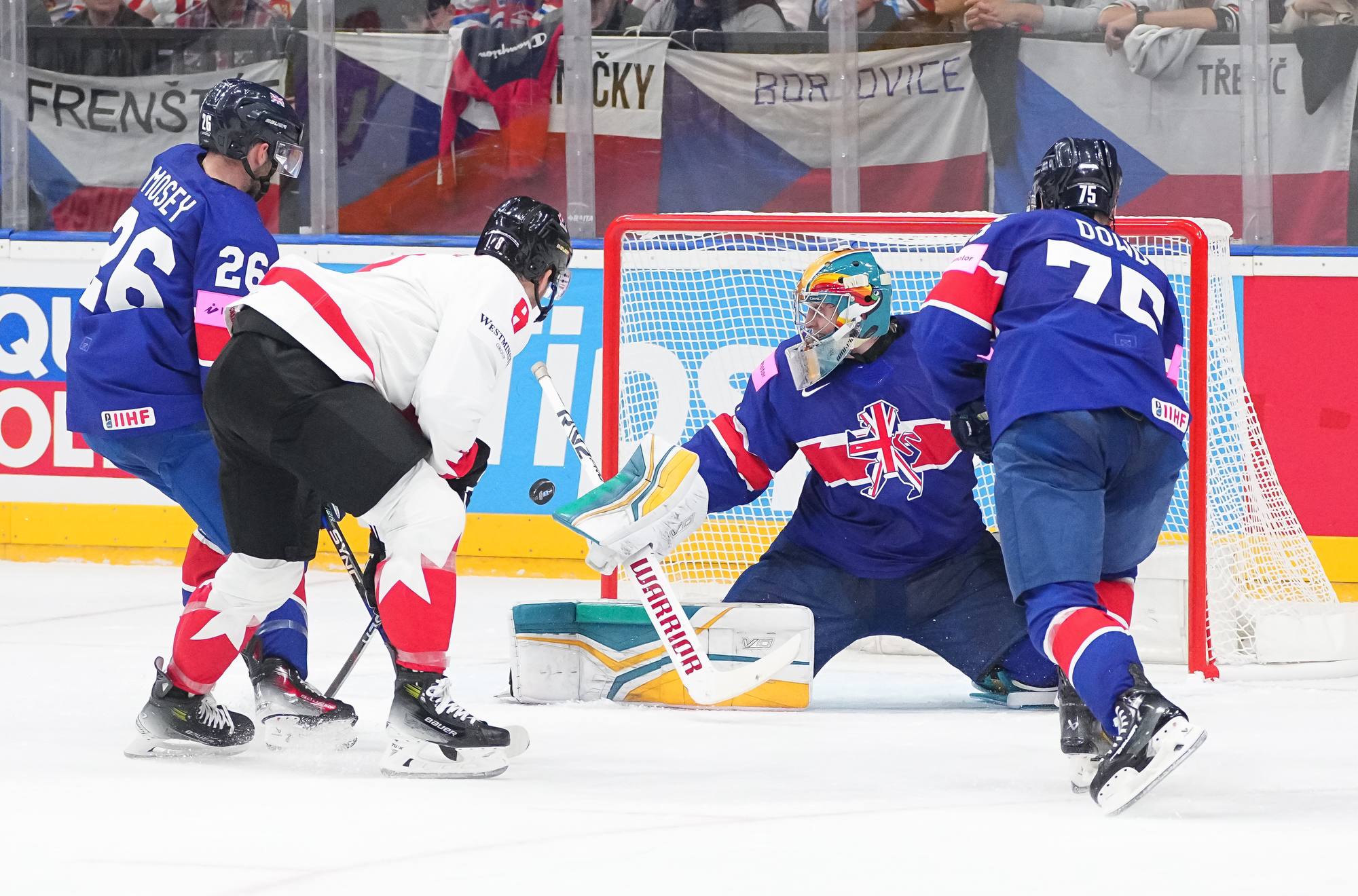 Back on level terms, Canada pushed for more. A 12-3 shot count for the first period told its own story, but Britain defended courageously. Getting to the intermission with the game tied was a huge boost for the newly-promoted nation and won plenty of friends among the Czech crowd.