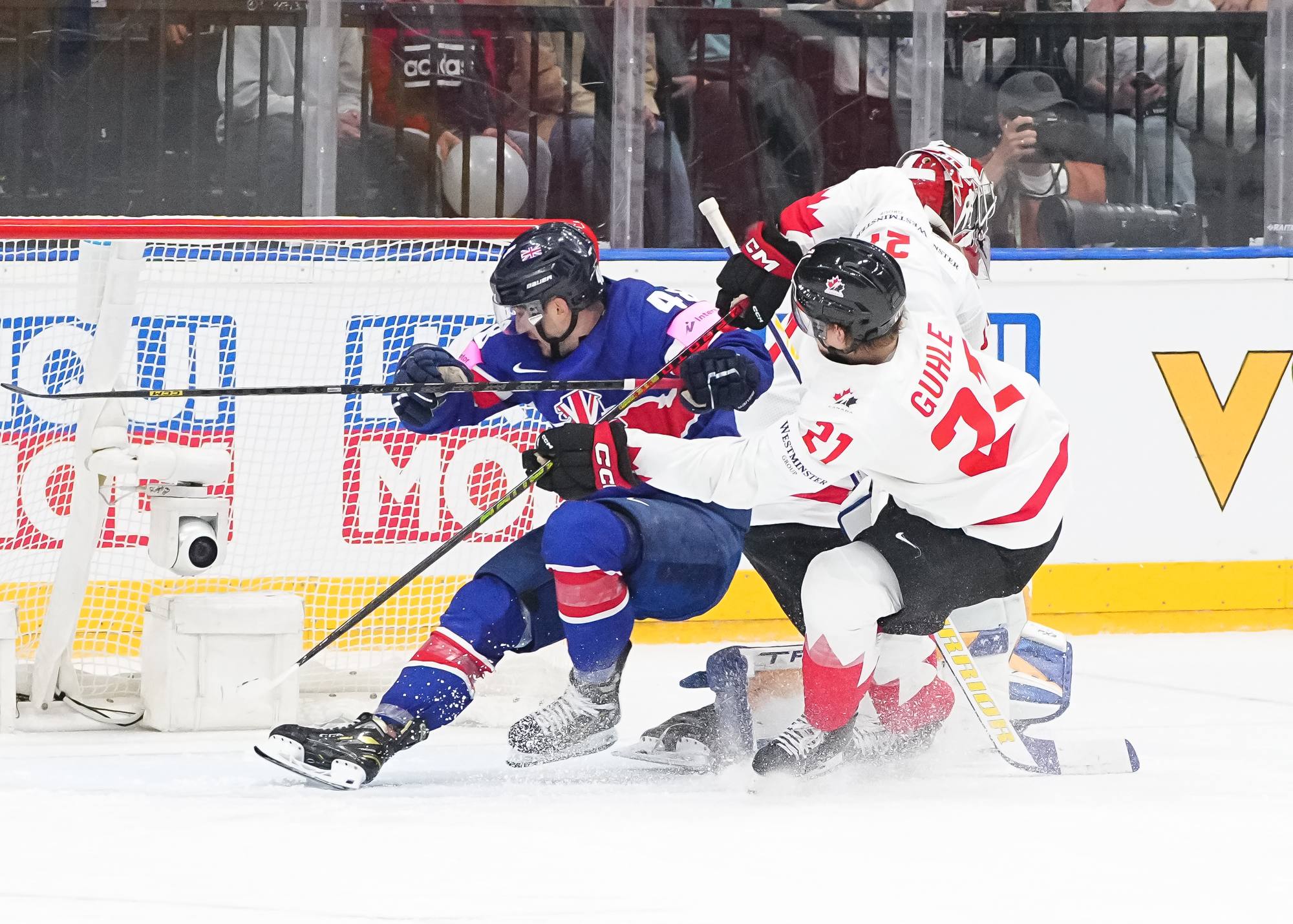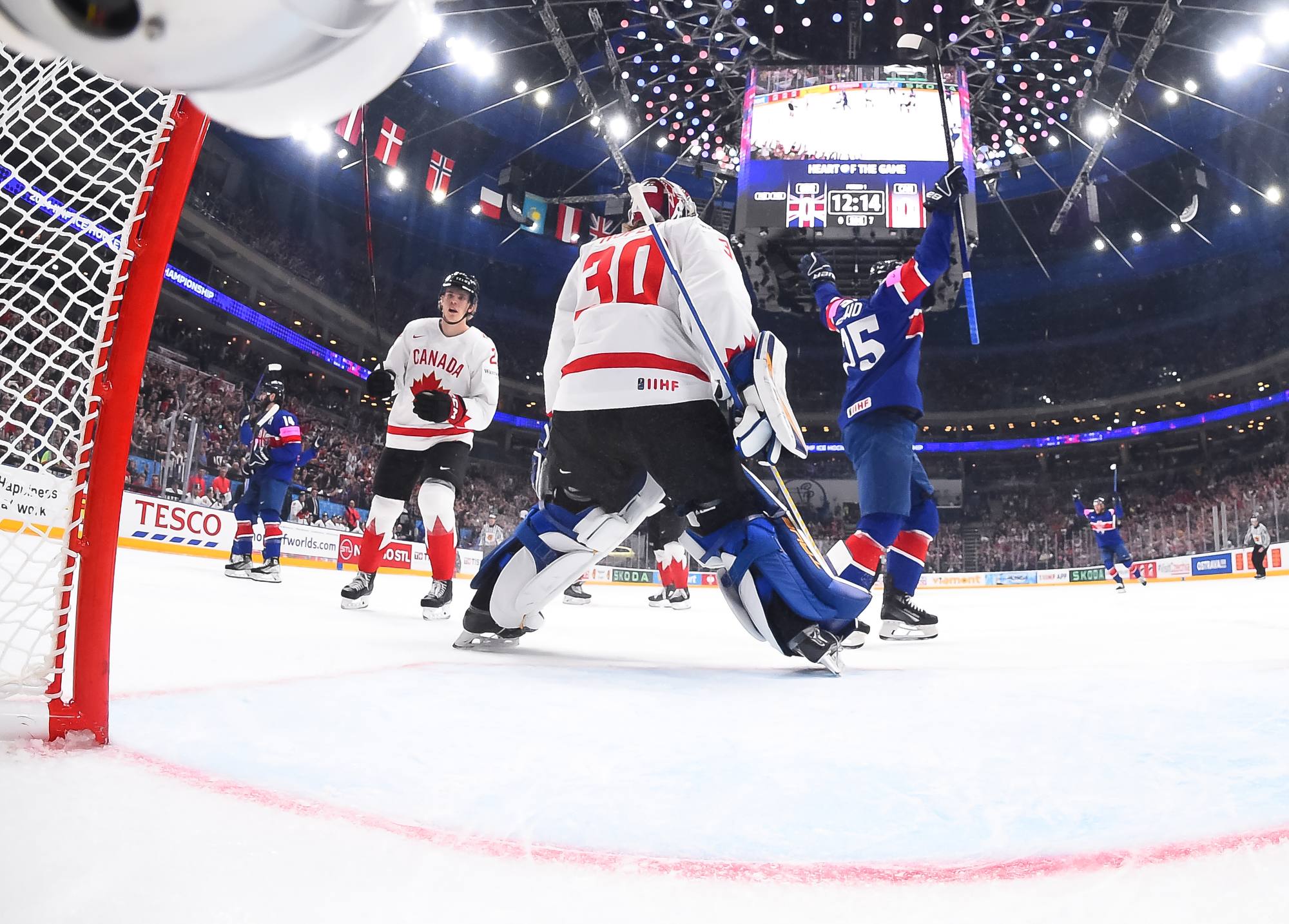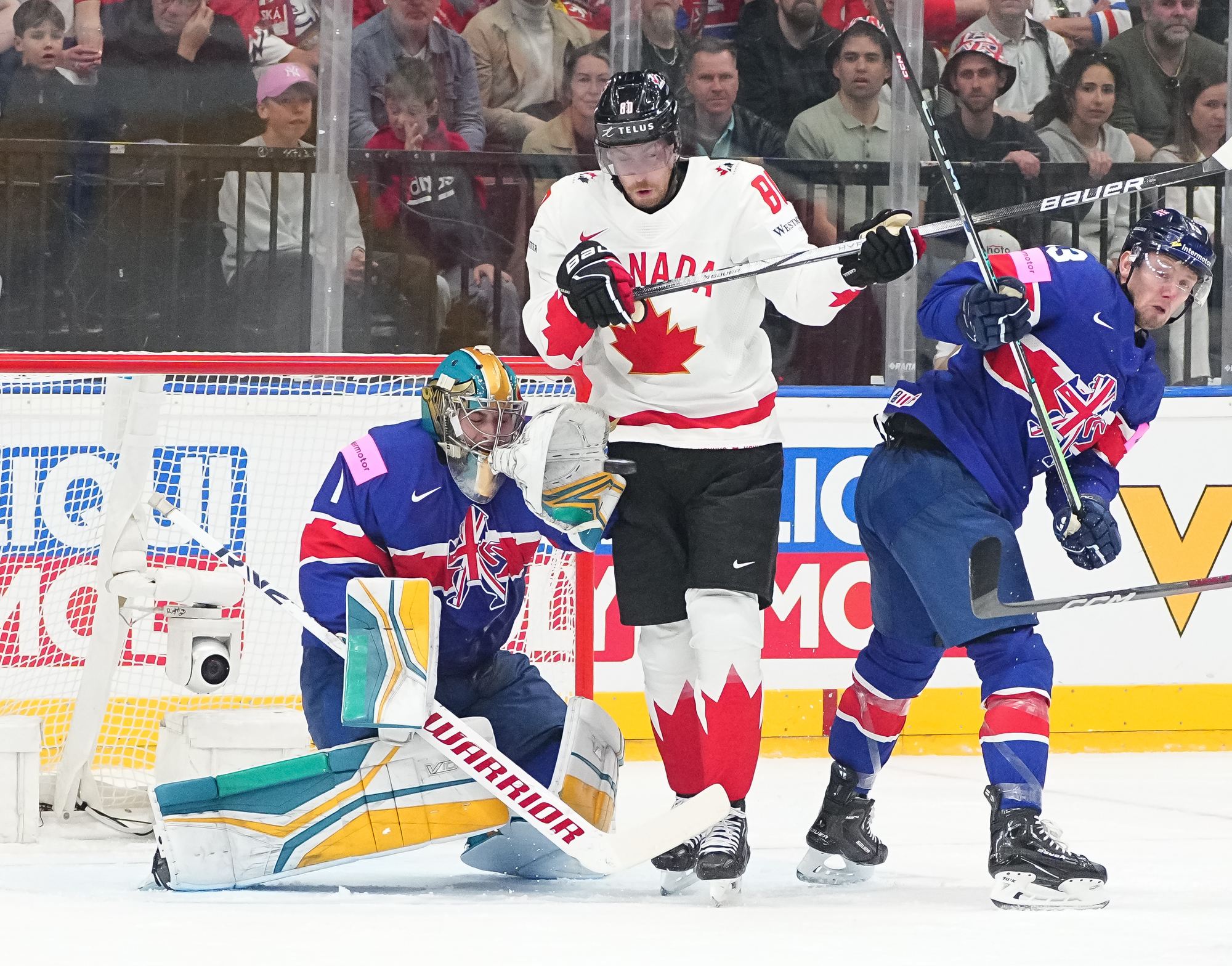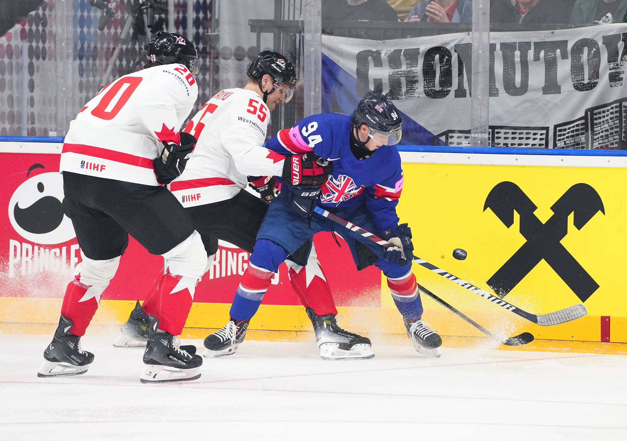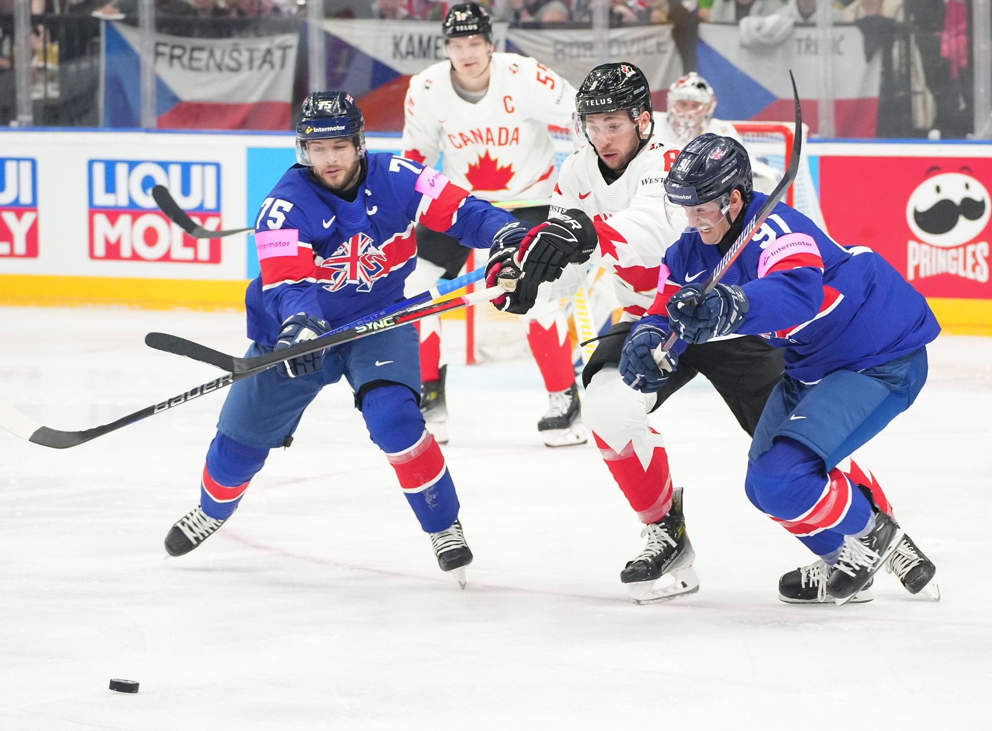 Back on level terms, Canada pushed for more. A 12-3 shot count for the first period told its own story, but Britain defended courageously. Getting to the intermission with the game tied was a huge boost for the newly-promoted nation and won plenty of friends among the Czech crowd.