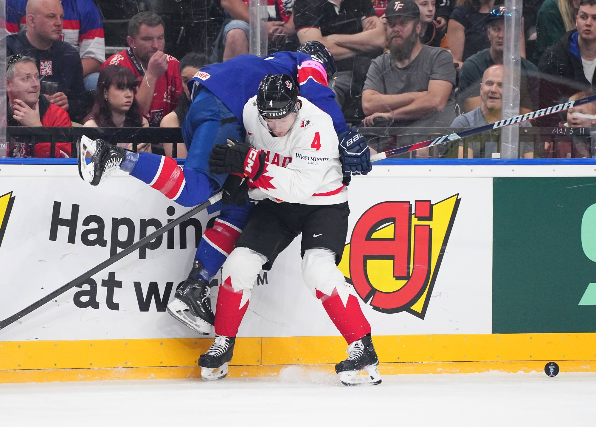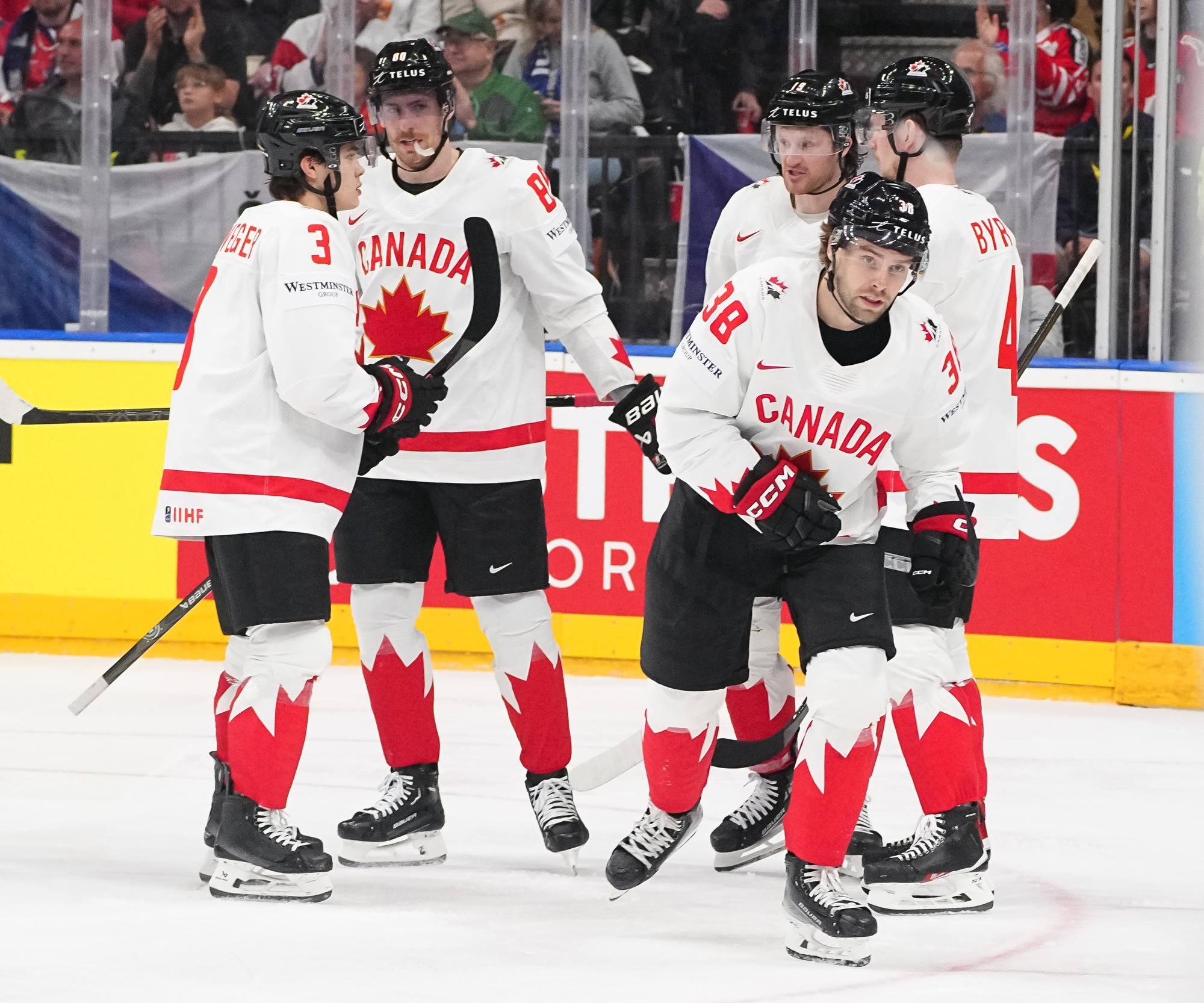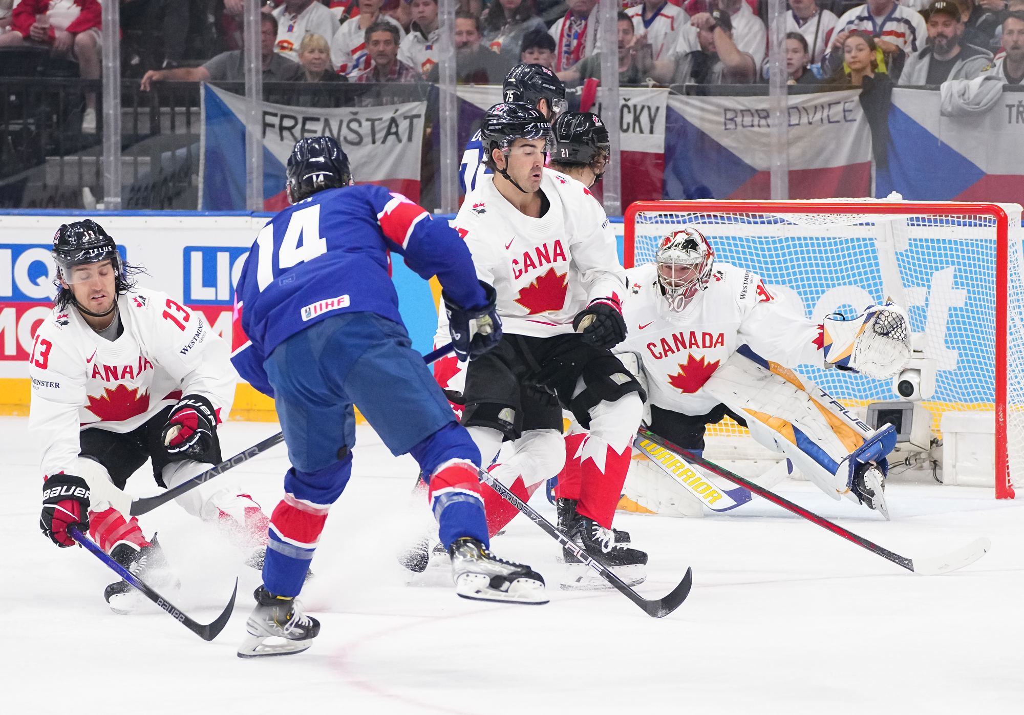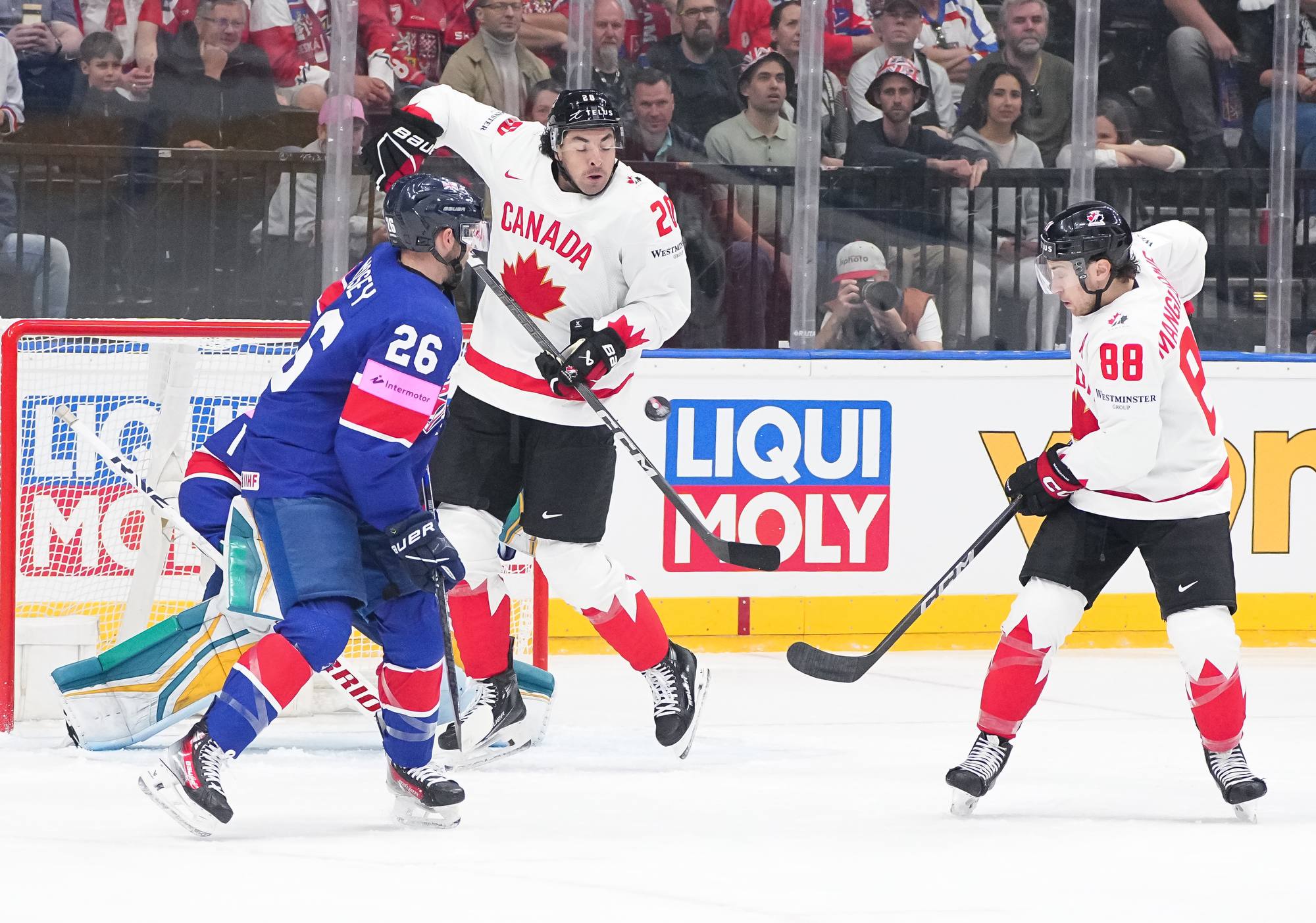 Back on level terms, Canada pushed for more. A 12-3 shot count for the first period told its own story, but Britain defended courageously. Getting to the intermission with the game tied was a huge boost for the newly-promoted nation and won plenty of friends among the Czech crowd.