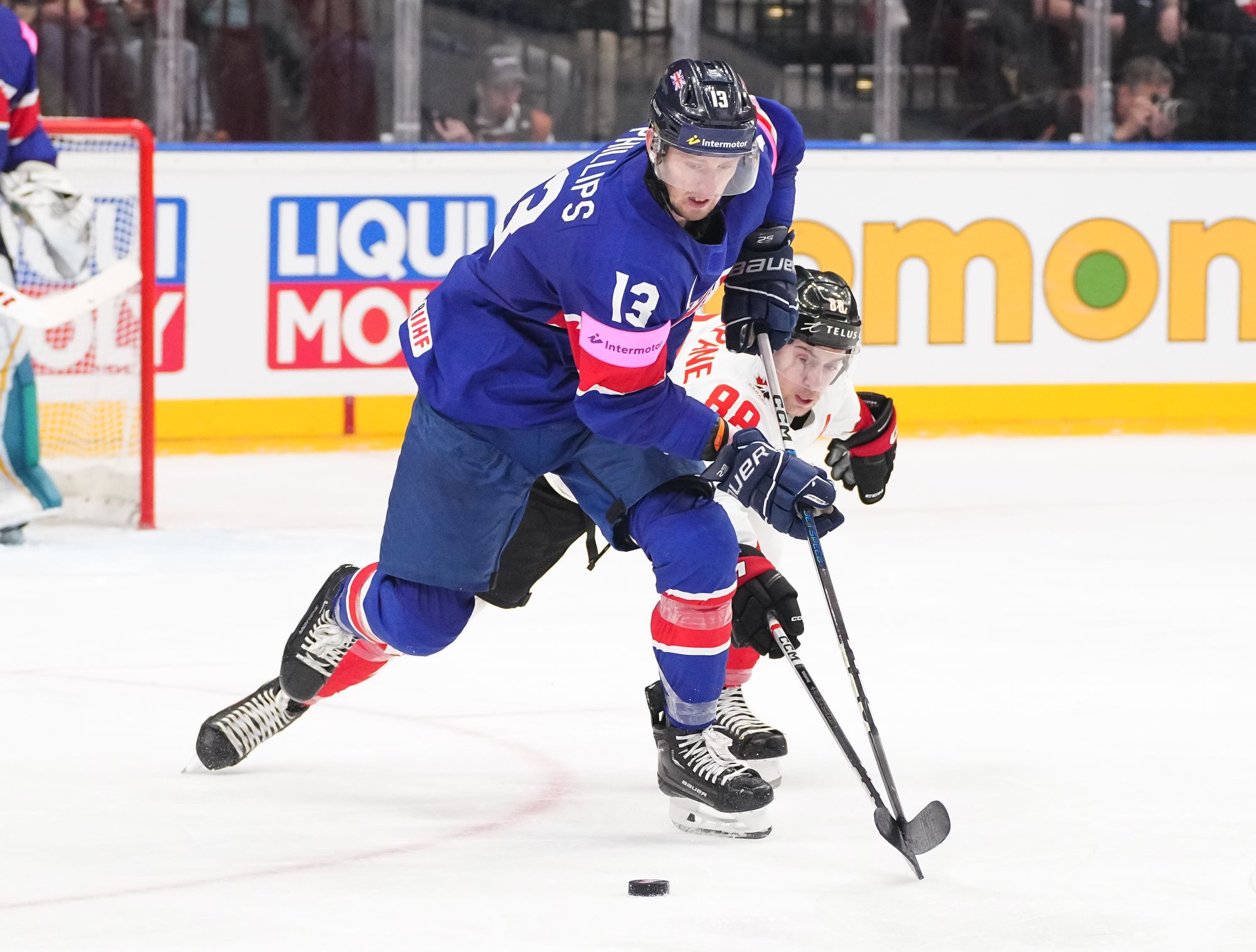For a time in the first period, Bedard was upstaged by Liam Kirk. The 24-year-old, leading goalscorer in his last World Championship campaign in Riga in 2021, had the puck in the net inside three minutes only for Johnny Curran to impede goalie Joel Hofer as he attempted the screen. The Brits challenged the call, unsuccessfully, then killed their delay of game penalty.