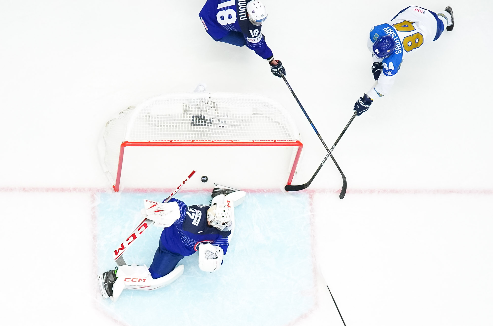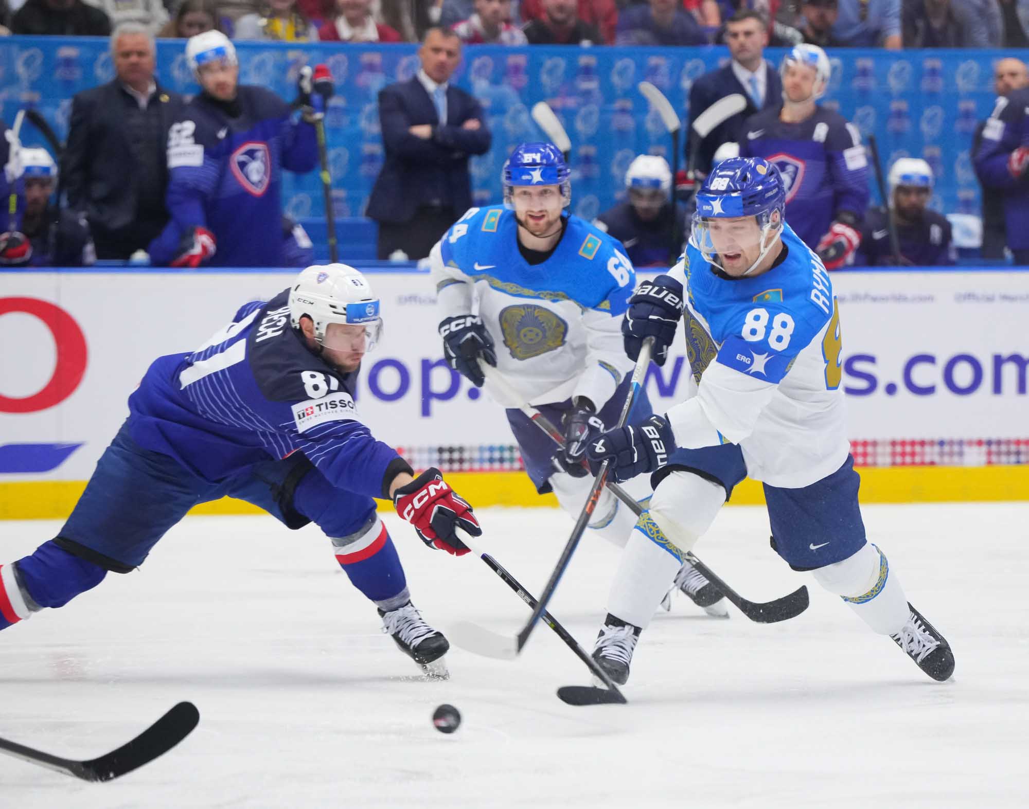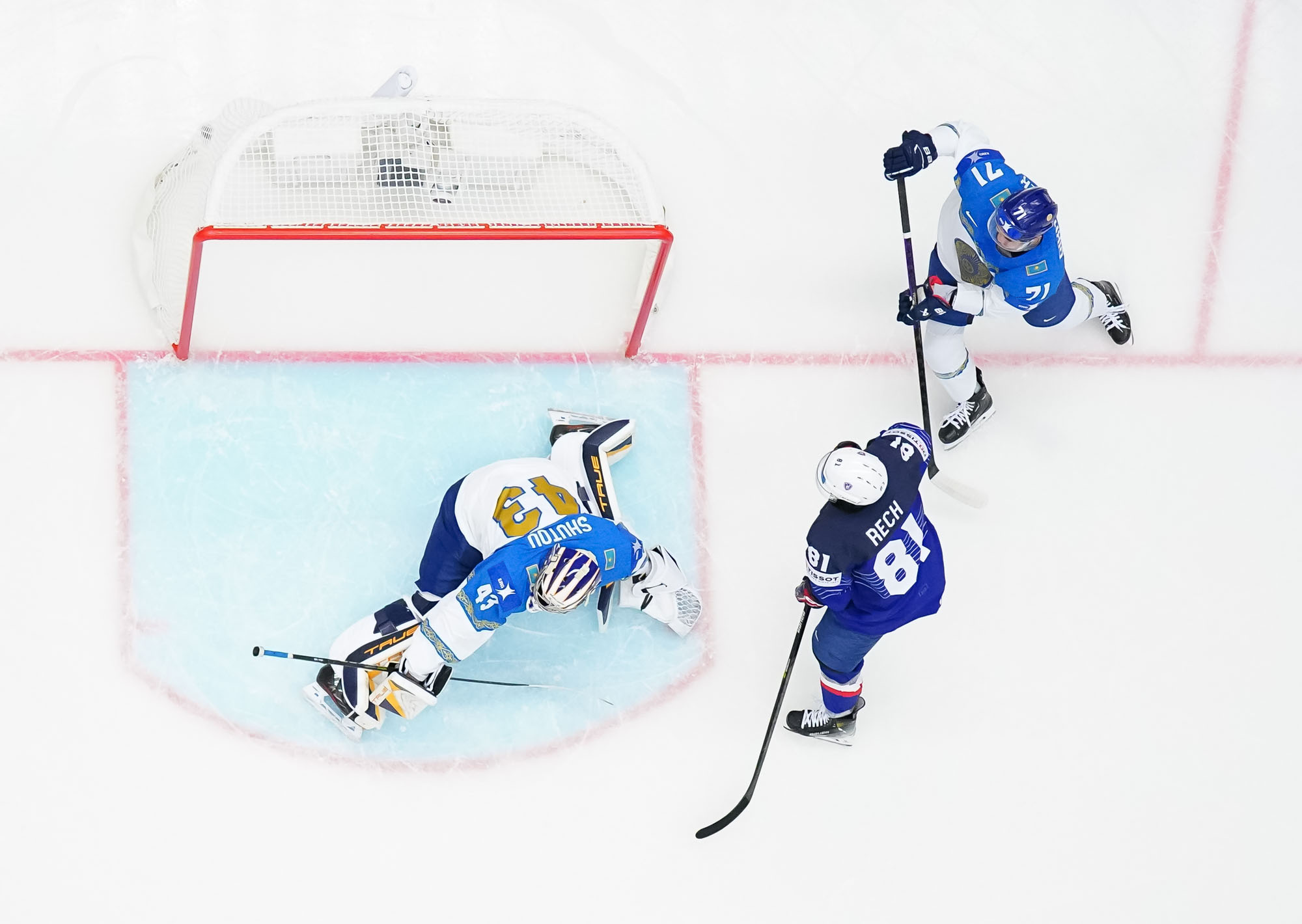 Kazakhstan scored three unconventional goals en route to a huge 3-1 win over France this afternoon in Ostrava. The win gives the Kazakhs three critical points in the standings as they aim to stay in the top pool and, perchance to dream, qualify for the quarter-finals.