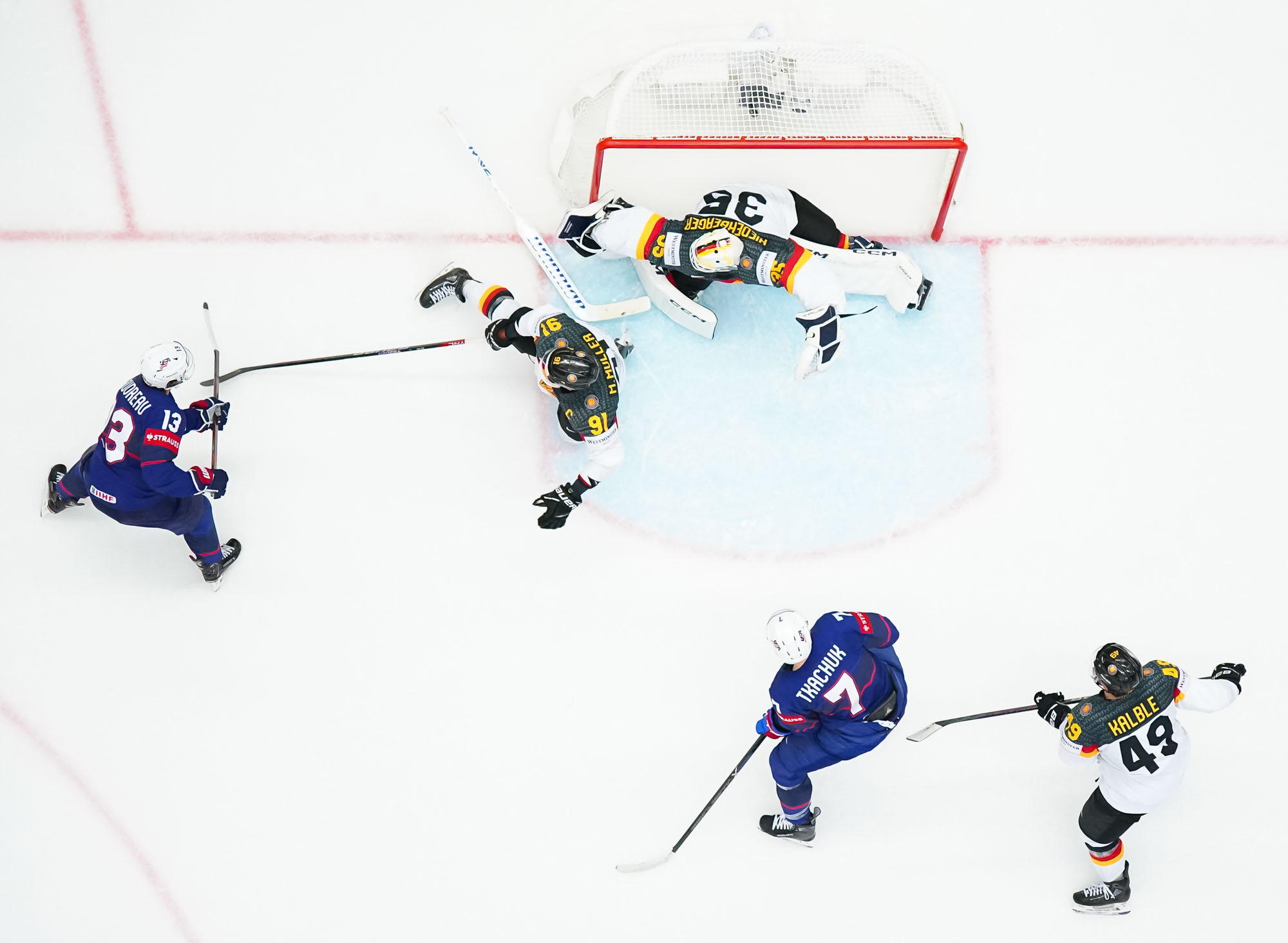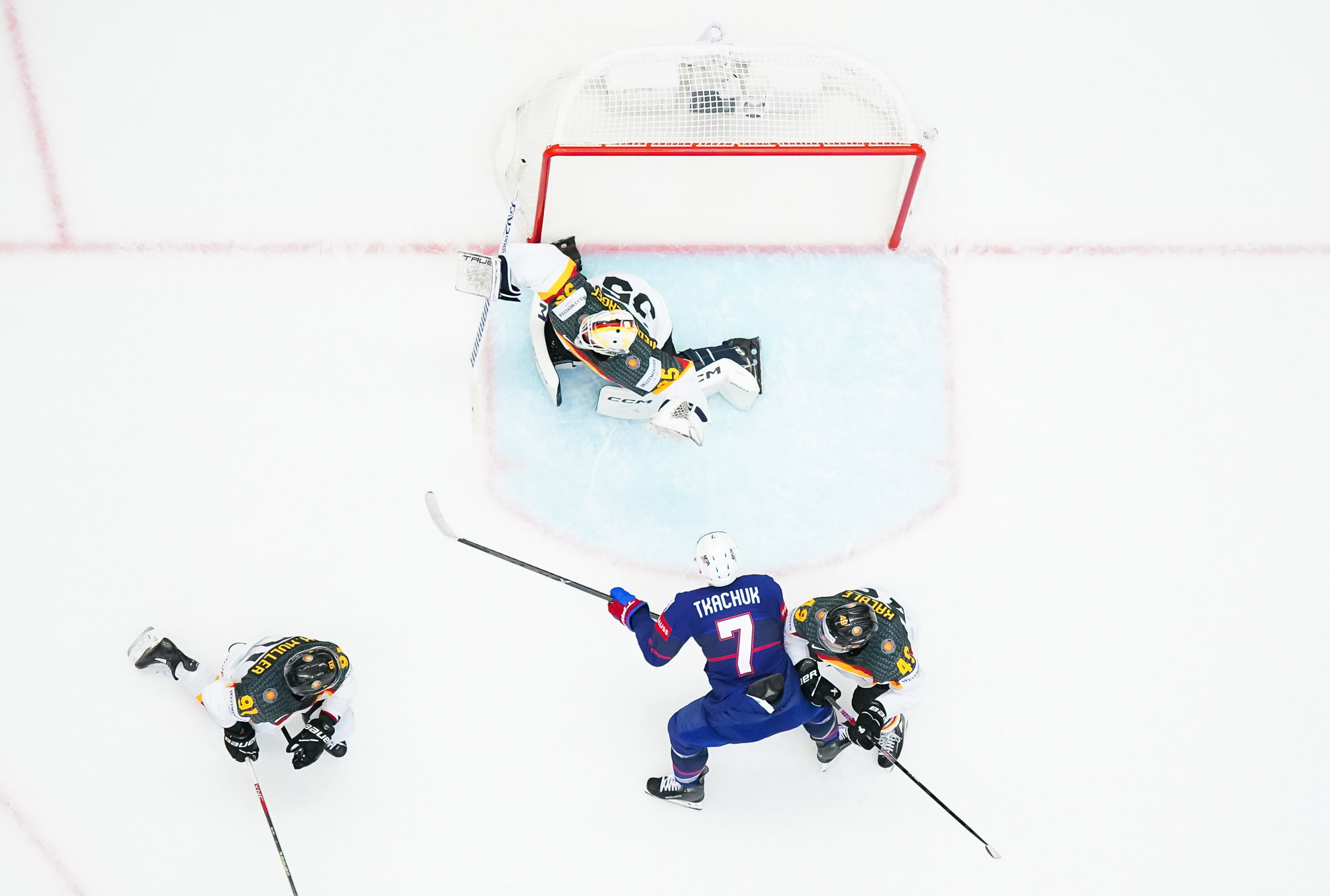But the backbreaker for the Germans came with only three seconds left in the period, when Luke Hughes snapped a shot over Niederberger to make it 4-1 and give the U.S. the momentum going to the dressing room.