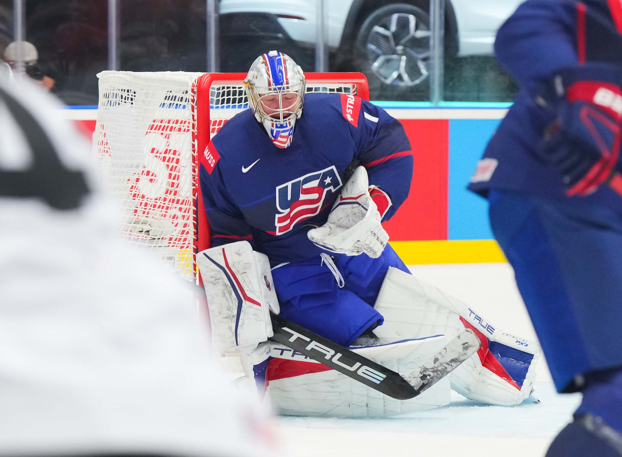 A mad scramble in the U.S. crease early in the second resulted in Alex Lyon having to leave the game, to be replaced by Trey Augustine, who has built an impressive resume despite being only 19 years old. He already has two medals at U18 and two more at U20 under his belt, and his career record in junior IIHF events is a staggering 17-0-2. And now, in a span of two years, he has also appeared in the senior Men’s Worlds. The change also necessitated third goalie Alex Nedeljkovic dressing as the backup.