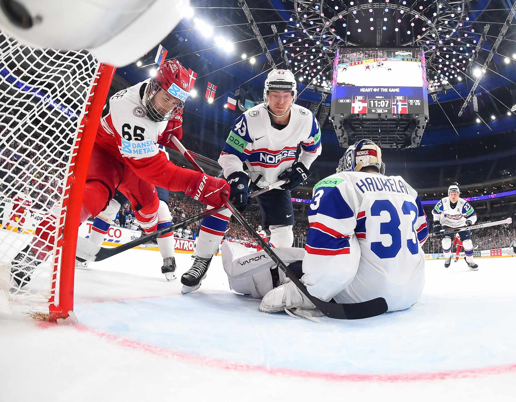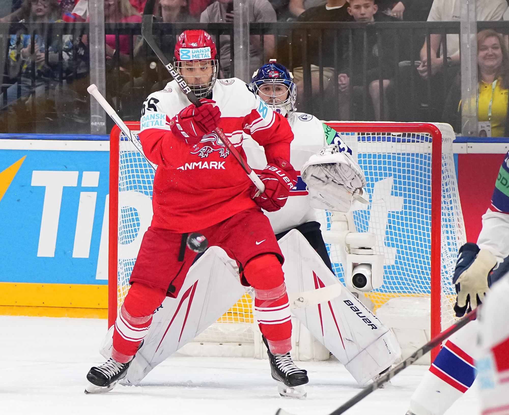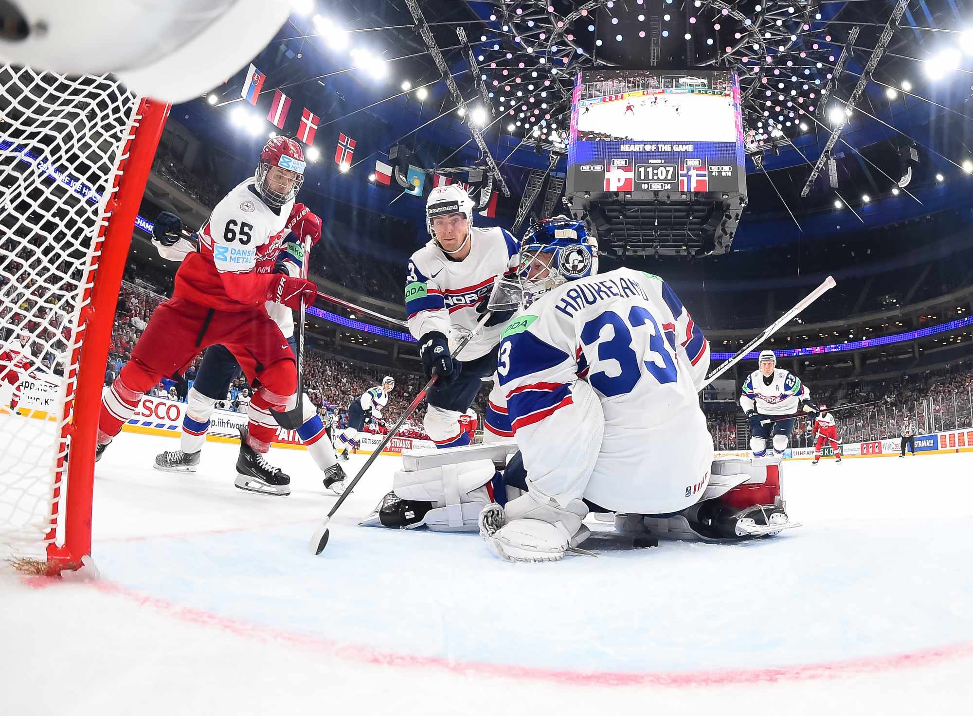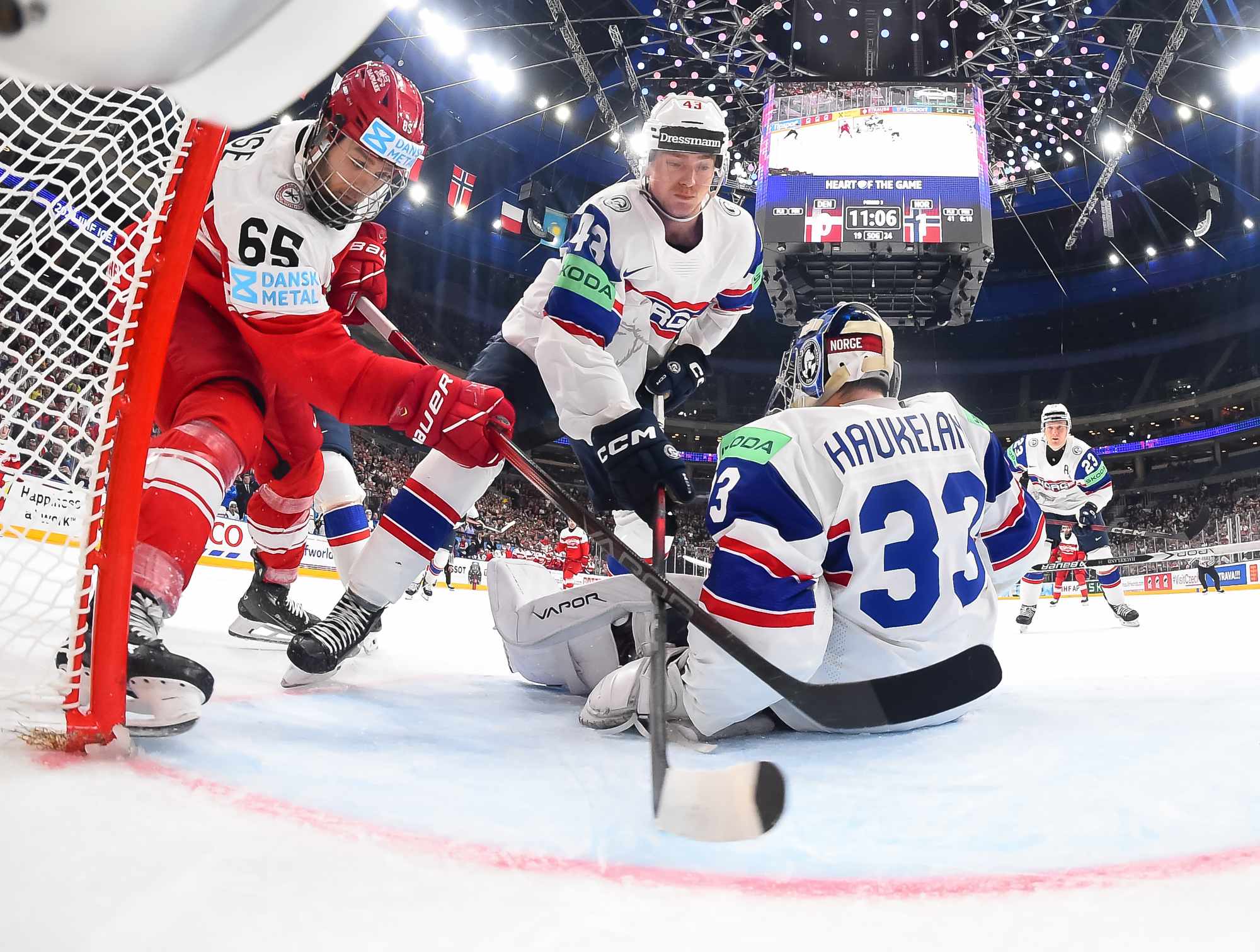 Denmark got the game’s first power play late in the first period. Thoresen got sent off for manhandling Christian Wejse in front of Haukeland. However, the Danes couldn’t find the range.