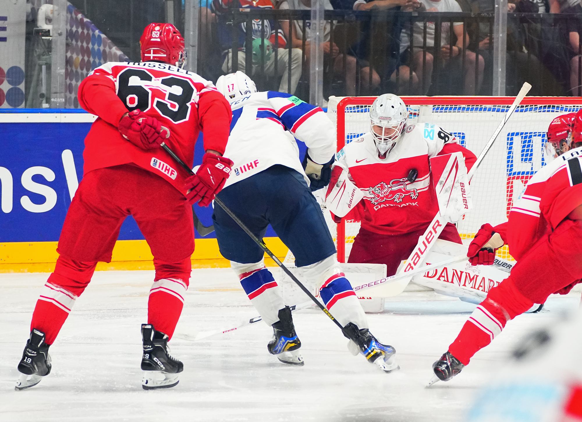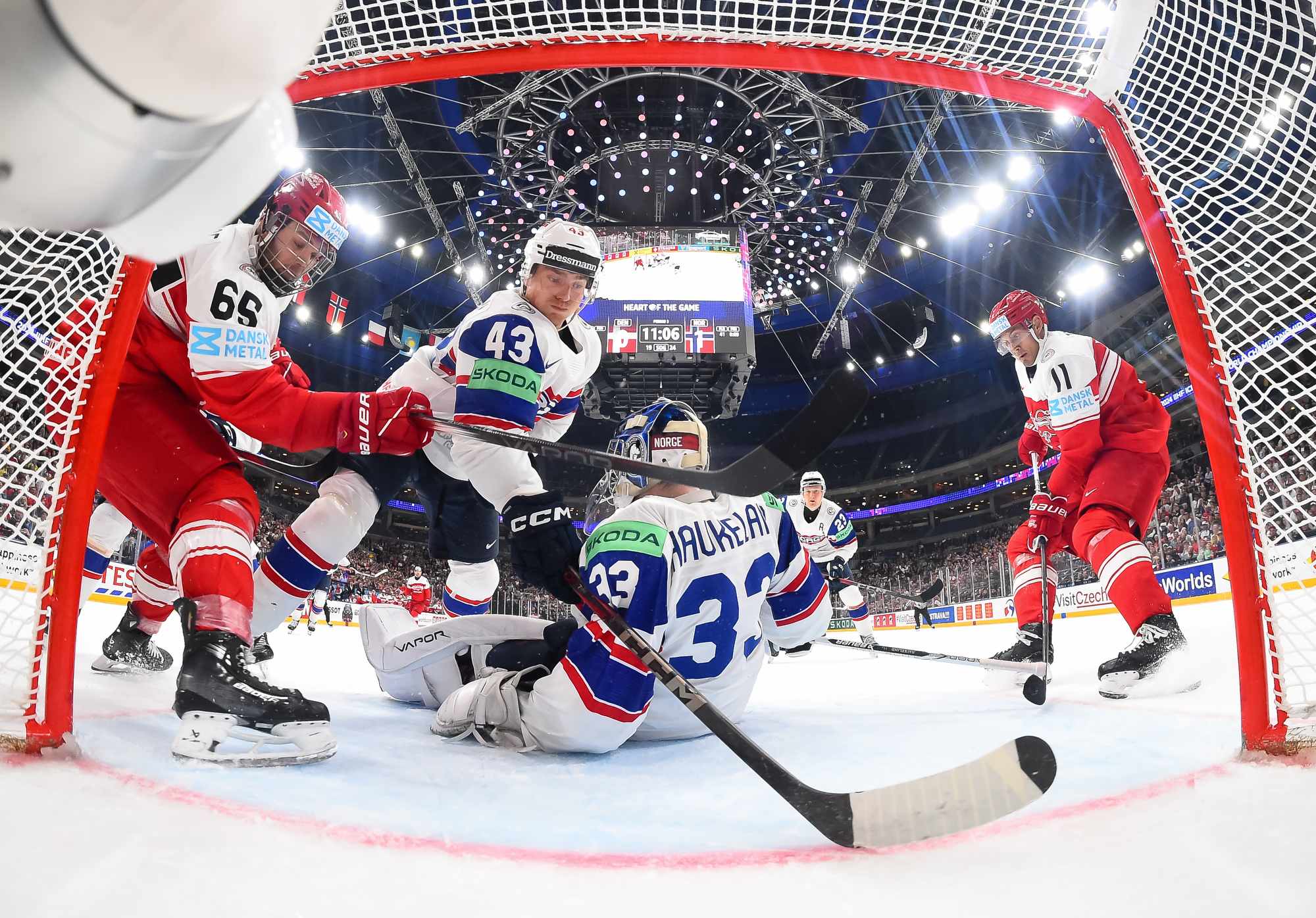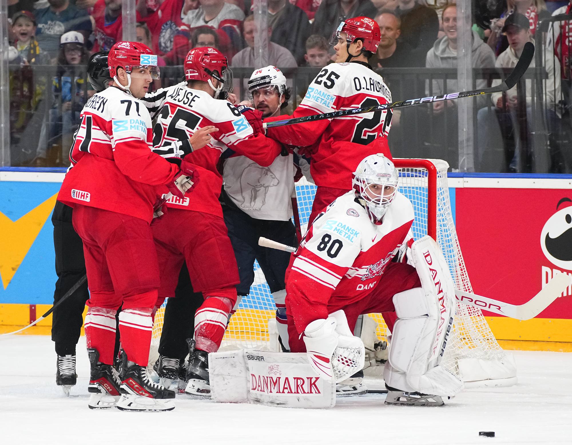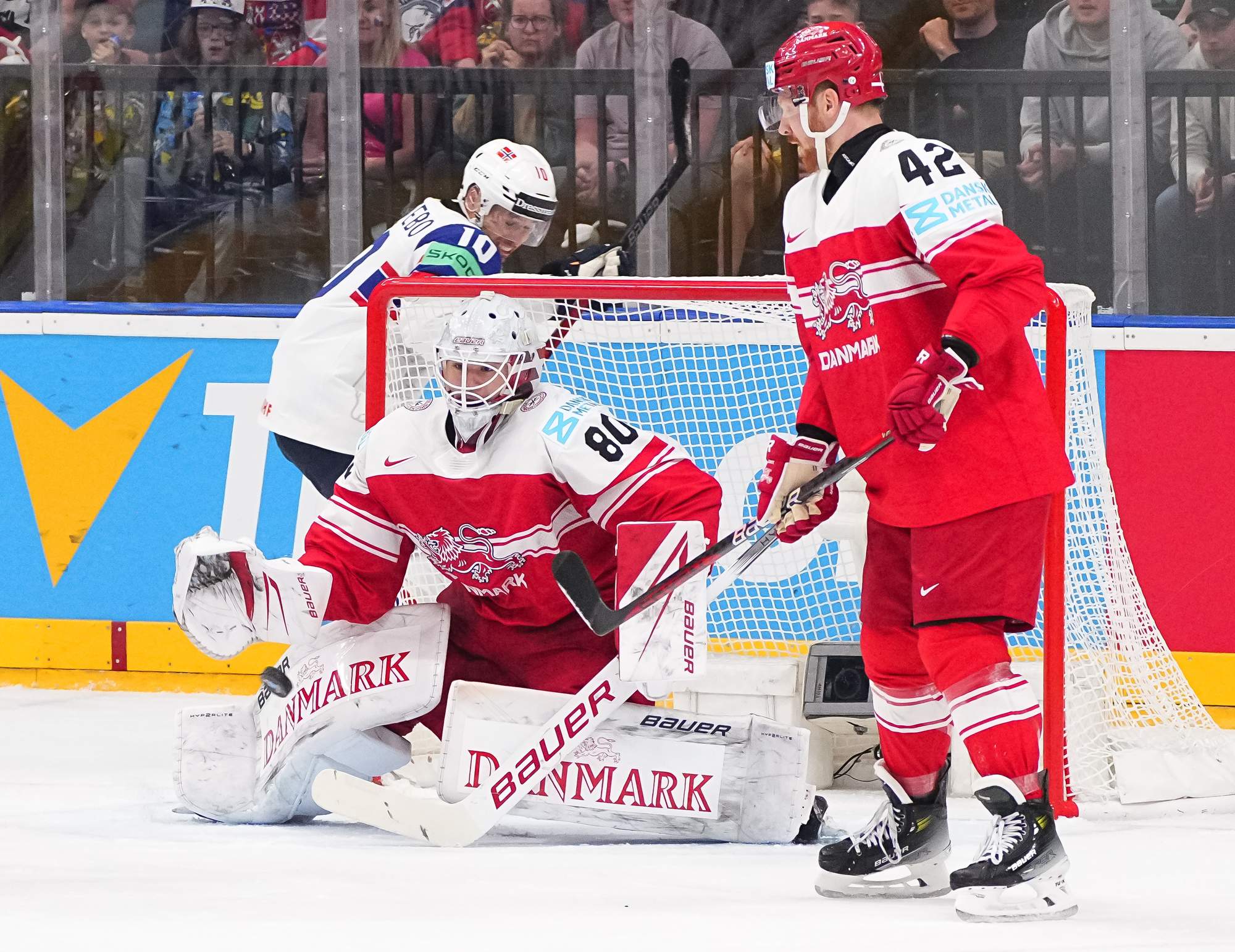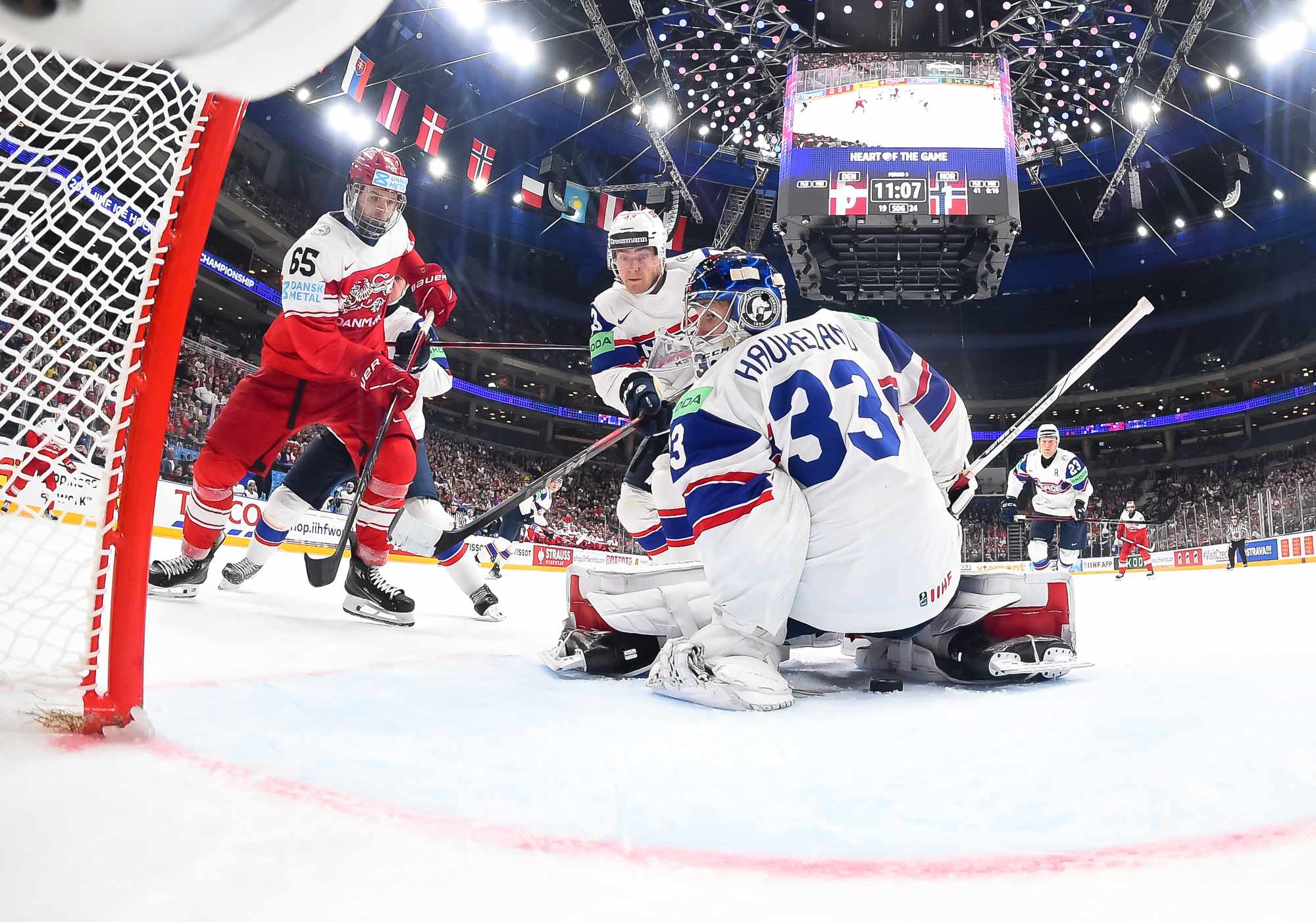 Denmark got the game’s first power play late in the first period. Thoresen got sent off for manhandling Christian Wejse in front of Haukeland. However, the Danes couldn’t find the range.