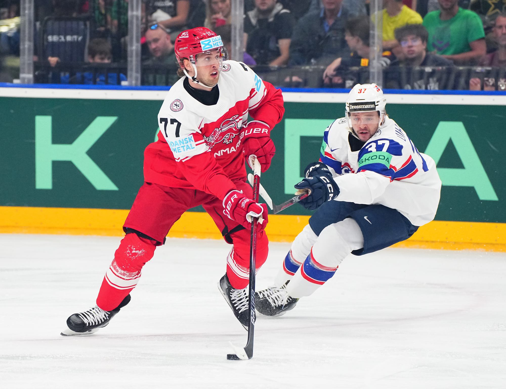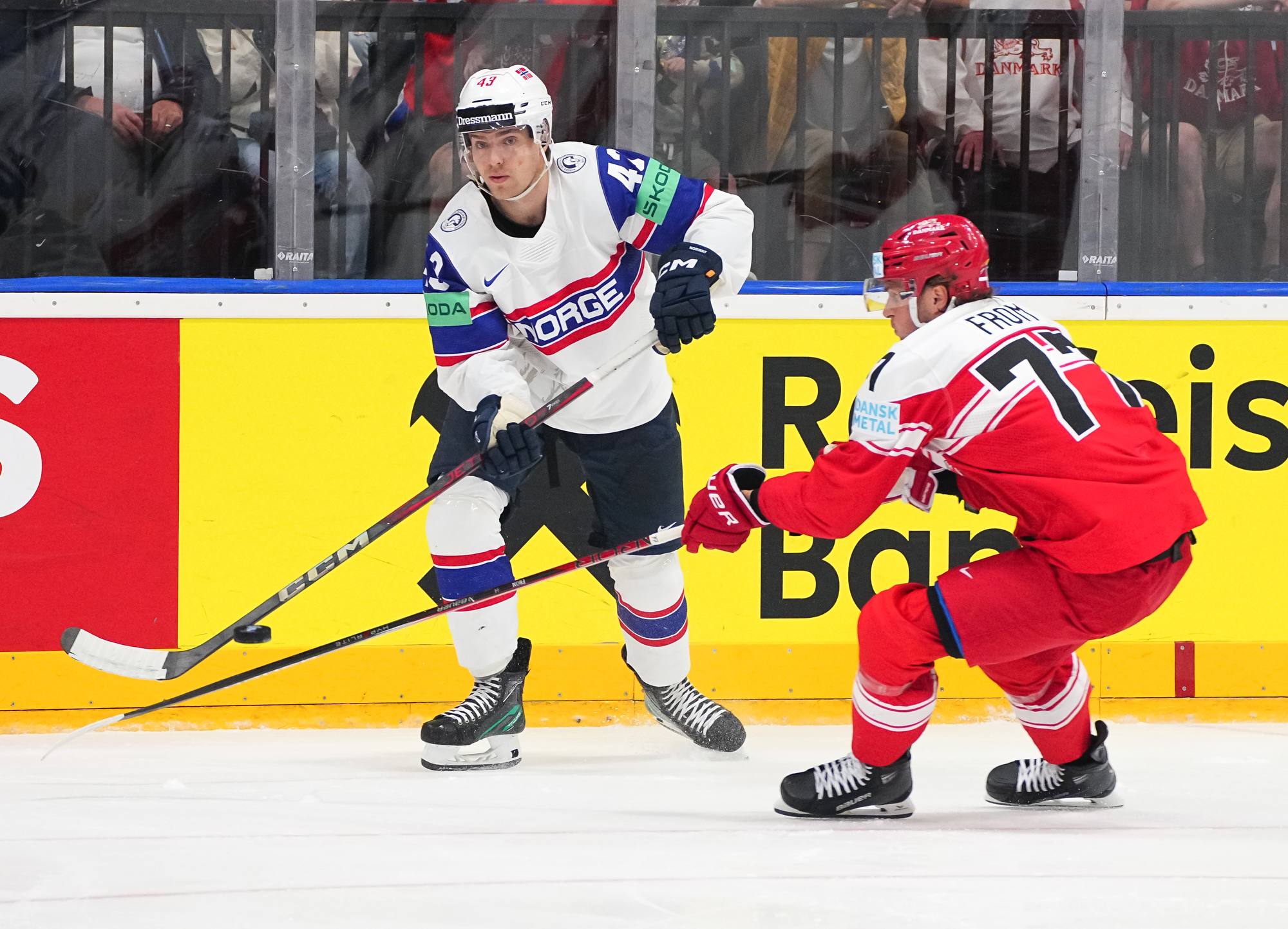 Norway outpaced Denmark for an important 2-0 win in Group A action at the 2024 Worlds in Prague.