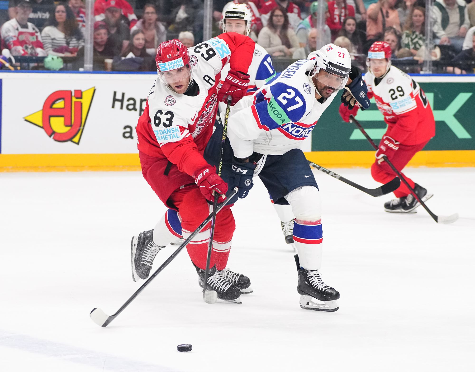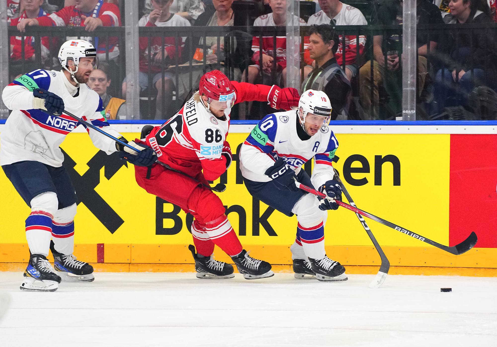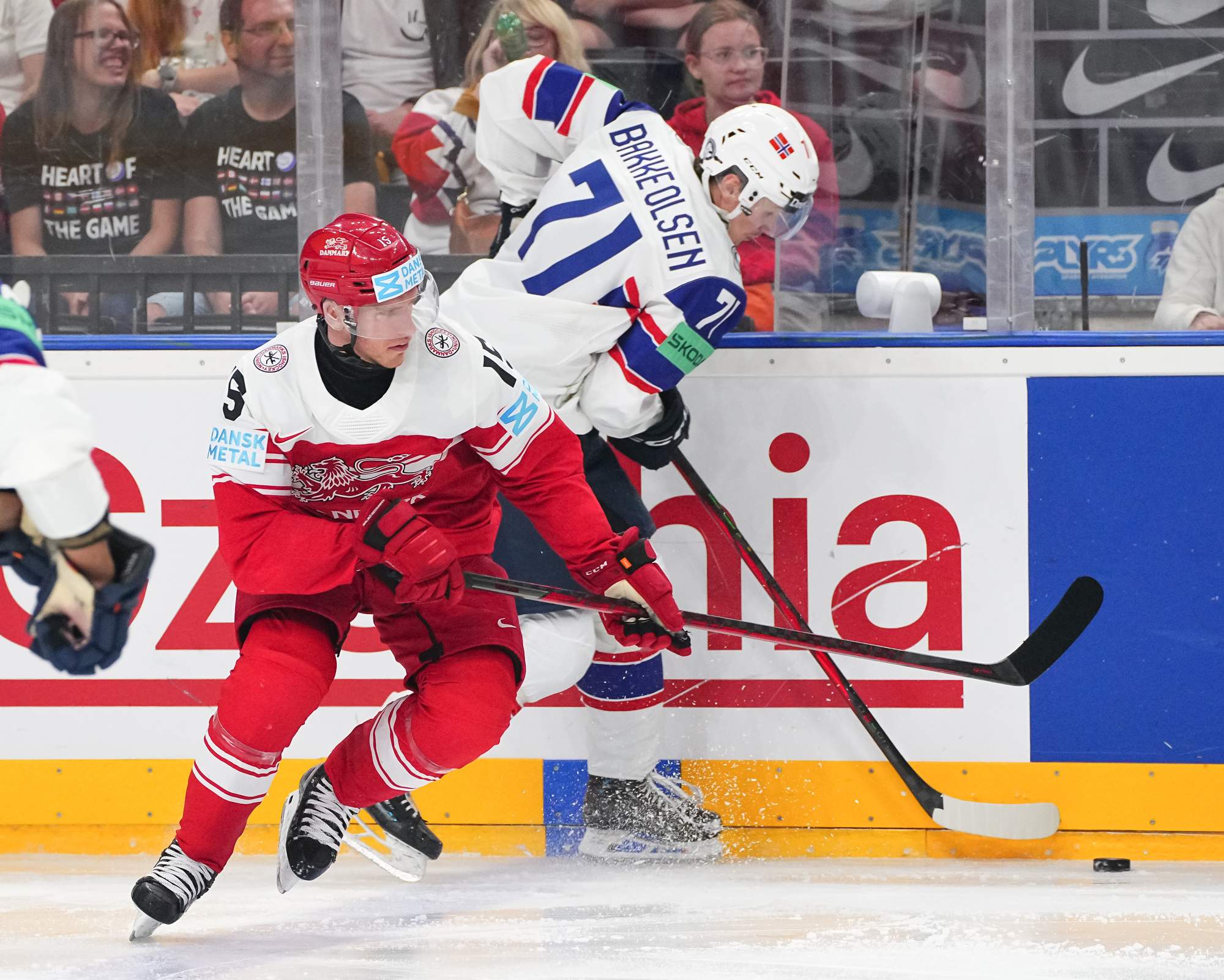 The physicality picked up in the final stanza. Norway's Christian Kaasastul deposited Wejse over the boards with a well-timed, heavy bodycheck. A high-sticking call on Thoresen spawned another wasted power-play chance for the Danes.