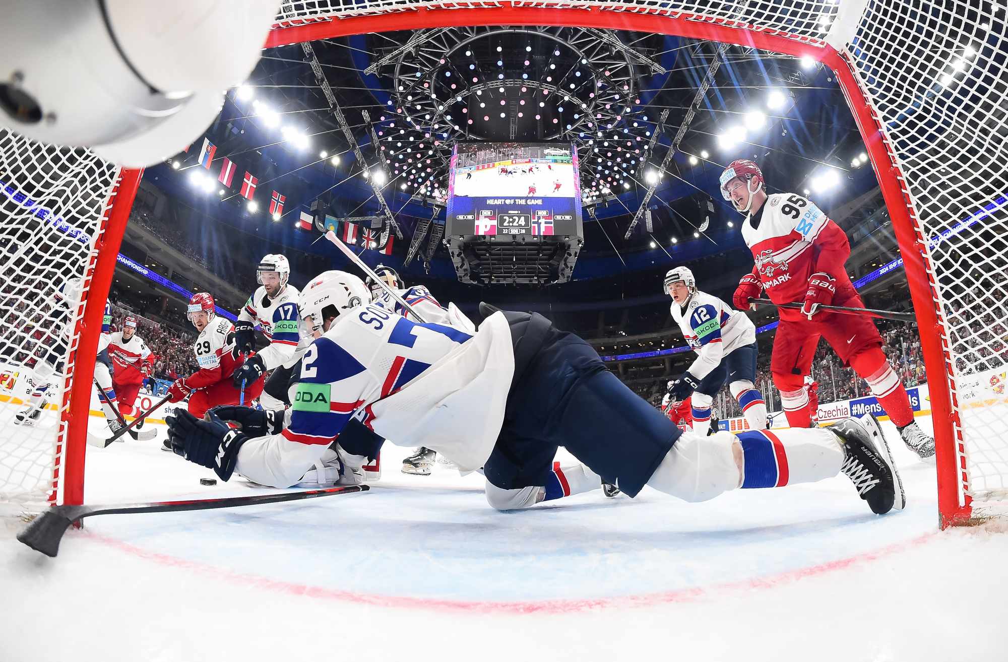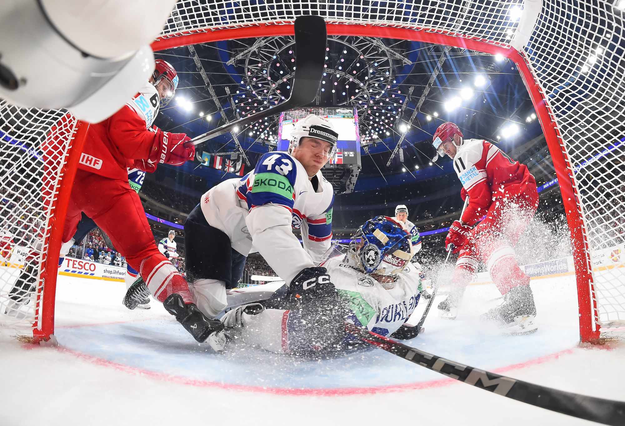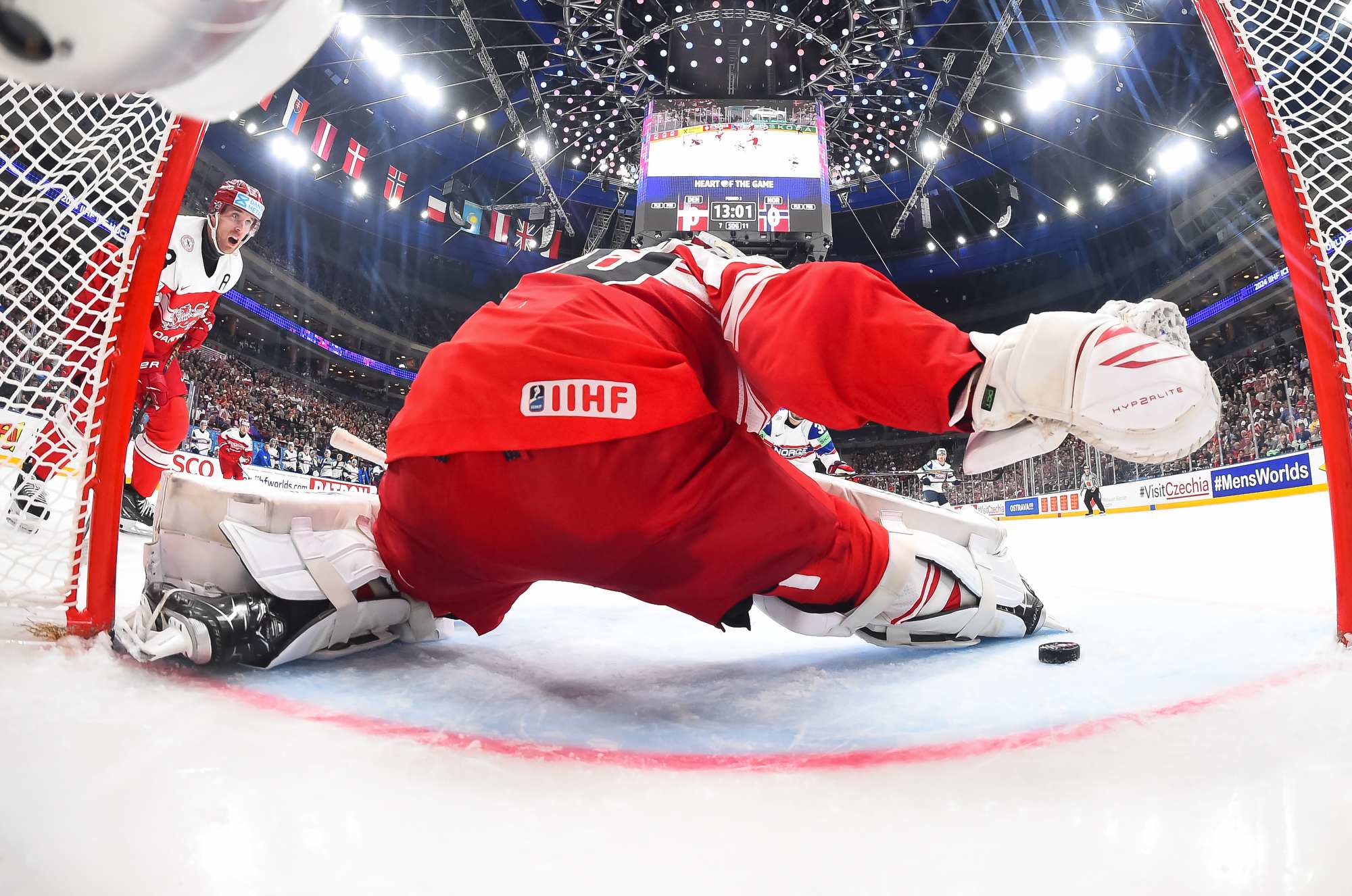 At the other end, Zuccarello hit Dichow with a rising shot that bounced up and over the Danish netminder with under four minutes left. His right leg kicked back in a desperate bid to keep the puck out. The play was video-reviewed extensively and it was ruled that the puck did not cross the goal line.