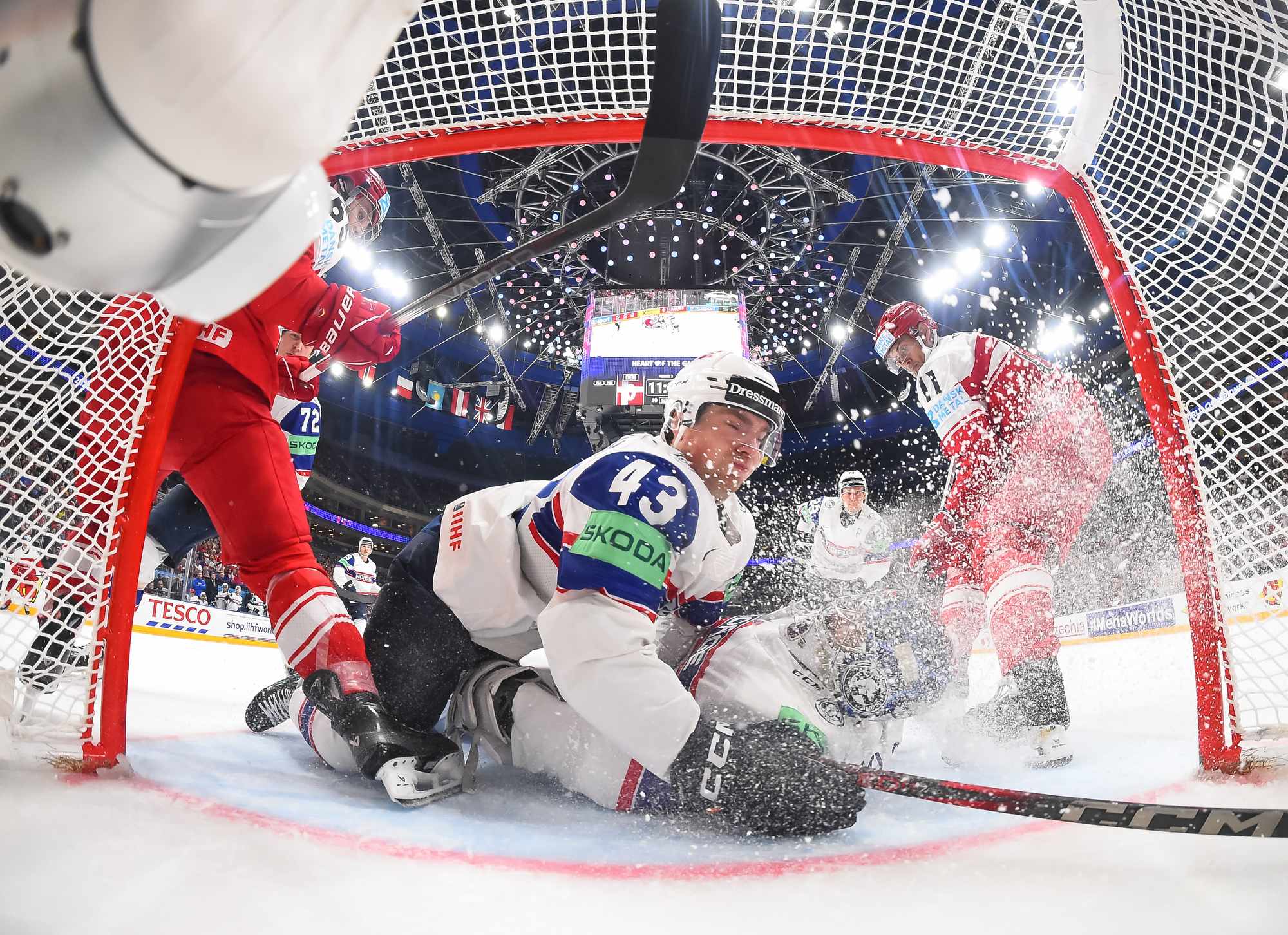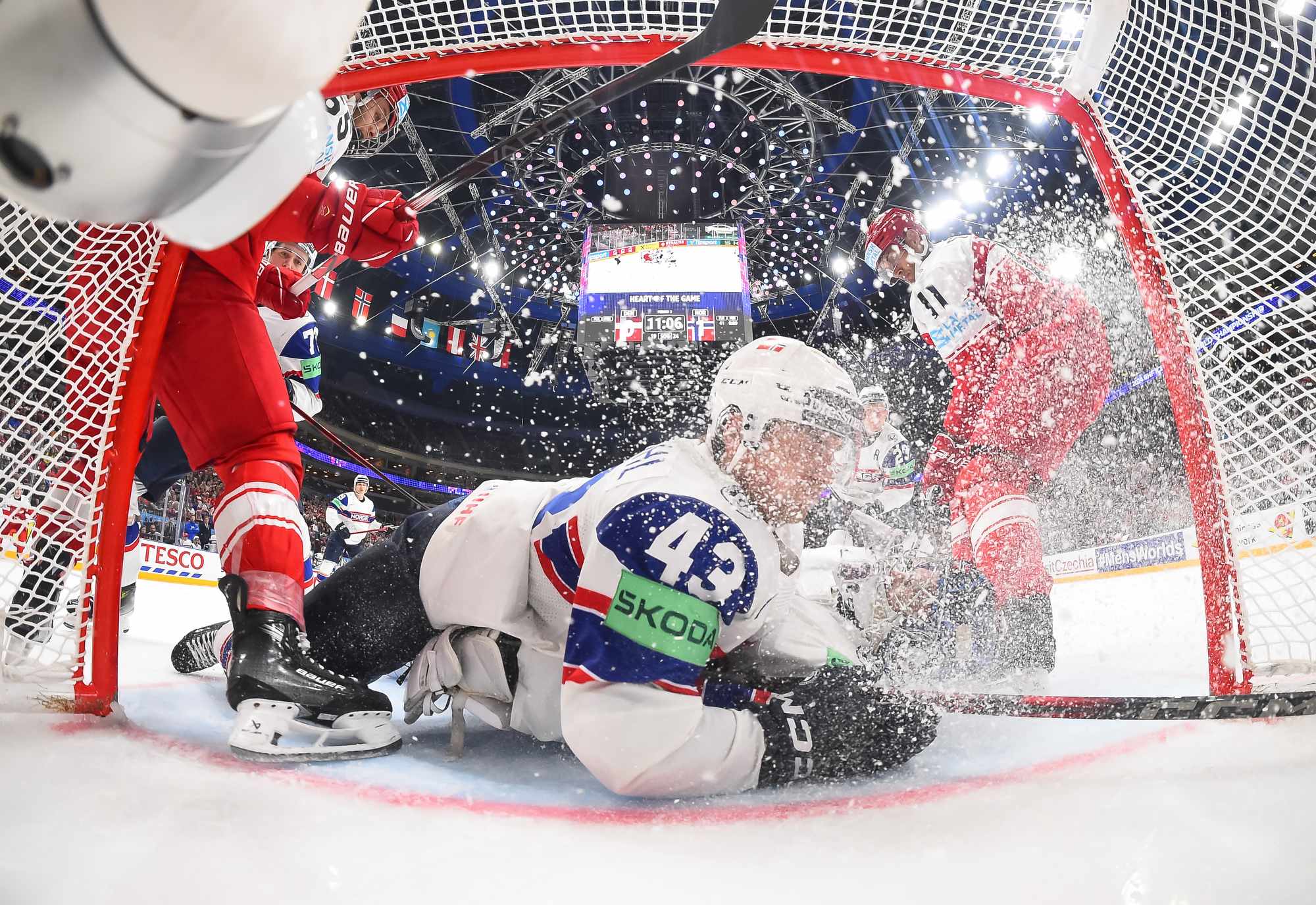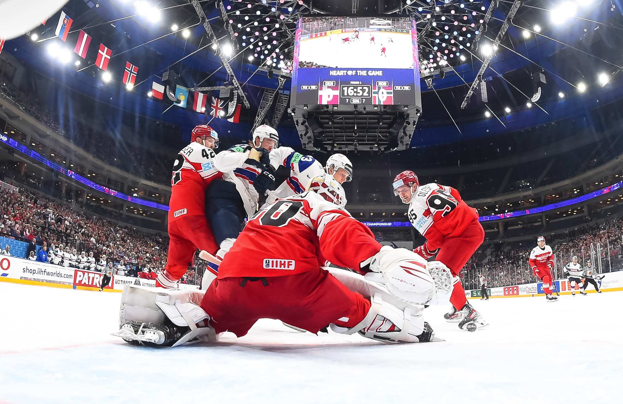 At the other end, Zuccarello hit Dichow with a rising shot that bounced up and over the Danish netminder with under four minutes left. His right leg kicked back in a desperate bid to keep the puck out. The play was video-reviewed extensively and it was ruled that the puck did not cross the goal line.