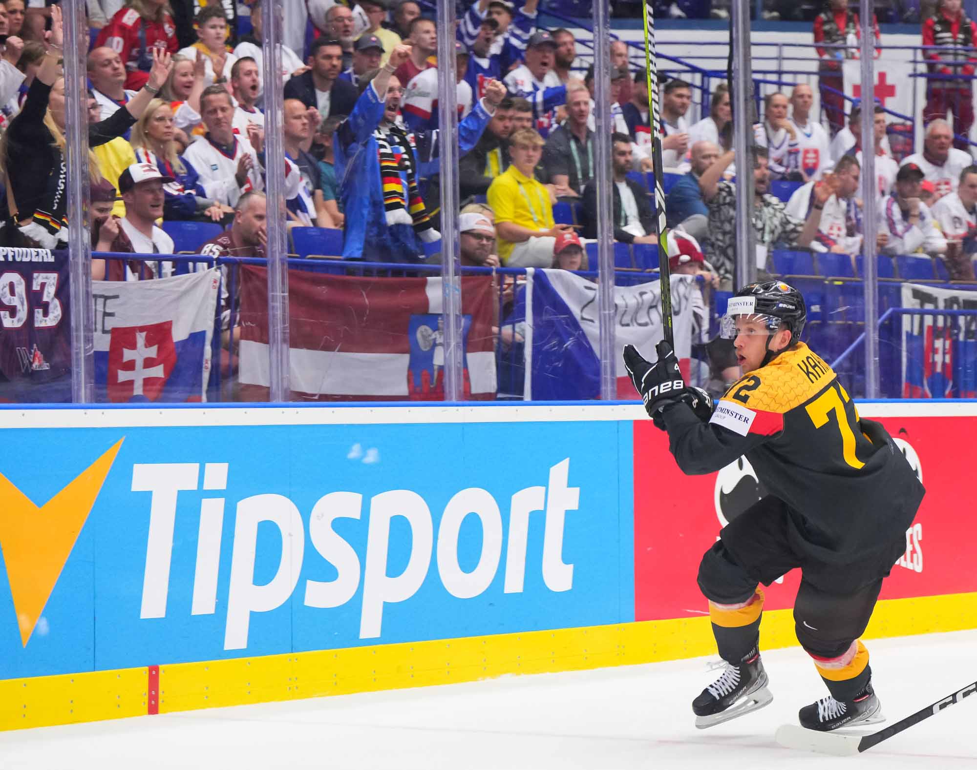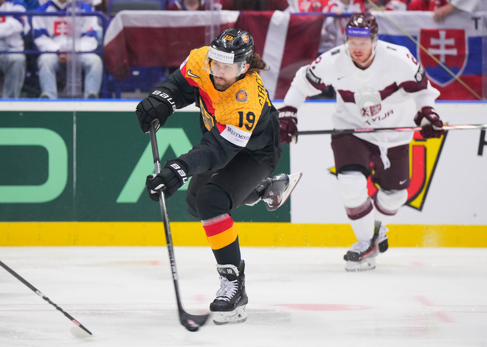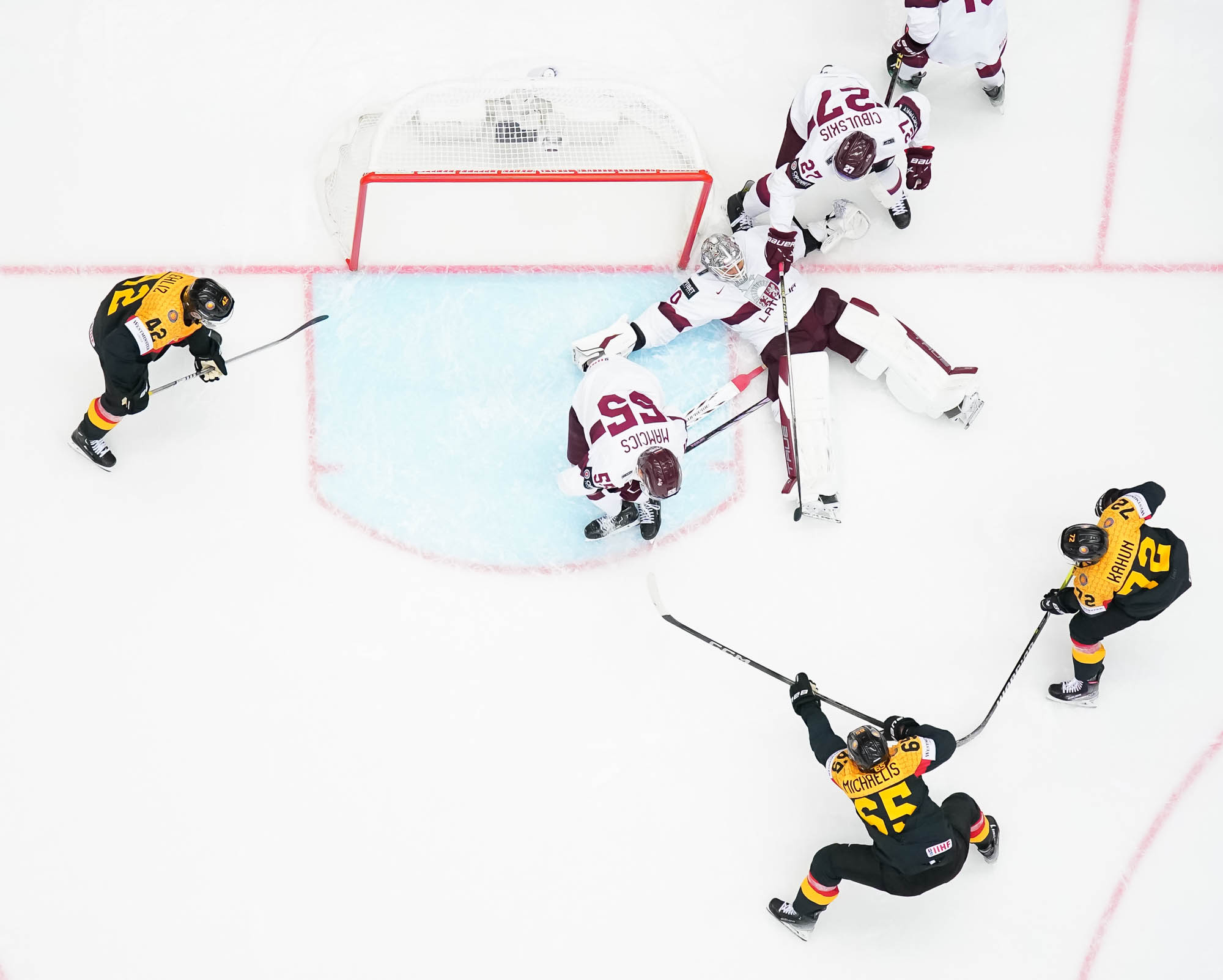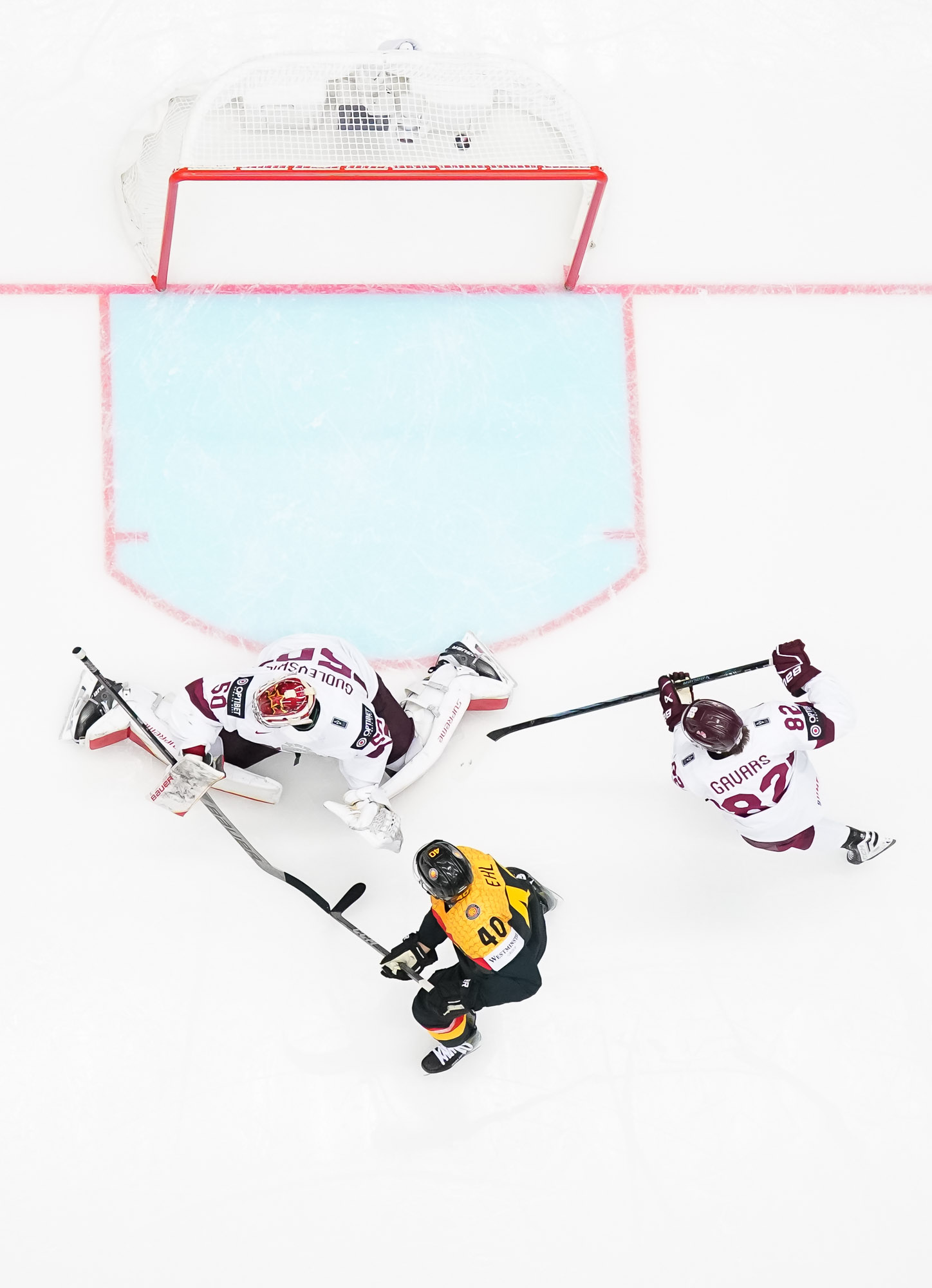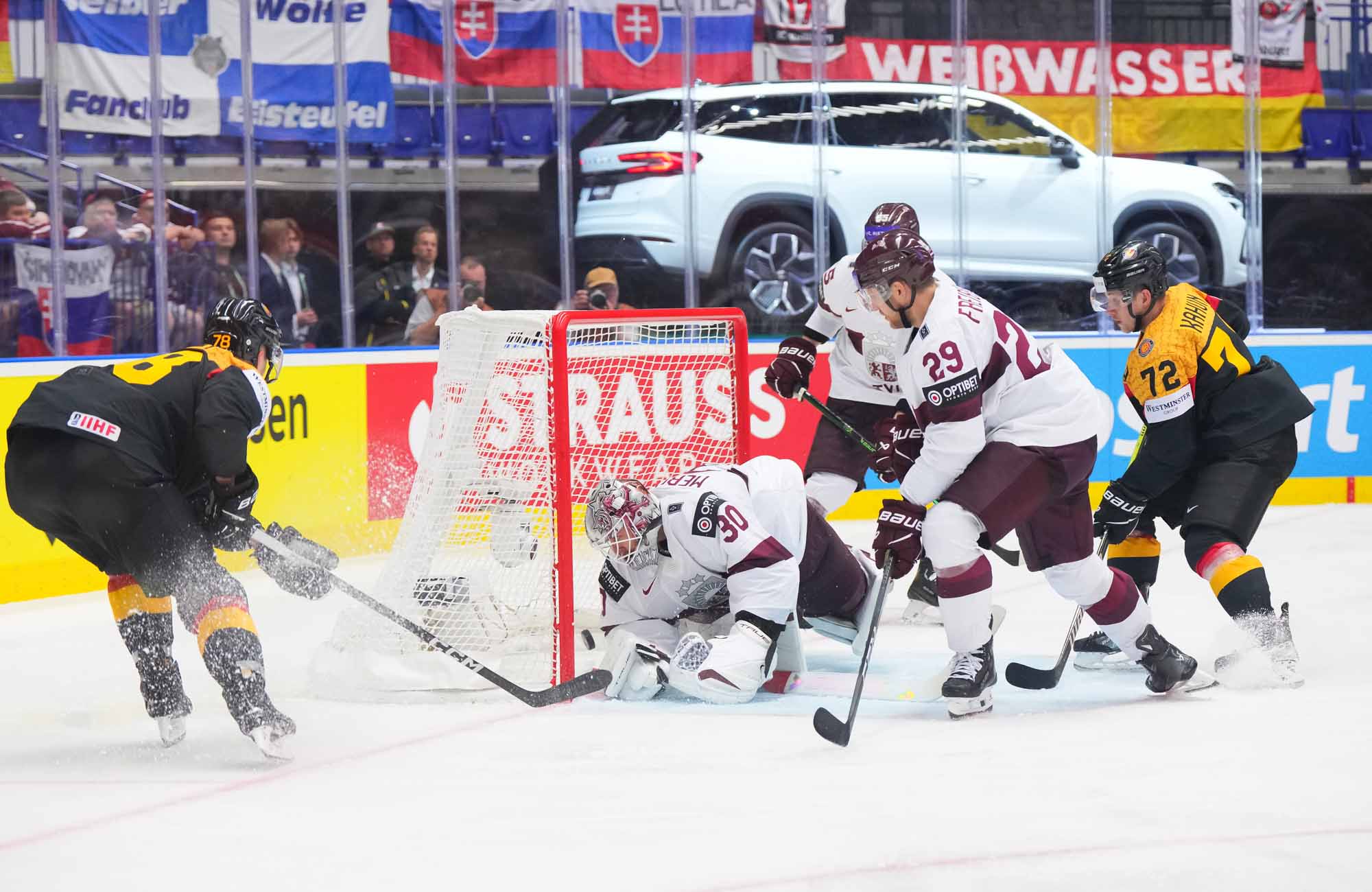 The Germans came out with purpose, taking advantage of their chances and keeping Latvia to the outside for the most part. They opened the scoring at 5:27 after a too casual save from Kristers Gudlevskis, starting his second game of the tournament. He couldn’t control the rebound off a shot, and the puck came right to Dominik Kahun, who made no mistake.
