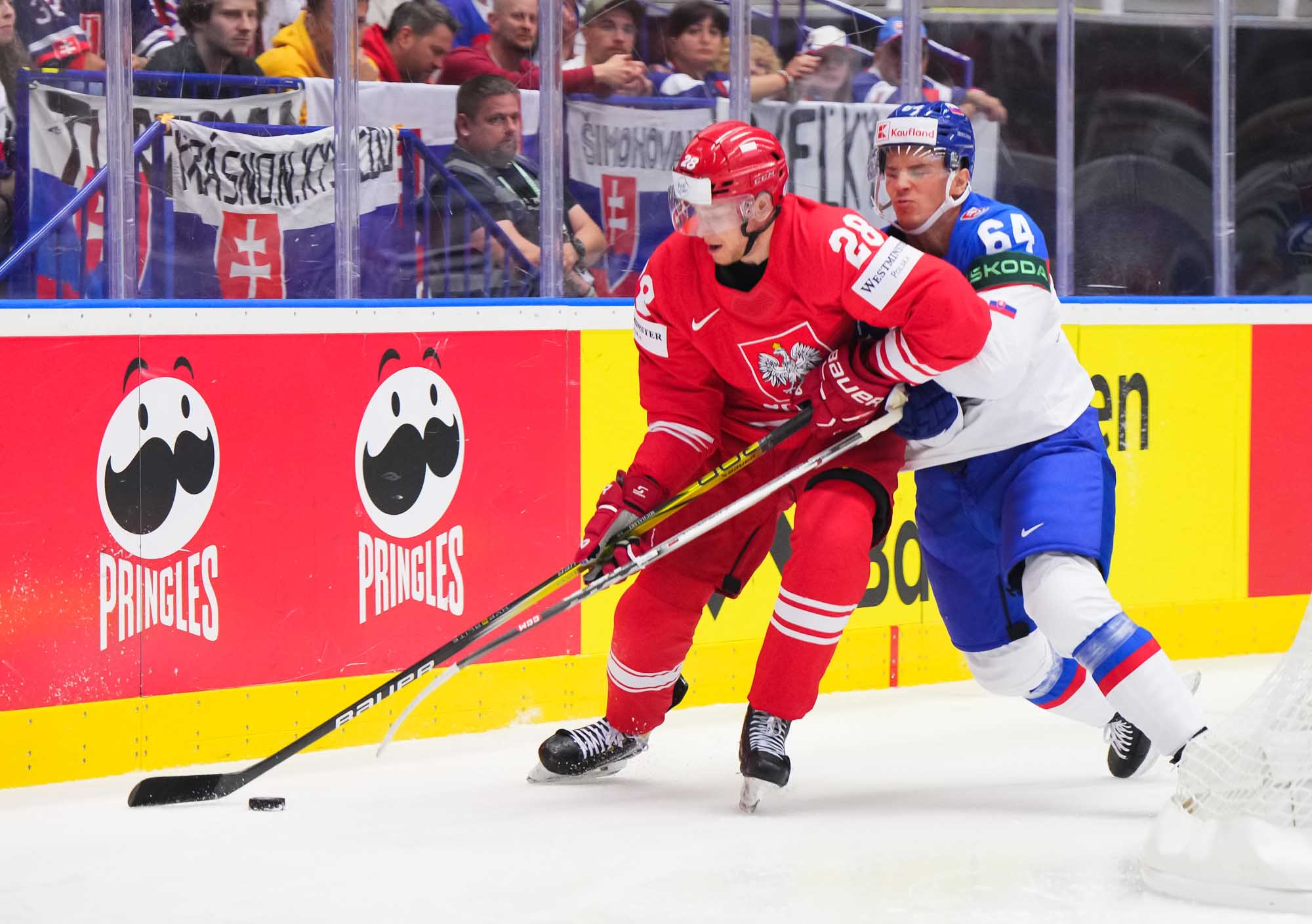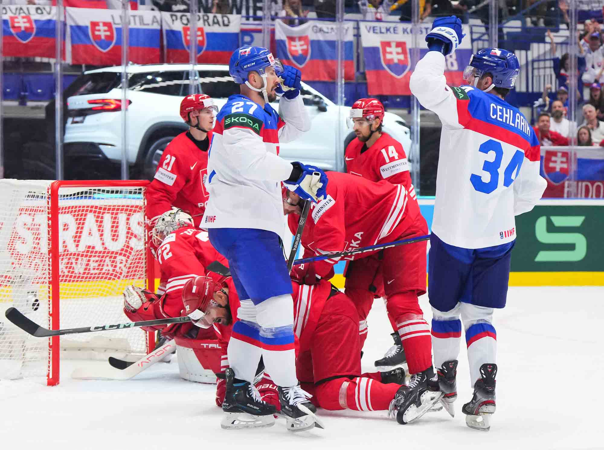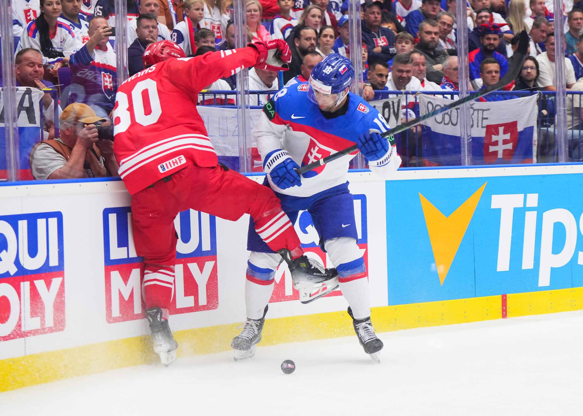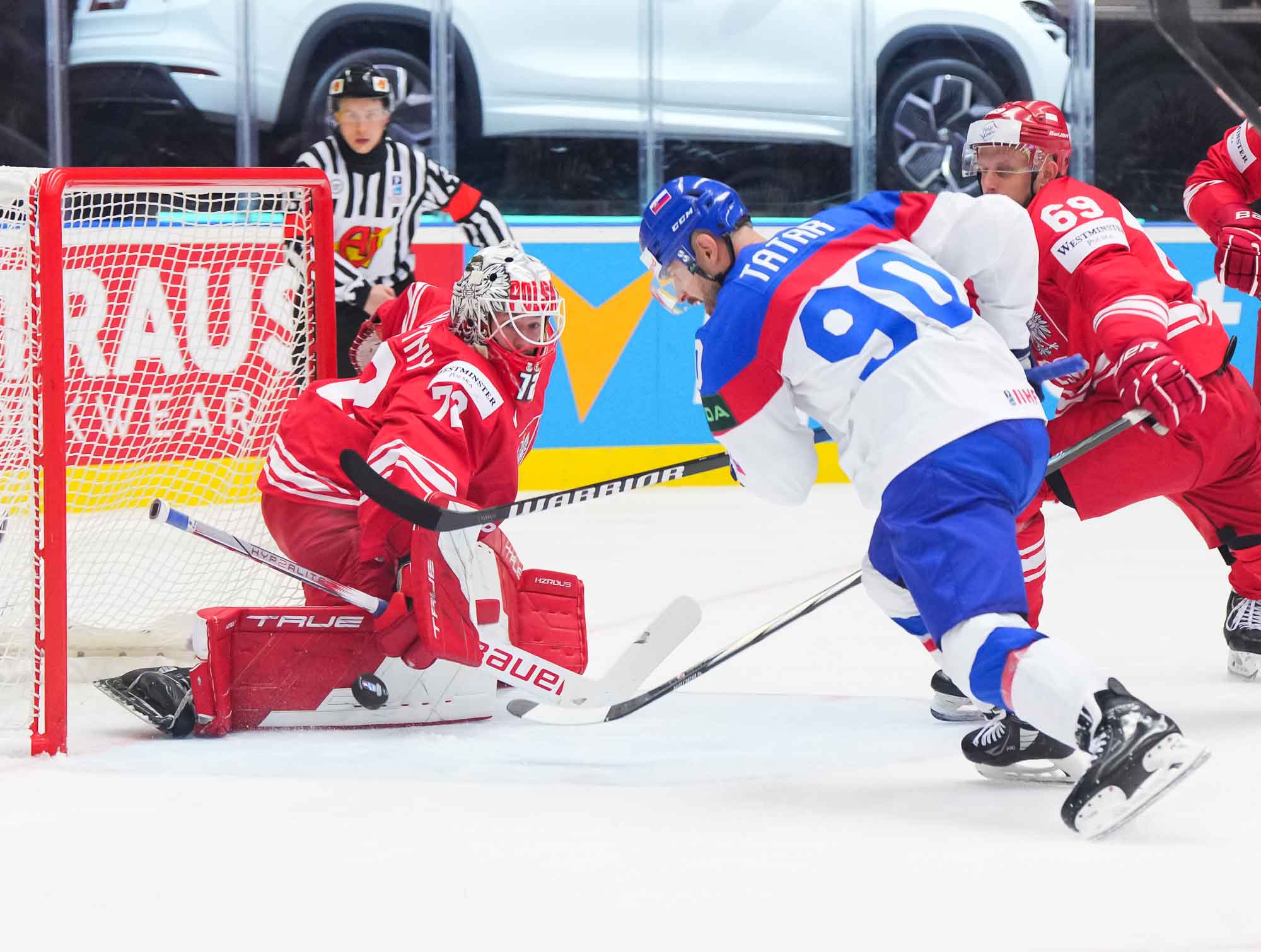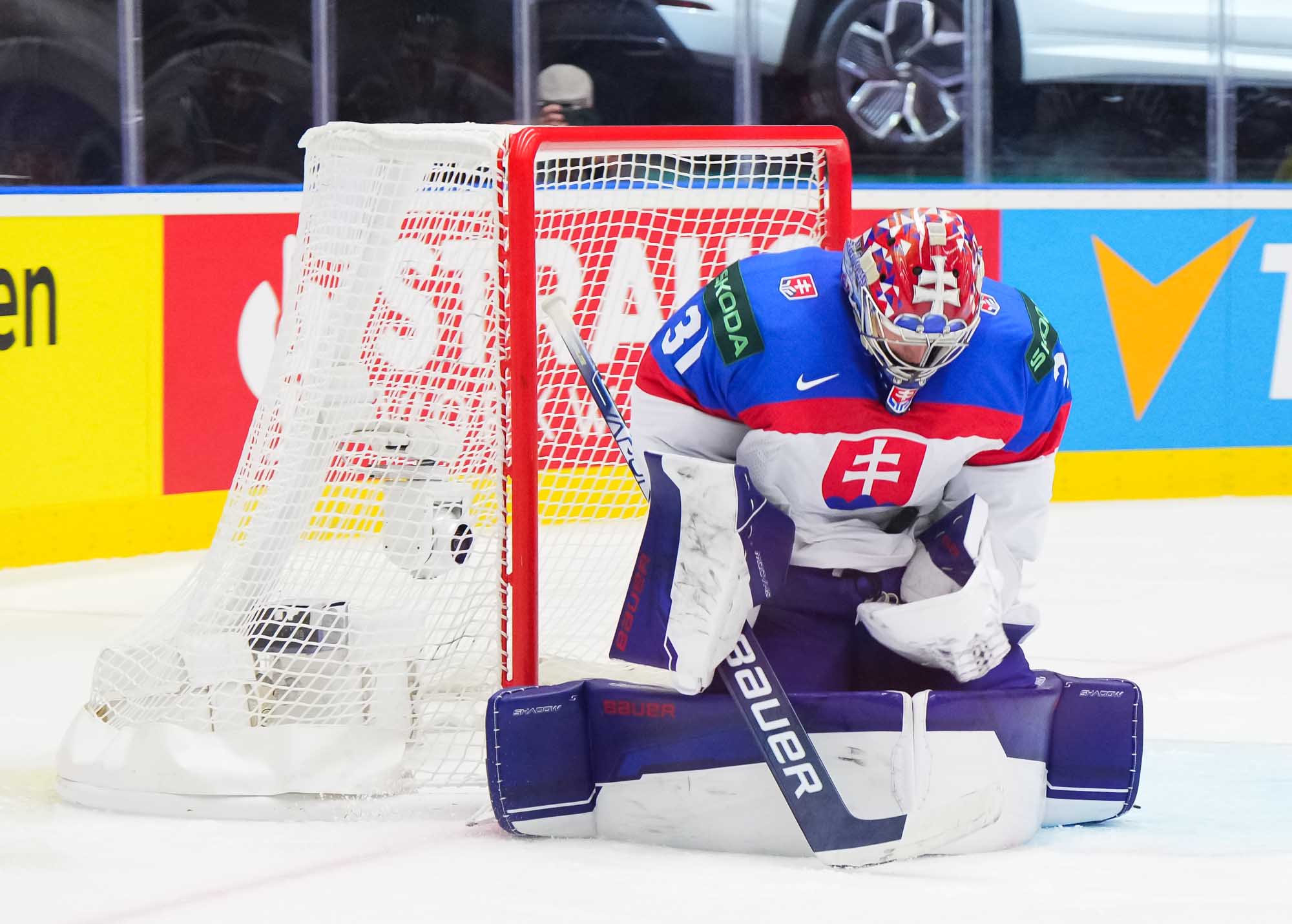 With 12 minutes left, Tatar, playing in his seventh World Championship, sped in on a breakaway and got a nice snap shot off that Fucik fought off, one of his 14 saves in the period. Fucik also kicked away a slot shot from Slovakia’s Martin Pospisil for one of his better saves in the first.