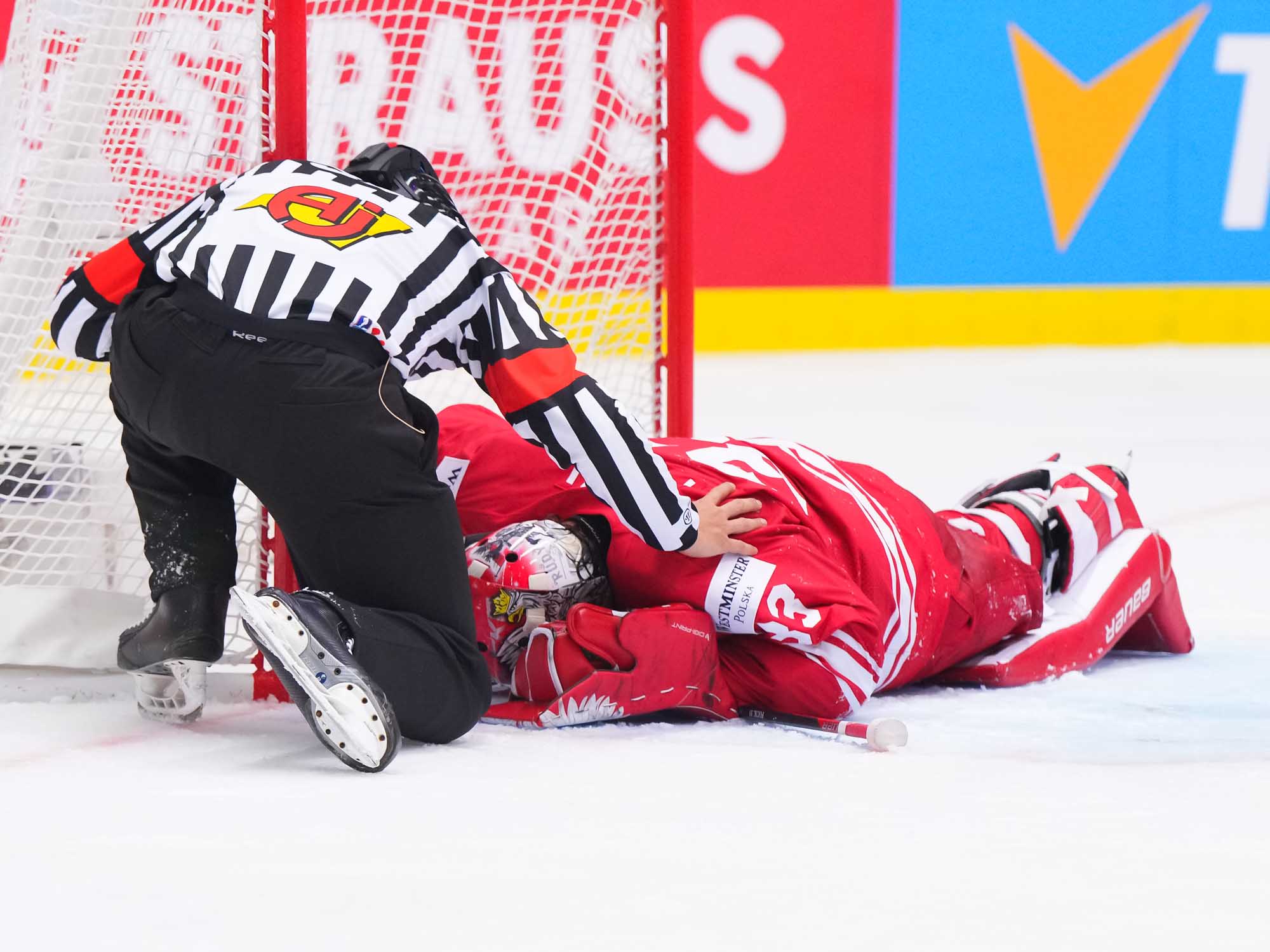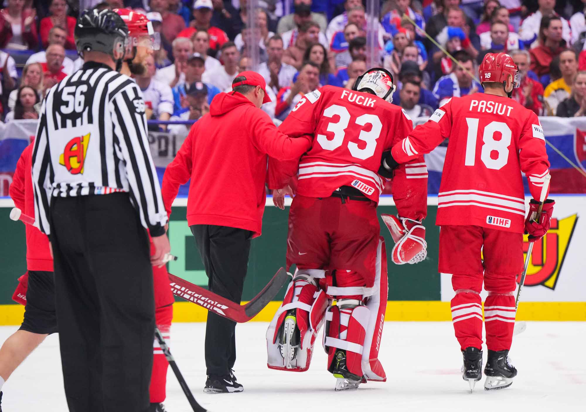 Fucik had to leave the game at 11:03 of the third when he stopped a hard Peter Cehlarik slapshot and then scrambled to also stop the rebound off the stick of Cingel, staying down for a couple of minutes in obvious pain. David Zabolotny came into the Polish net in relief.