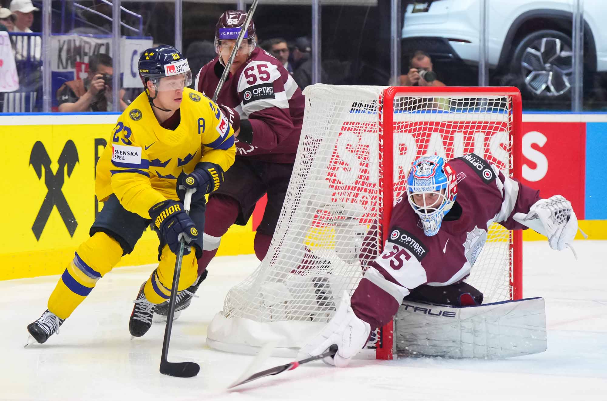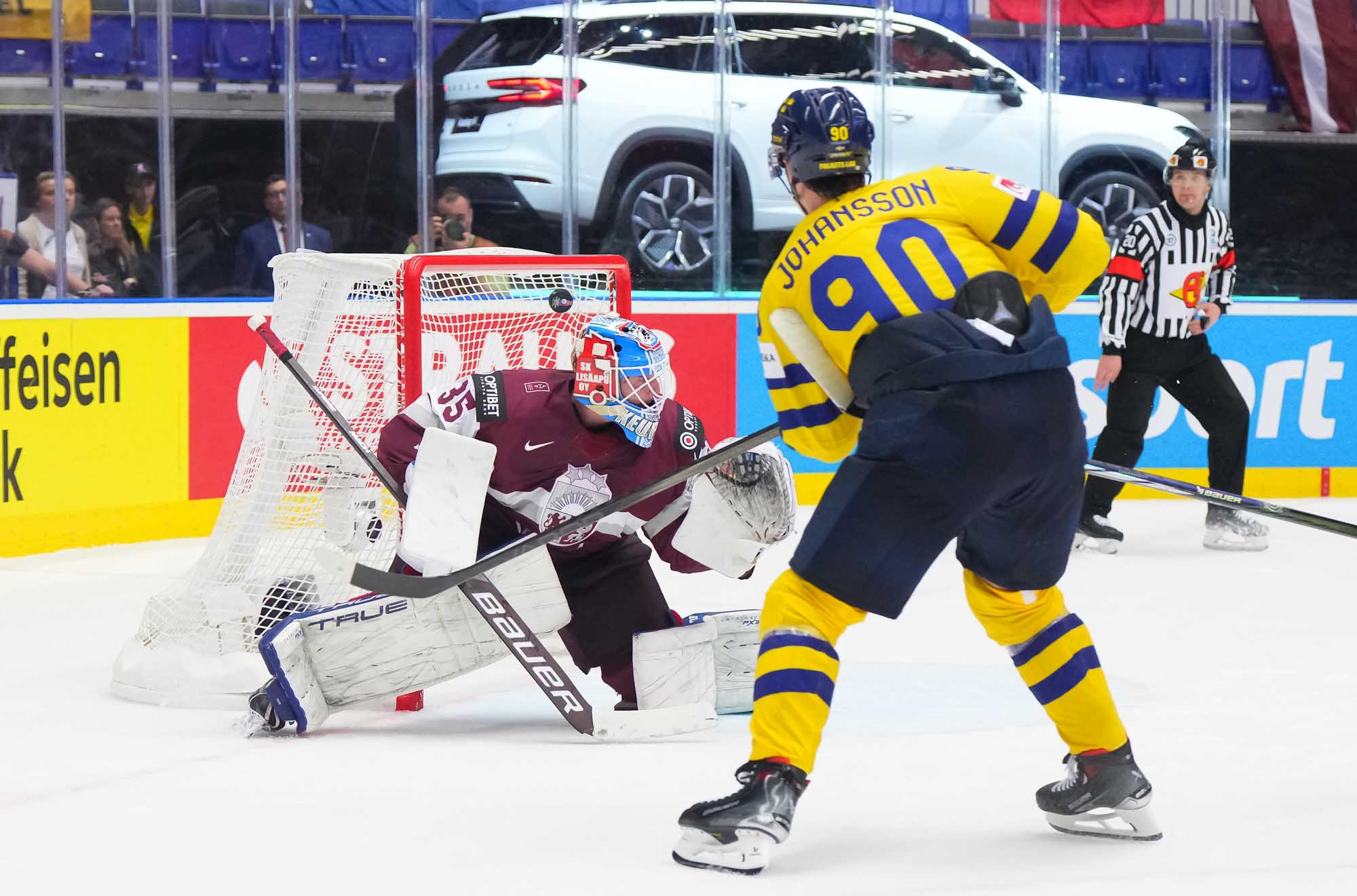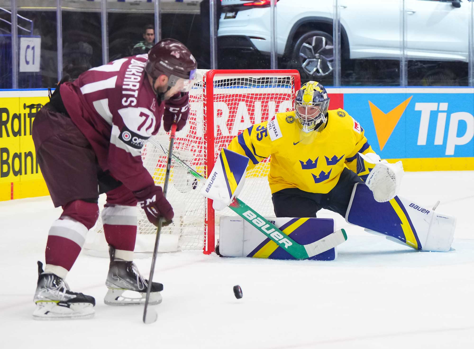 Latvia had only four shots on Filip Gustavsson in the opening period, none particularly dangerous, but the second began as if a switch had been turned on. Latvia tied the game with two goals in the first 3:17, scoring twice in a 23-second span.