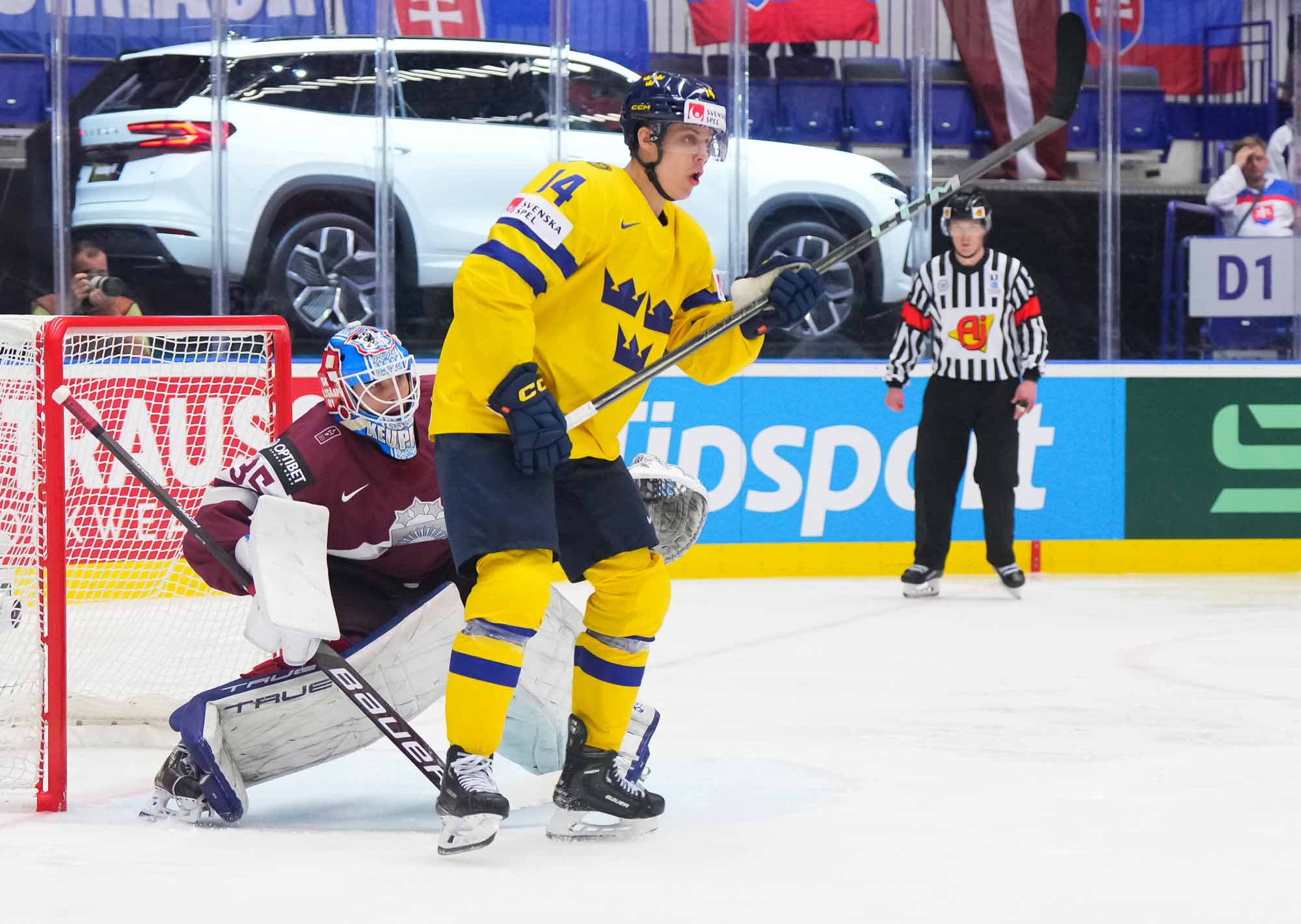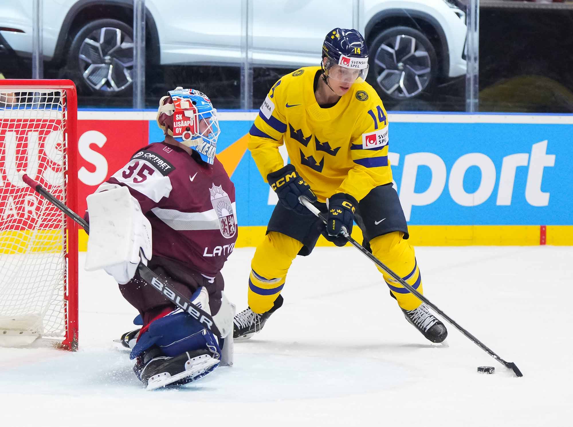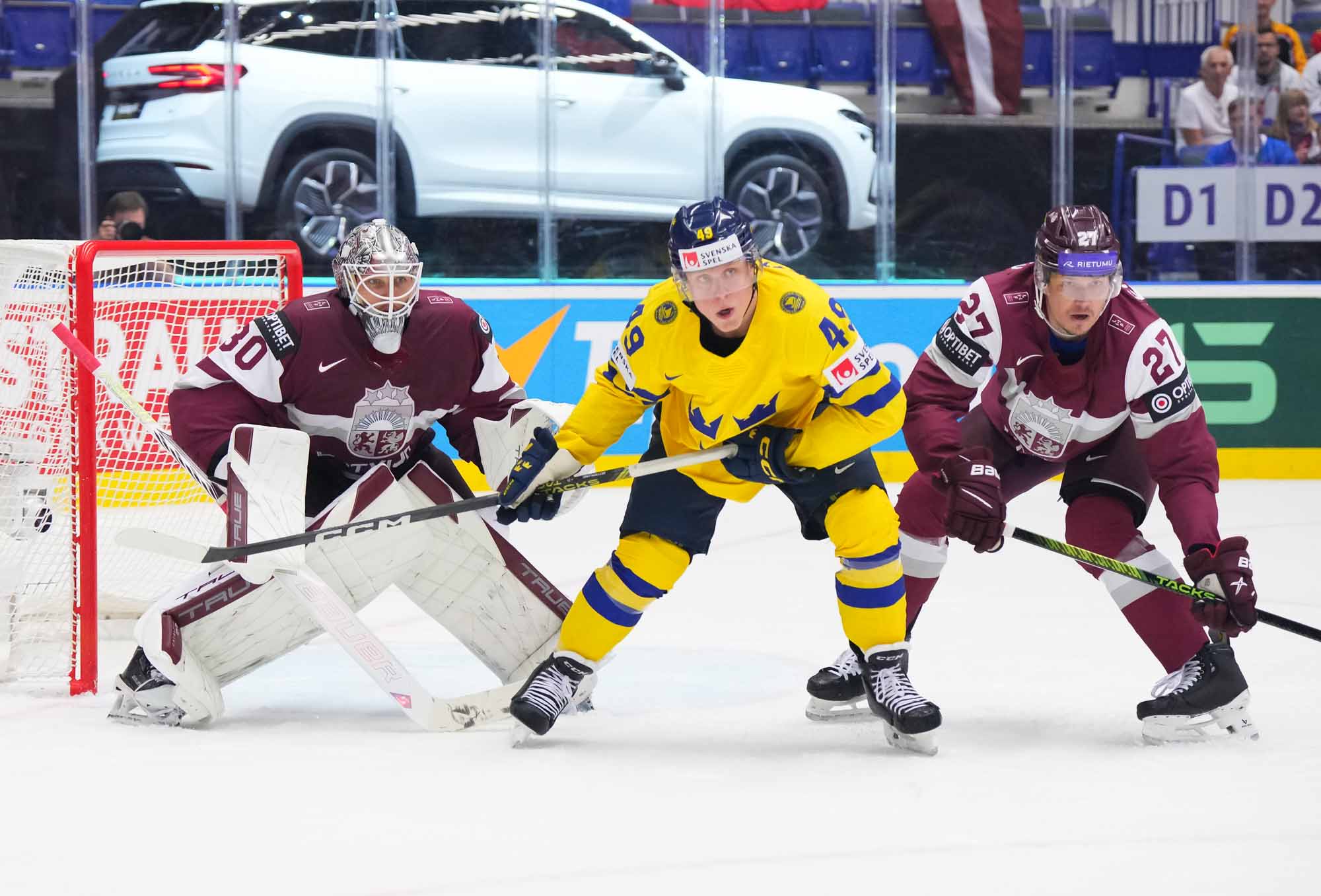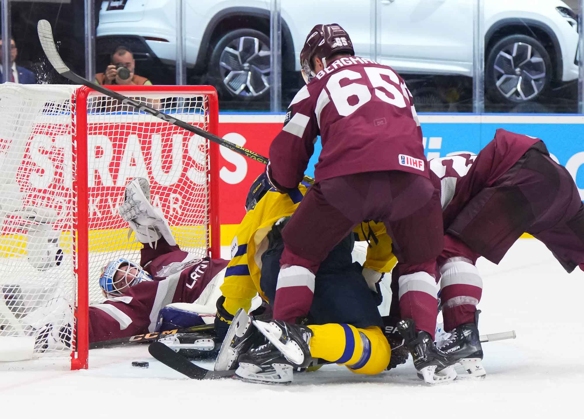 Latvia had only four shots on Filip Gustavsson in the opening period, none particularly dangerous, but the second began as if a switch had been turned on. Latvia tied the game with two goals in the first 3:17, scoring twice in a 23-second span.