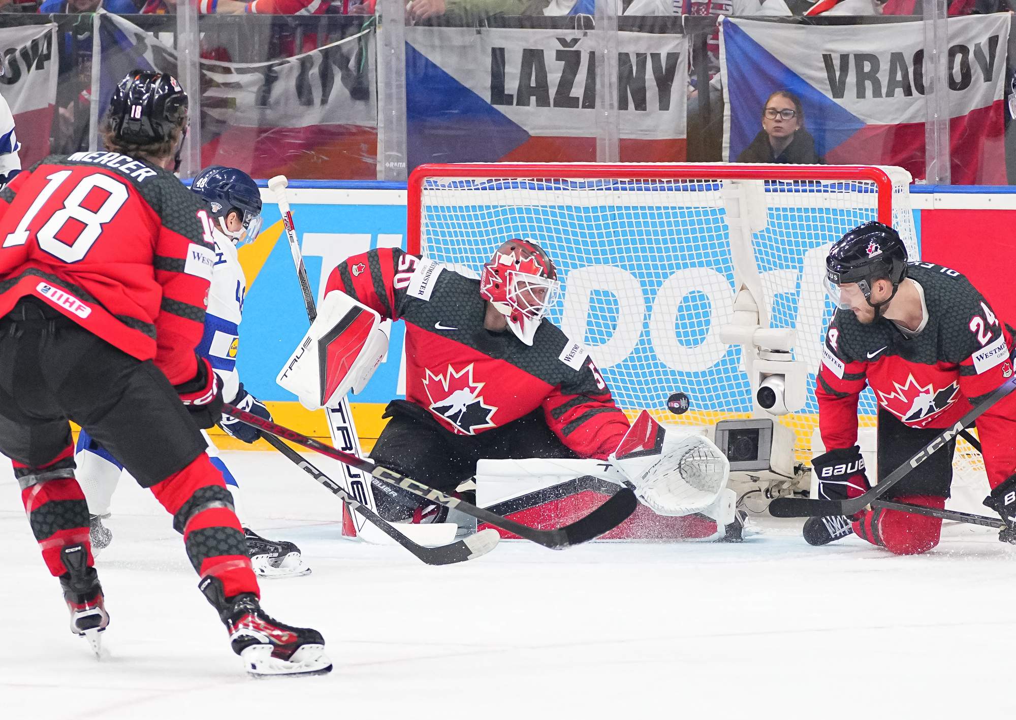 With Canada leading late, Binnington came up big to stop Hyry right in front. The Finns pulled Sateri for an extra attacker with less than two minutes remaining, but Mercer added an empty-netter to seal the deal.
