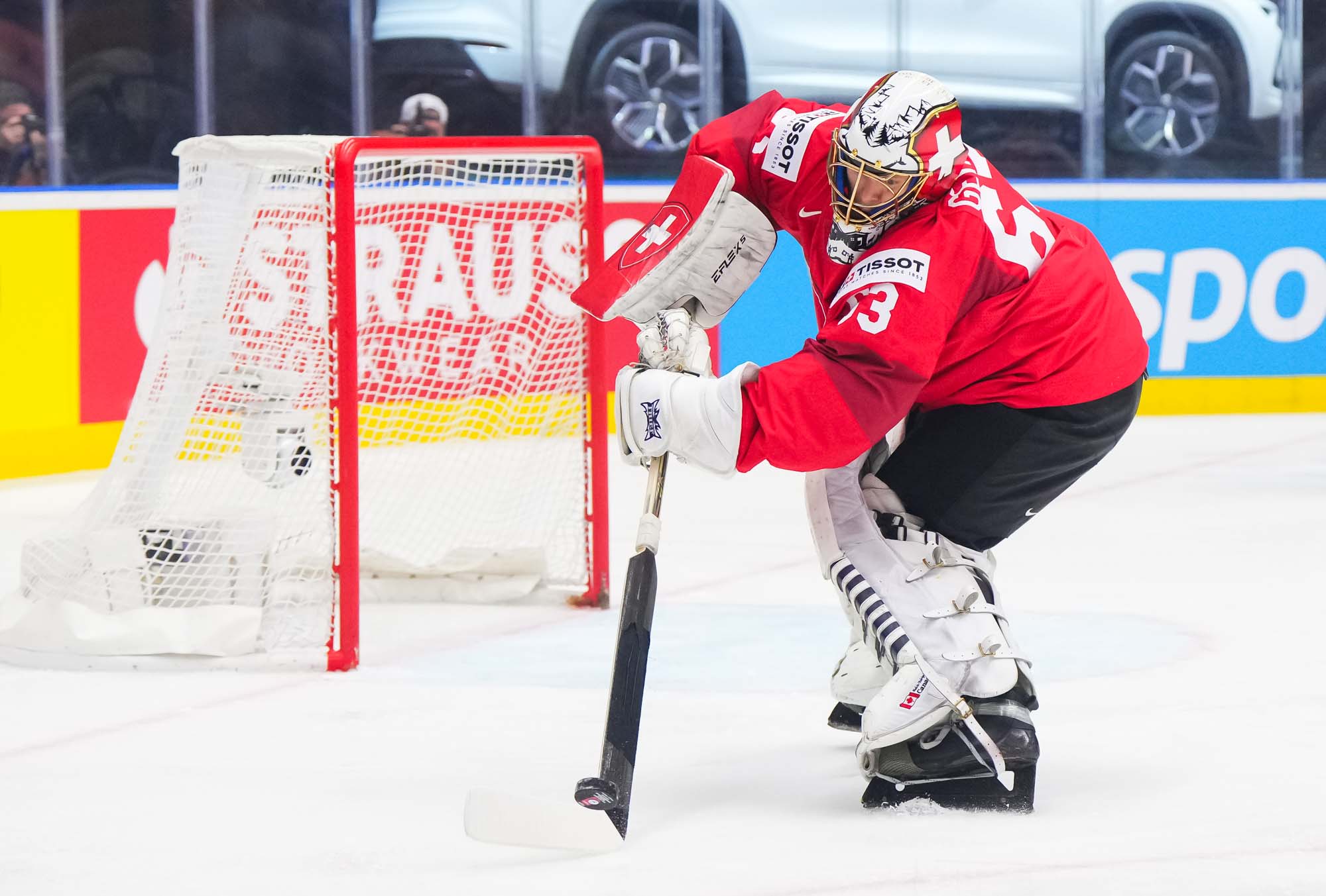 Wojciech Stachowiak won the draw cleanly back to Dominik Kahun, and he moved in and whistled a shot under Leonardo Genoni’s glove at 11:33. It was the ninth power-play goal surrendered by the Swiss, their most glaring weakness on a team that has been playing so well. However, they incurred another penalty soon after and killed it off efficiently.