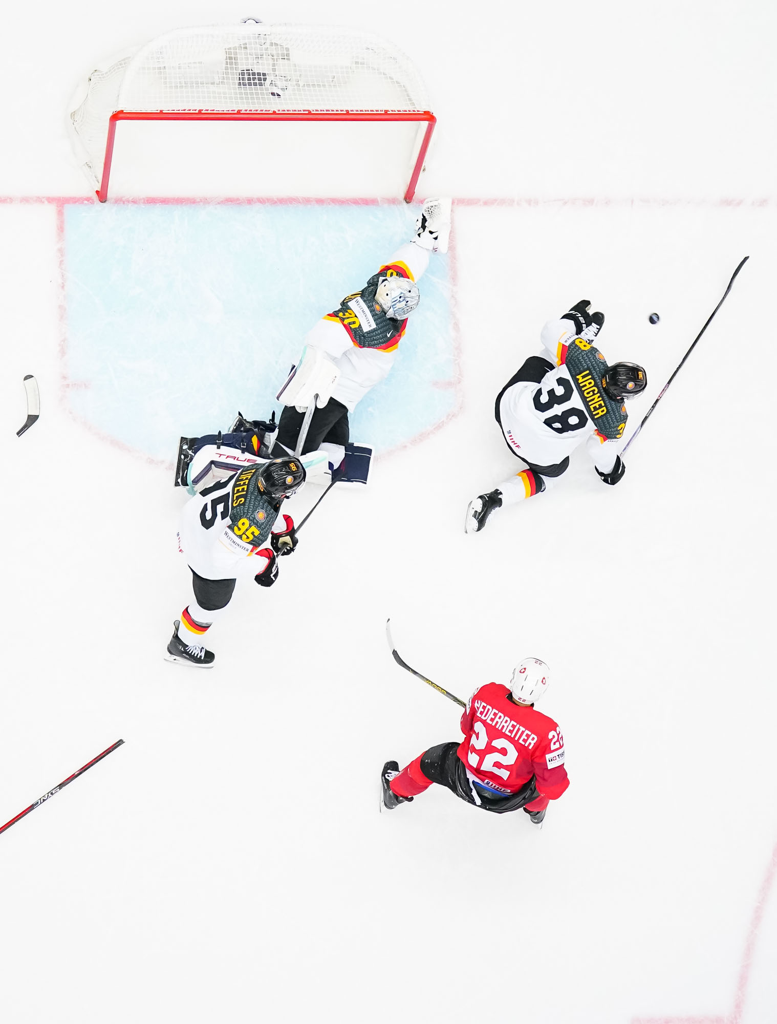 The Germans tried valiantly to tie the game, but with Grubauer on the bench for an extra attacker, Bartschy hit the empty net to seal the win.