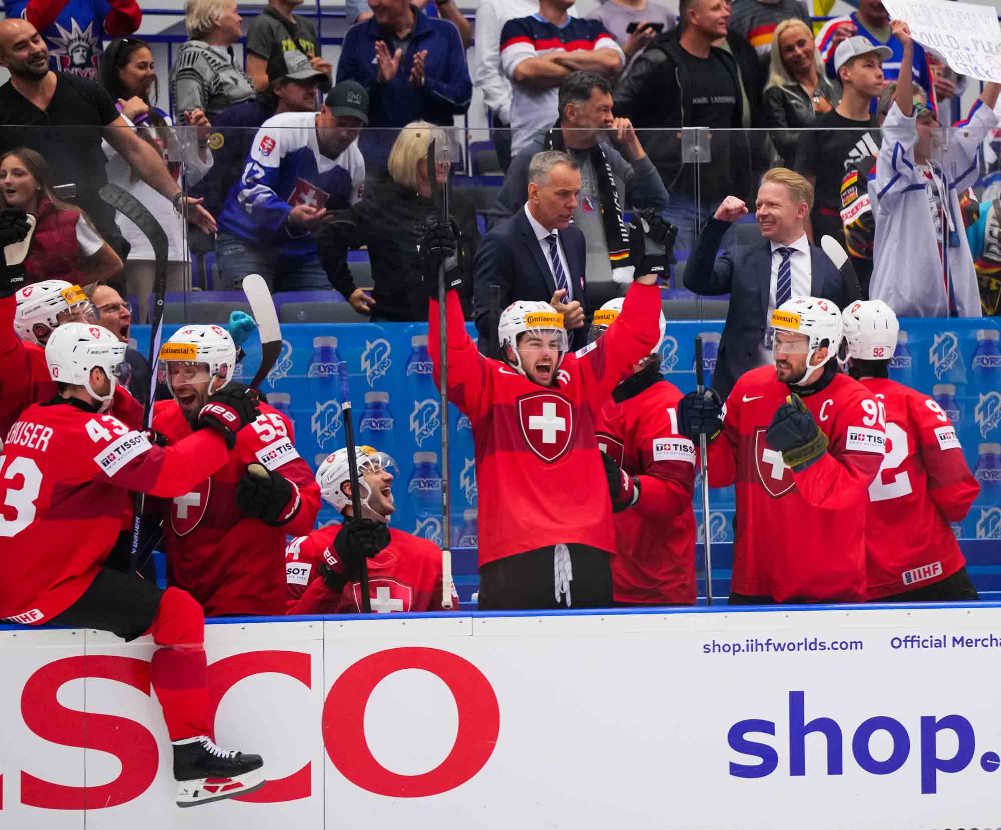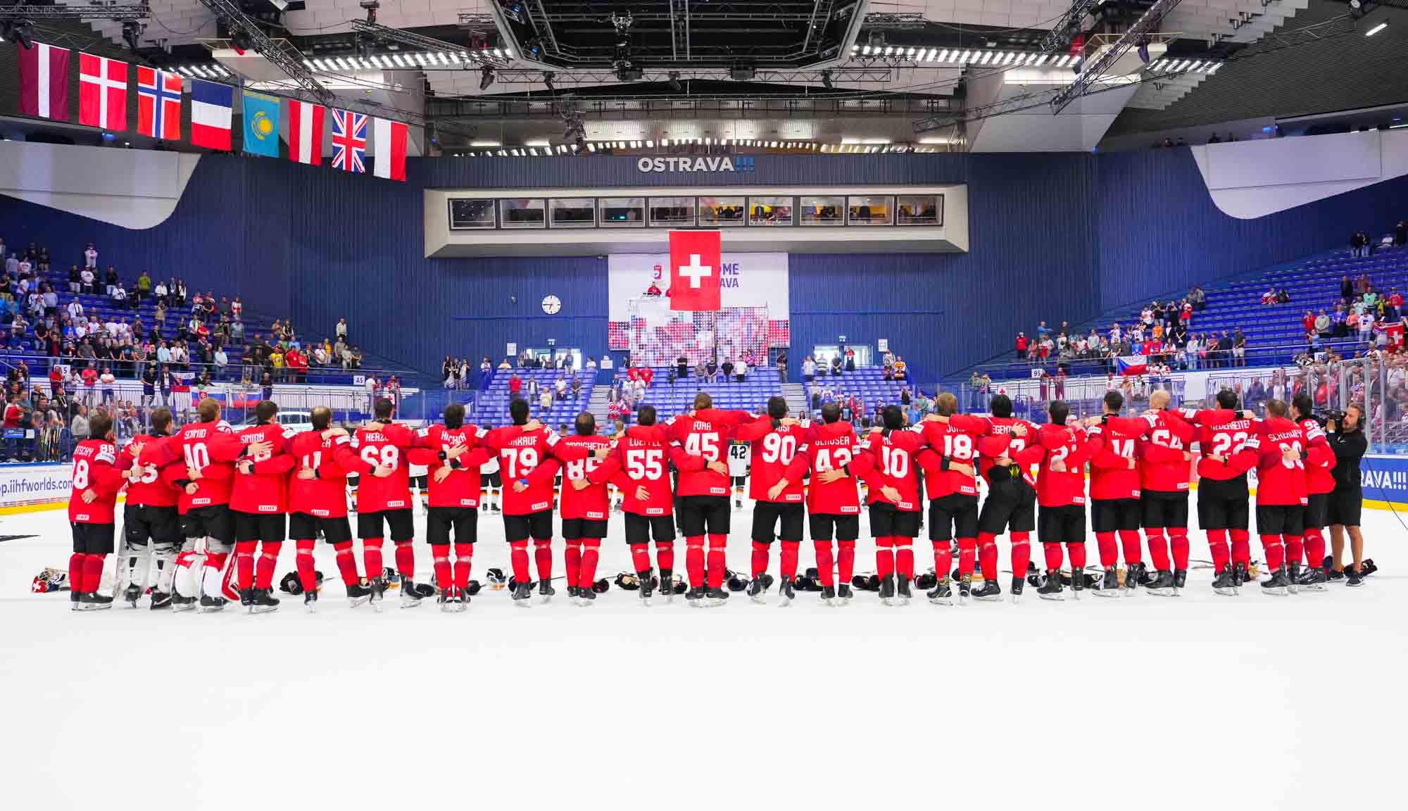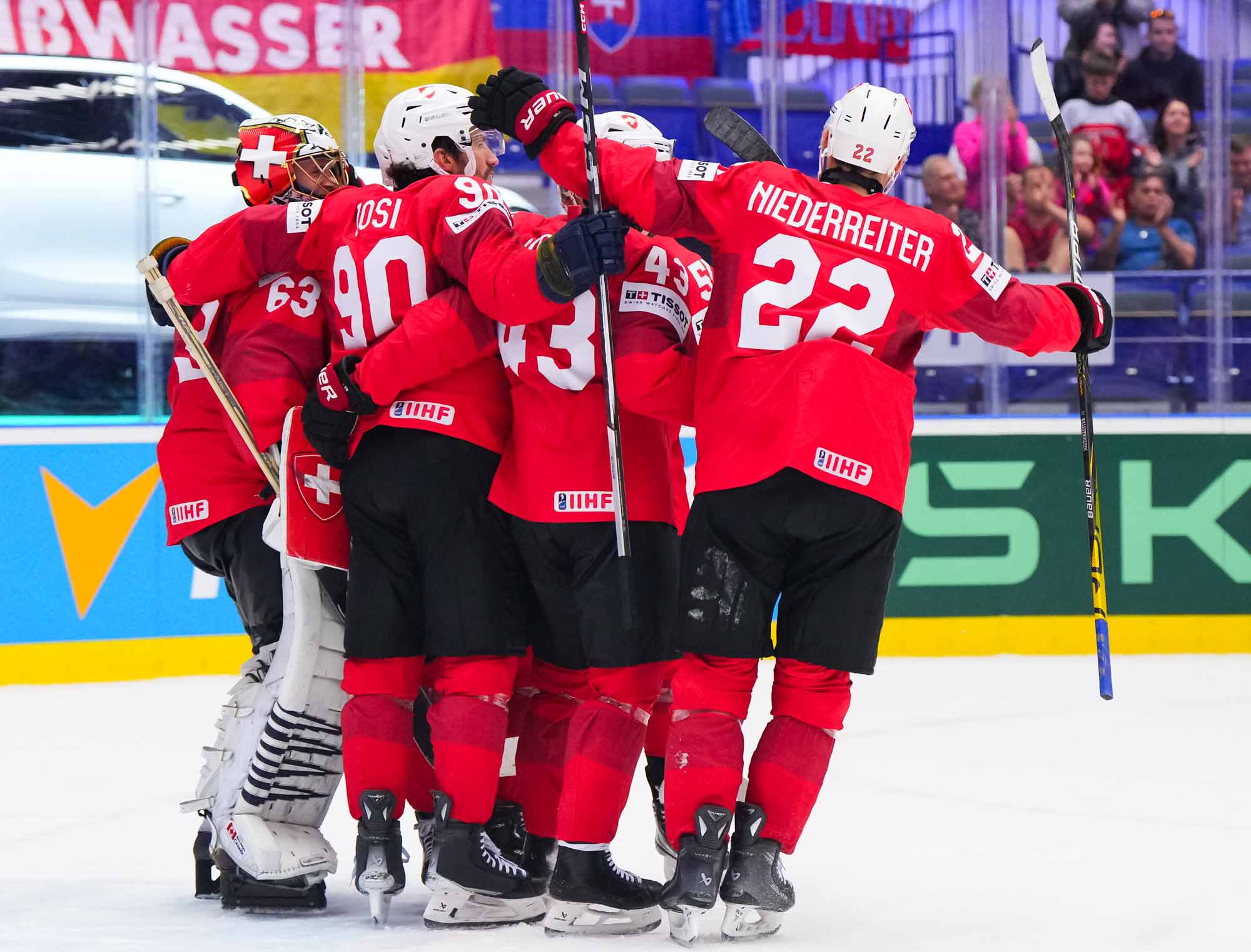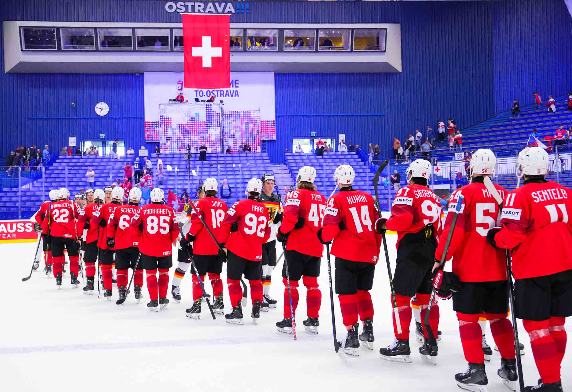 Switzerland scored twice in the opening period on their way to a solid, hard-fought 3-1 win over Germany in quarter-final action today in Ostrava. The win guarantees Swiss participation in a medal game—the only question is, which one? They’ll have to wait until later tonight to find out who will be their semi-finals opponent on Saturday in Prague.