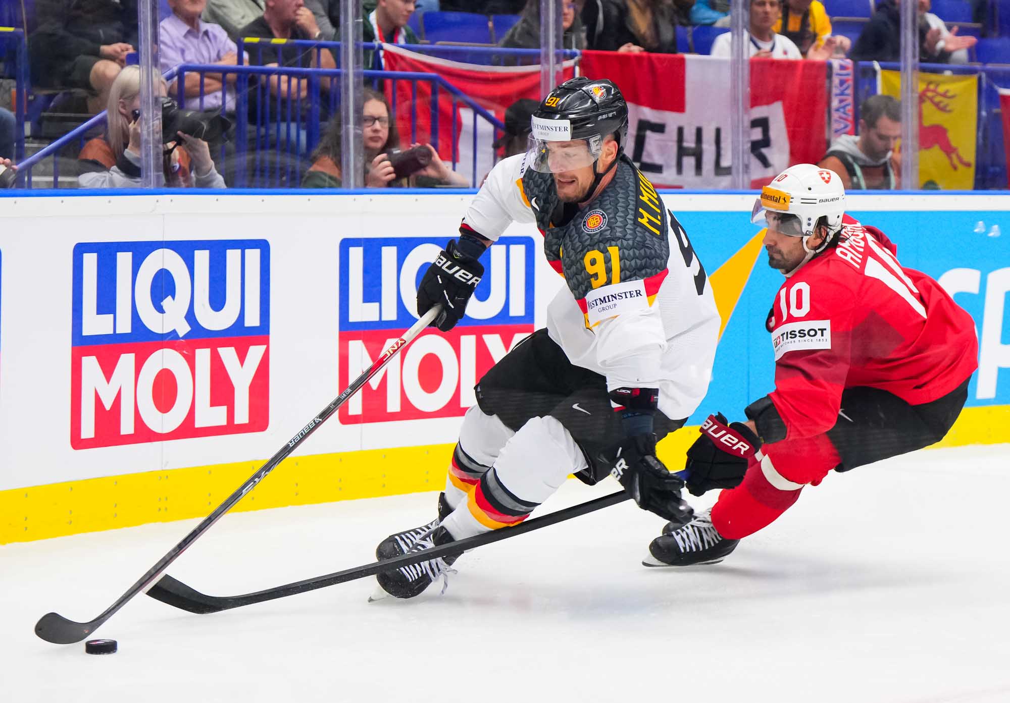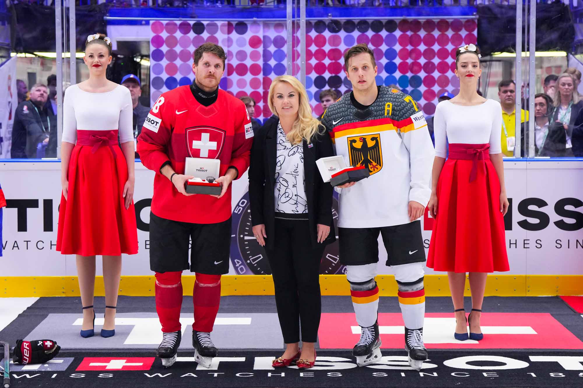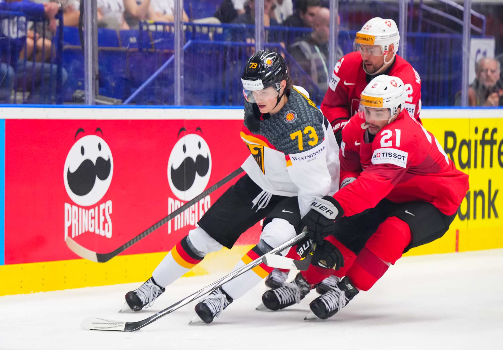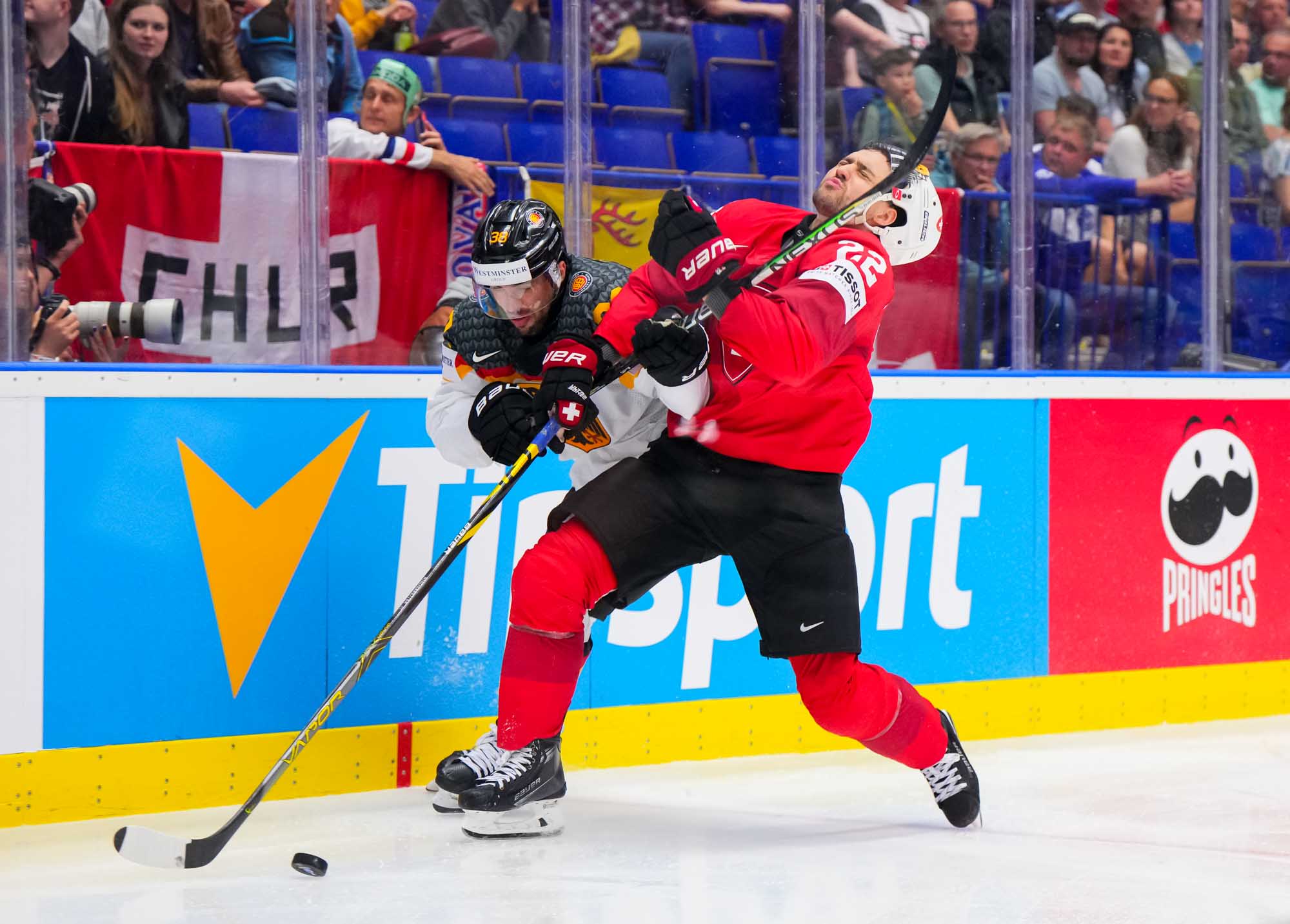 Switzerland scored twice in the opening period on their way to a solid, hard-fought 3-1 win over Germany in quarter-final action today in Ostrava. The win guarantees Swiss participation in a medal game—the only question is, which one? They’ll have to wait until later tonight to find out who will be their semi-finals opponent on Saturday in Prague.