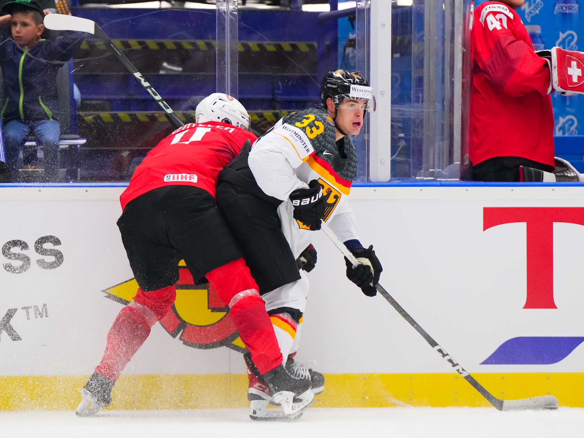 The Swiss were rolling along nicely in the second, content with their two-goal lead and preventing Germany from doing much about it. But a hit in centre ice changed things. Andrea Glauser took a tripping penalty (after video review, which ruled a major was not required) and four seconds after the faceoff, it was 2-1.