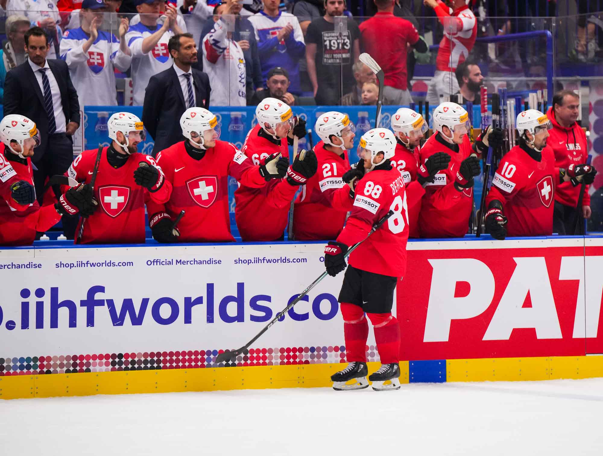 They extended their lead late in the period on a fortuitous bounce which saw the puck come to Nico Hischier to the back side of the play. From a bit of an angle, Hischier snapped a shot into the open side at 16:28, giving the Swiss just the start they needed.