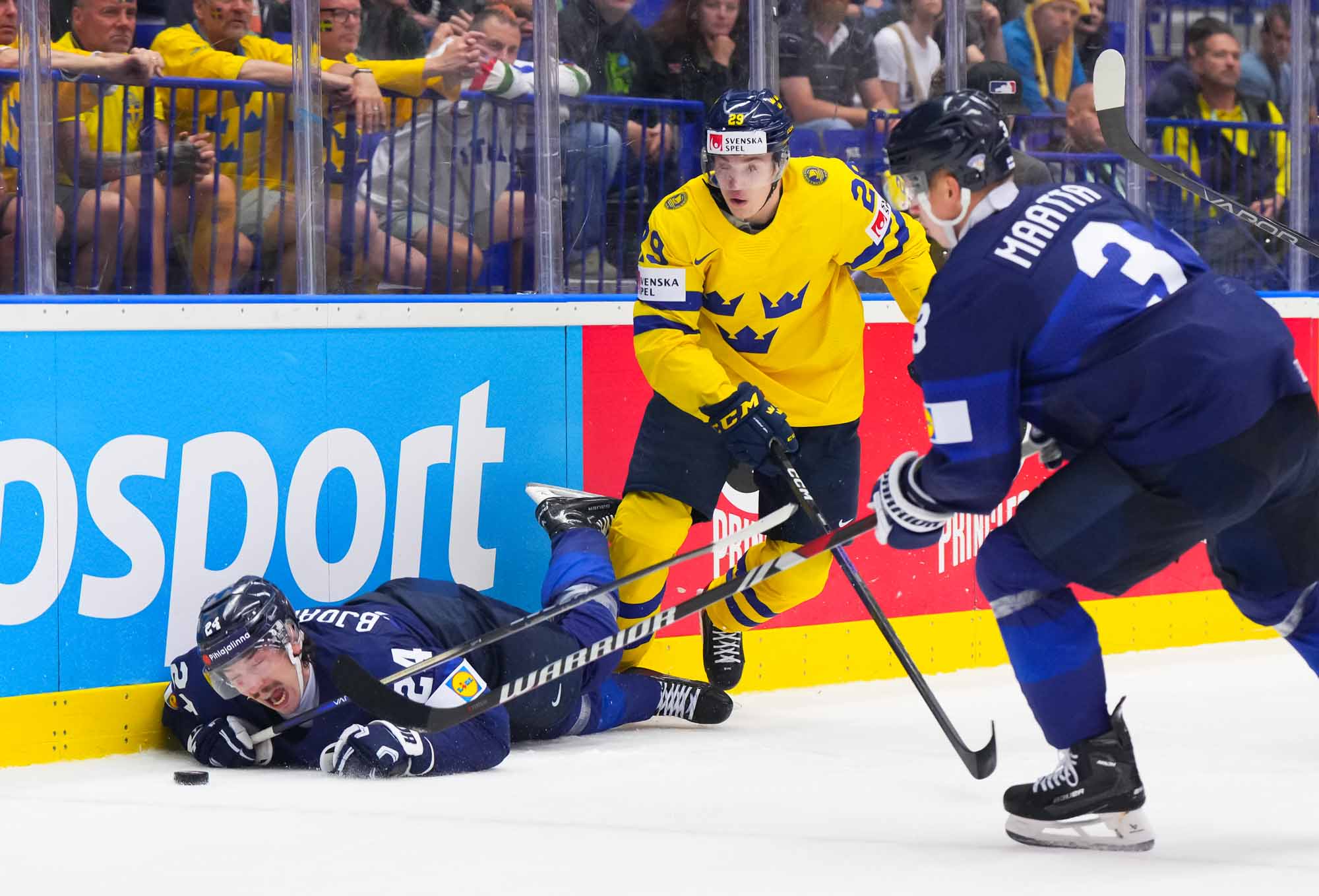 Sweden outshot Finland 32-19 through three periods but needed an overtime goal by Joel Eriksson Ek to knock off the Finns 2-1 and move on to the semi-finals against host Czechia.
