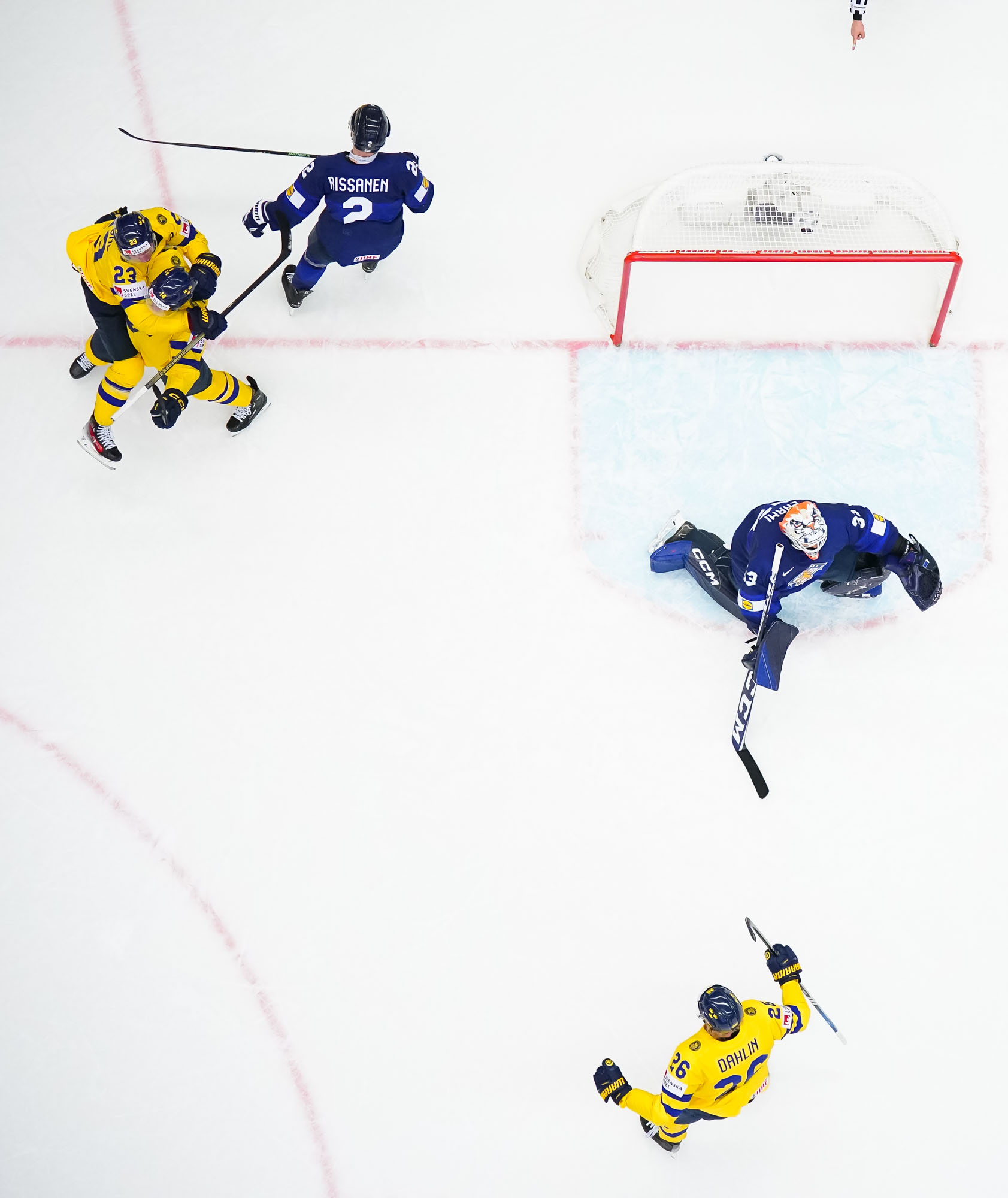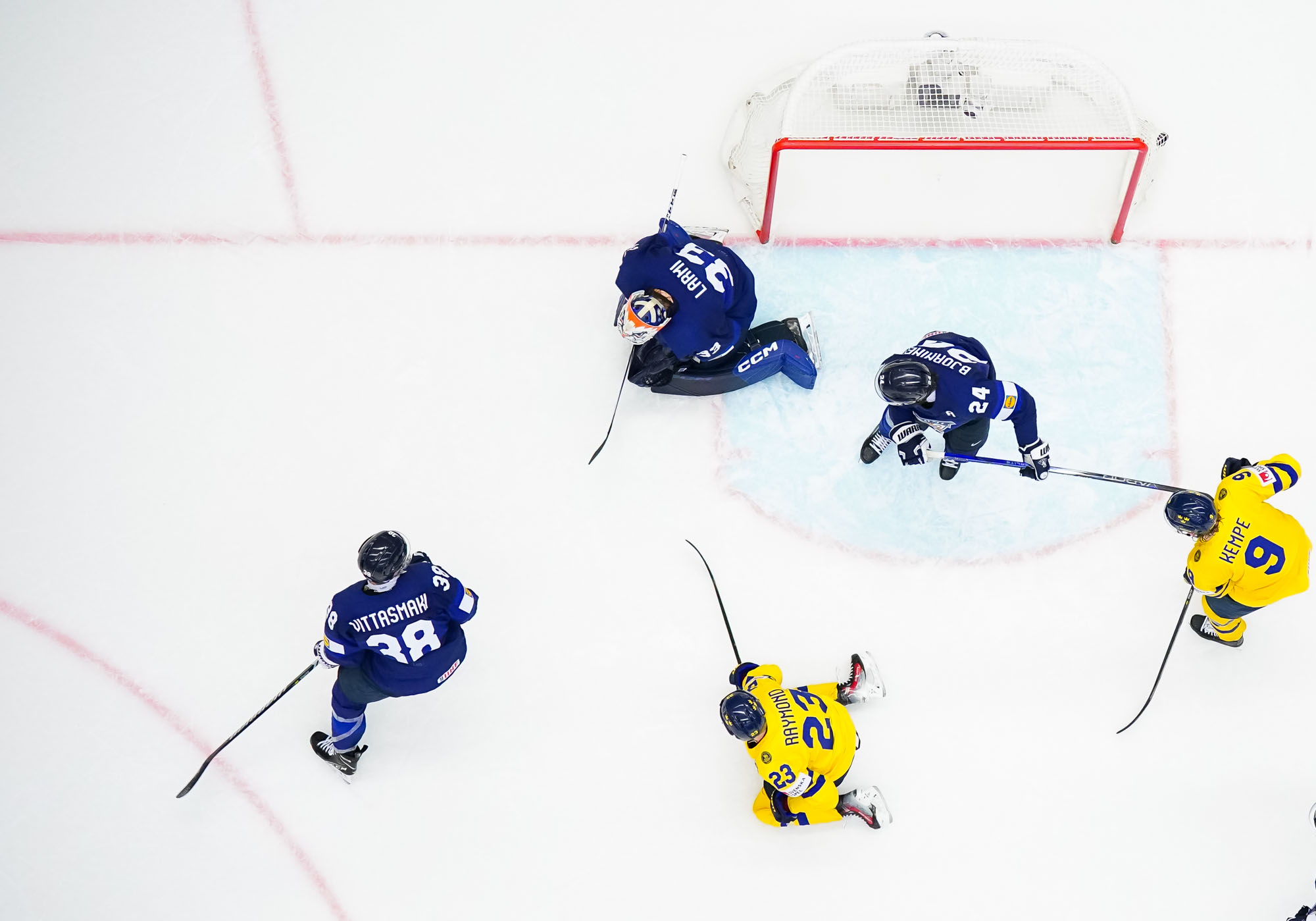 Earlier in the third, Sweden got its third powerplay of the game six minutes in when Bjorninen was sent off for high-sticking. But the Finns did what they’ve done all tournament (up until overtime, that is), getting in passing and shooting lanes and not allowing the puck to get through on their goaltender. Kempe had the best chance at the side of the net but Larmi stopped that one to give Finland its 15th-straight penalty kill of the tournament.