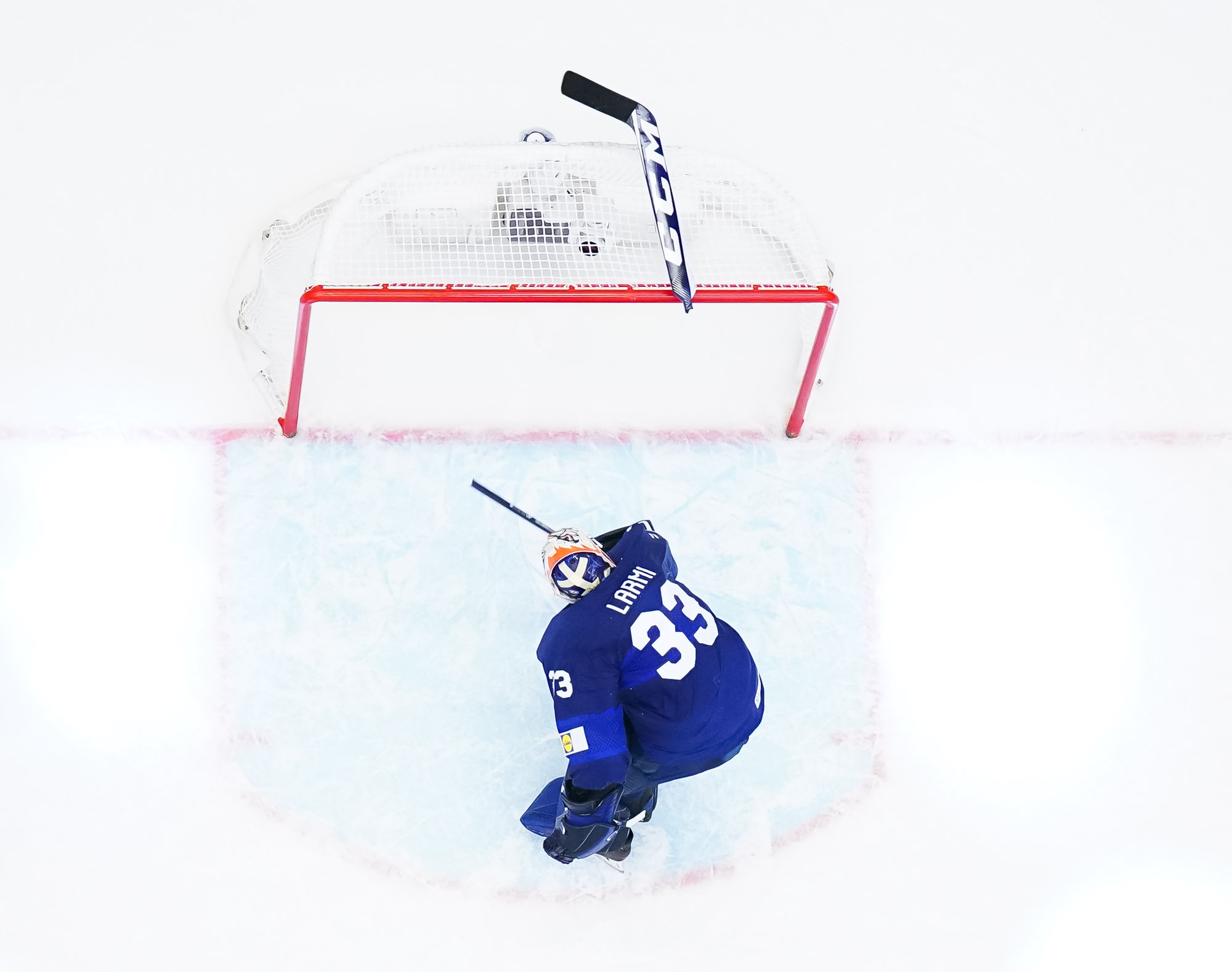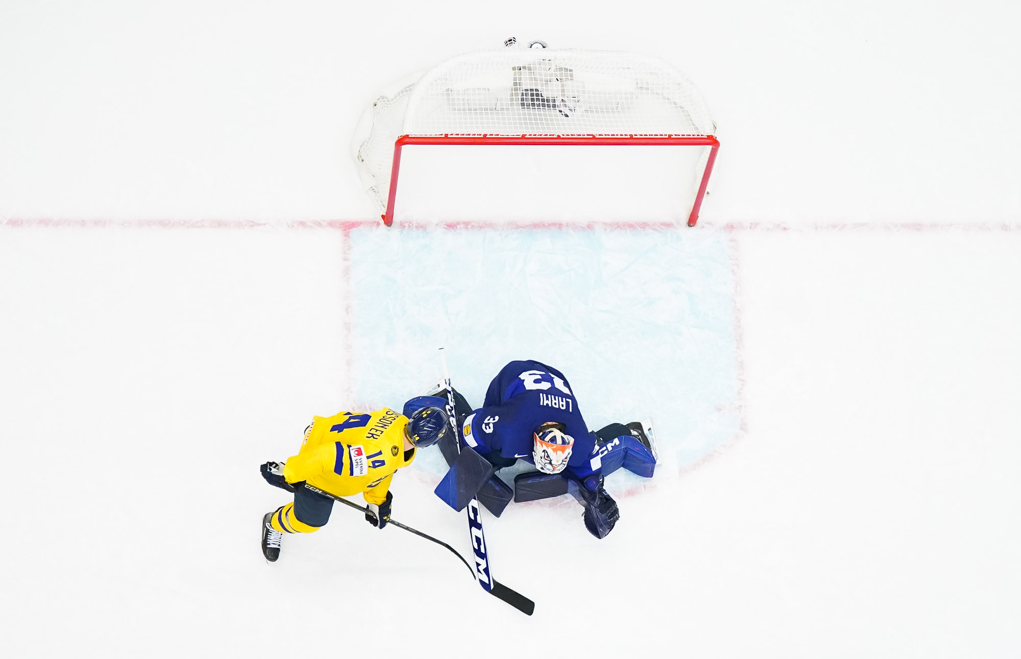 Around the seven-minute mark of the second, Sweden forced a Finnish turnover in its end and Lucas Raymond sent a pass to an open Isac Lundestrom, who deflected the puck only to see Larmi kick out his right leg and make a tremendous save.