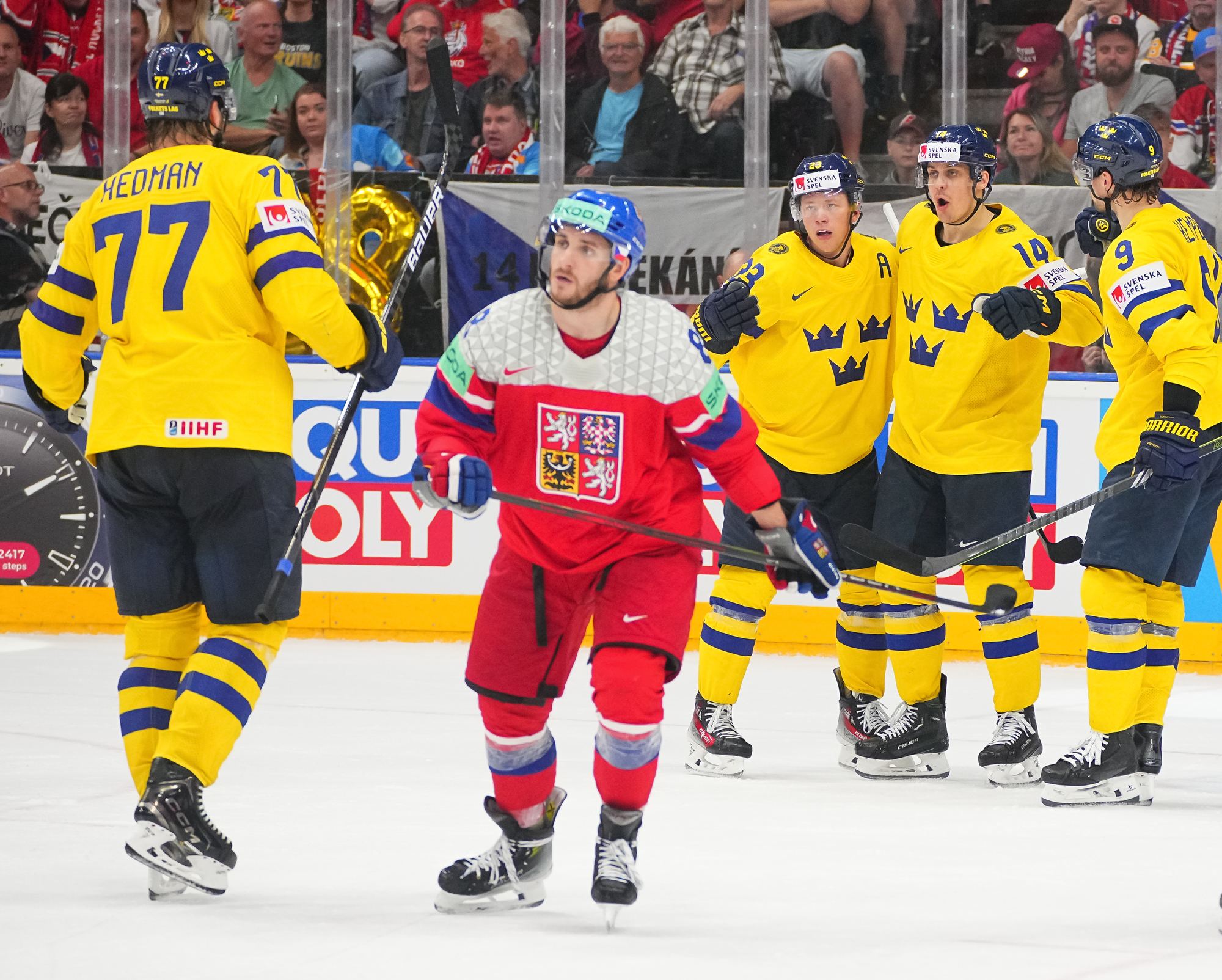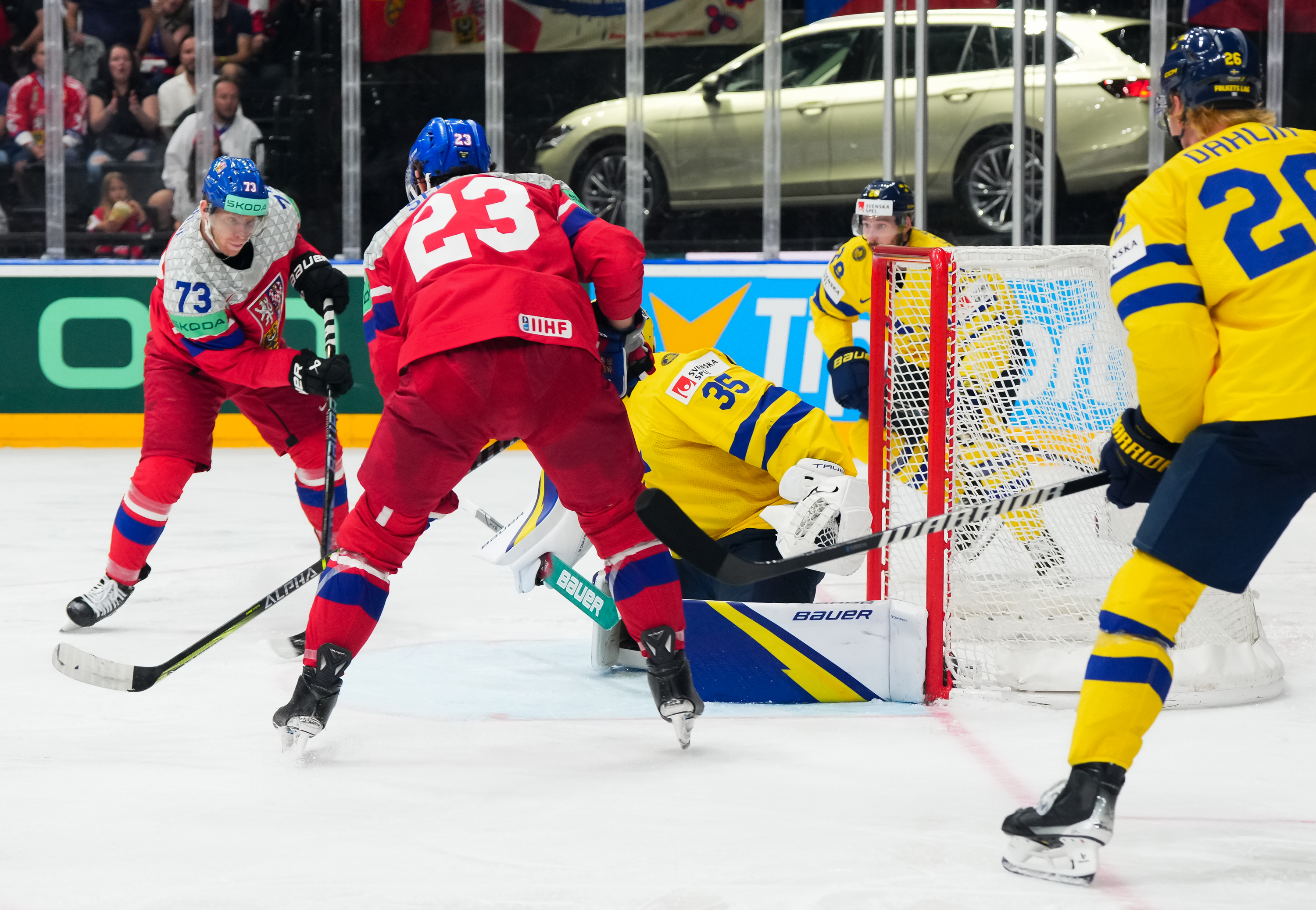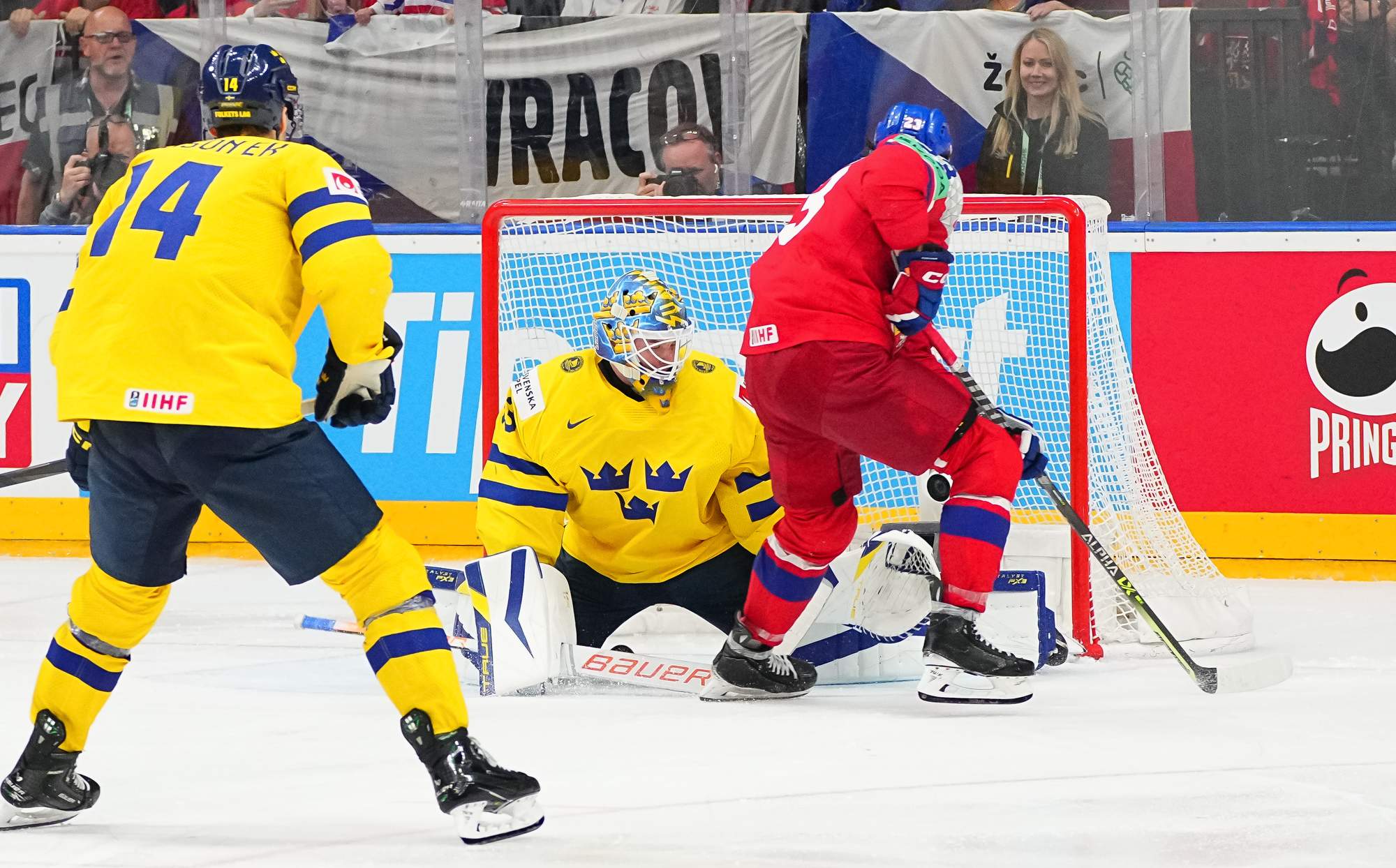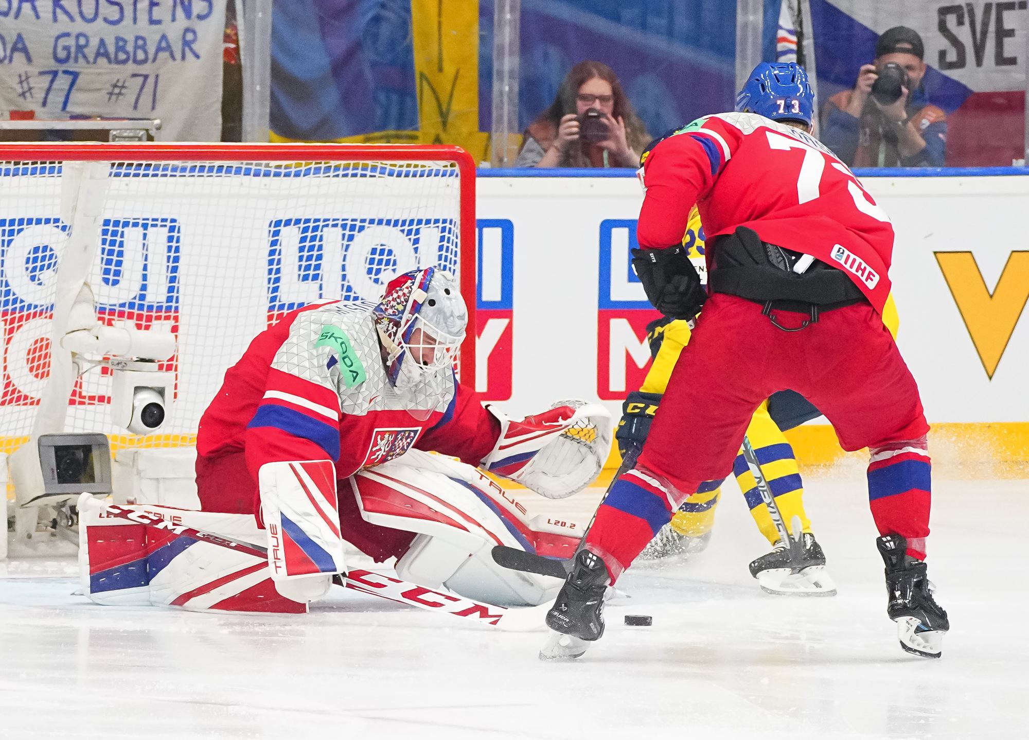 Sedlak’s first goal, which came five minutes into the third, was Czechia’s sixth of the game, the most it has scored against Sweden in a Worlds game in post-Czechoslovakia history. The Czechs scored five goals in a 6-5 shootout loss to Sweden in 2015 and in a 5-2 win over the Swedes in 2019.