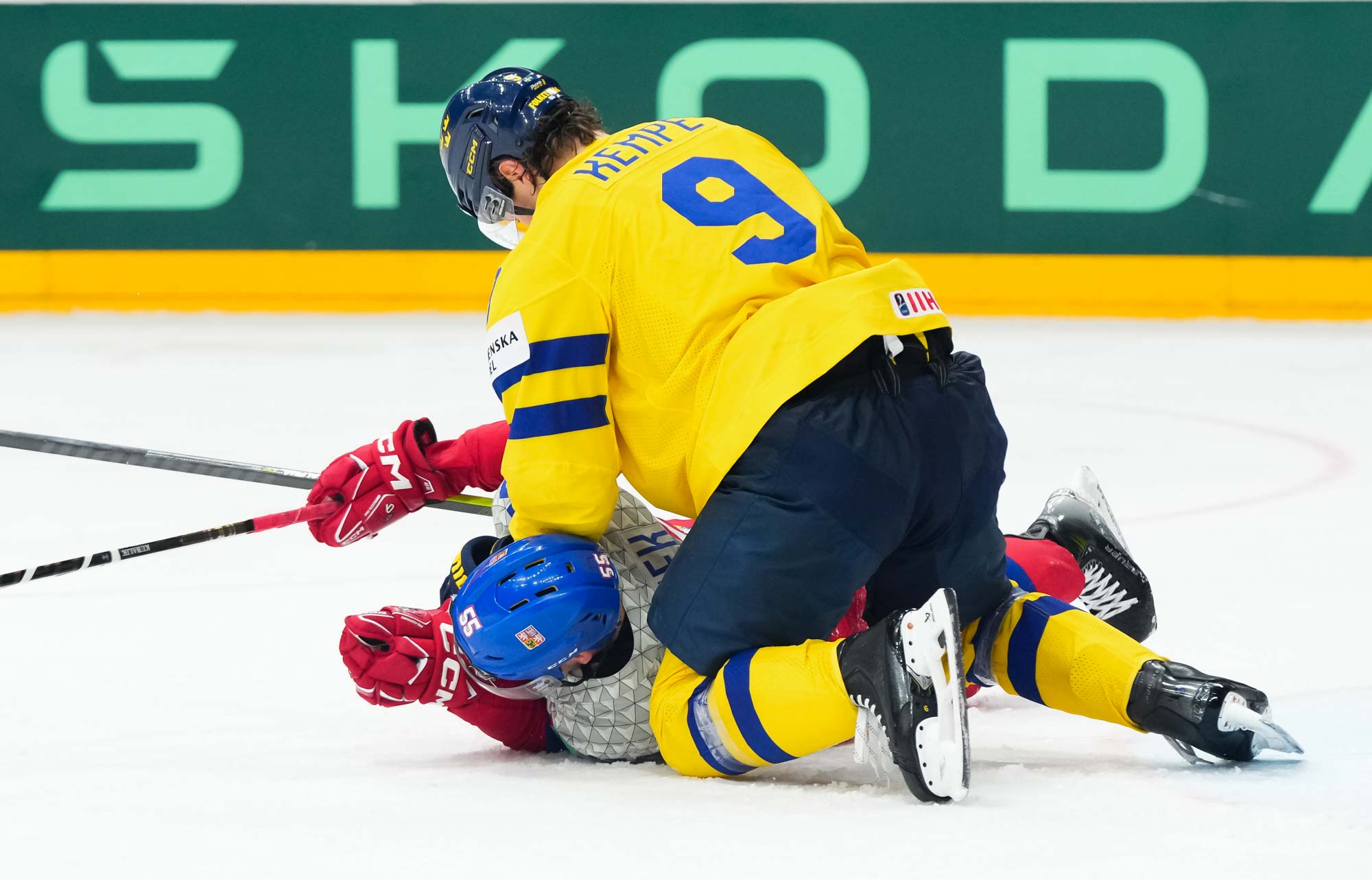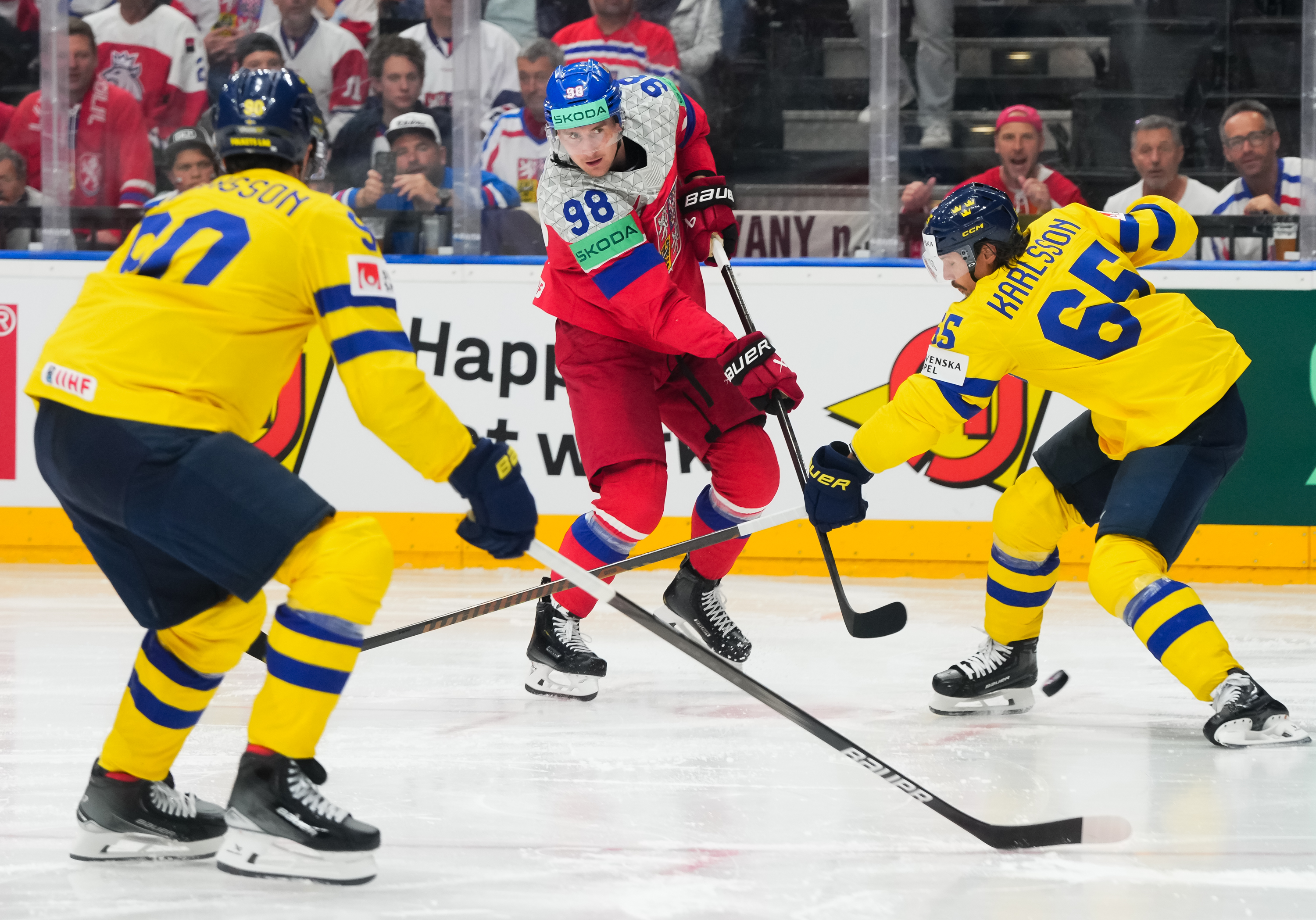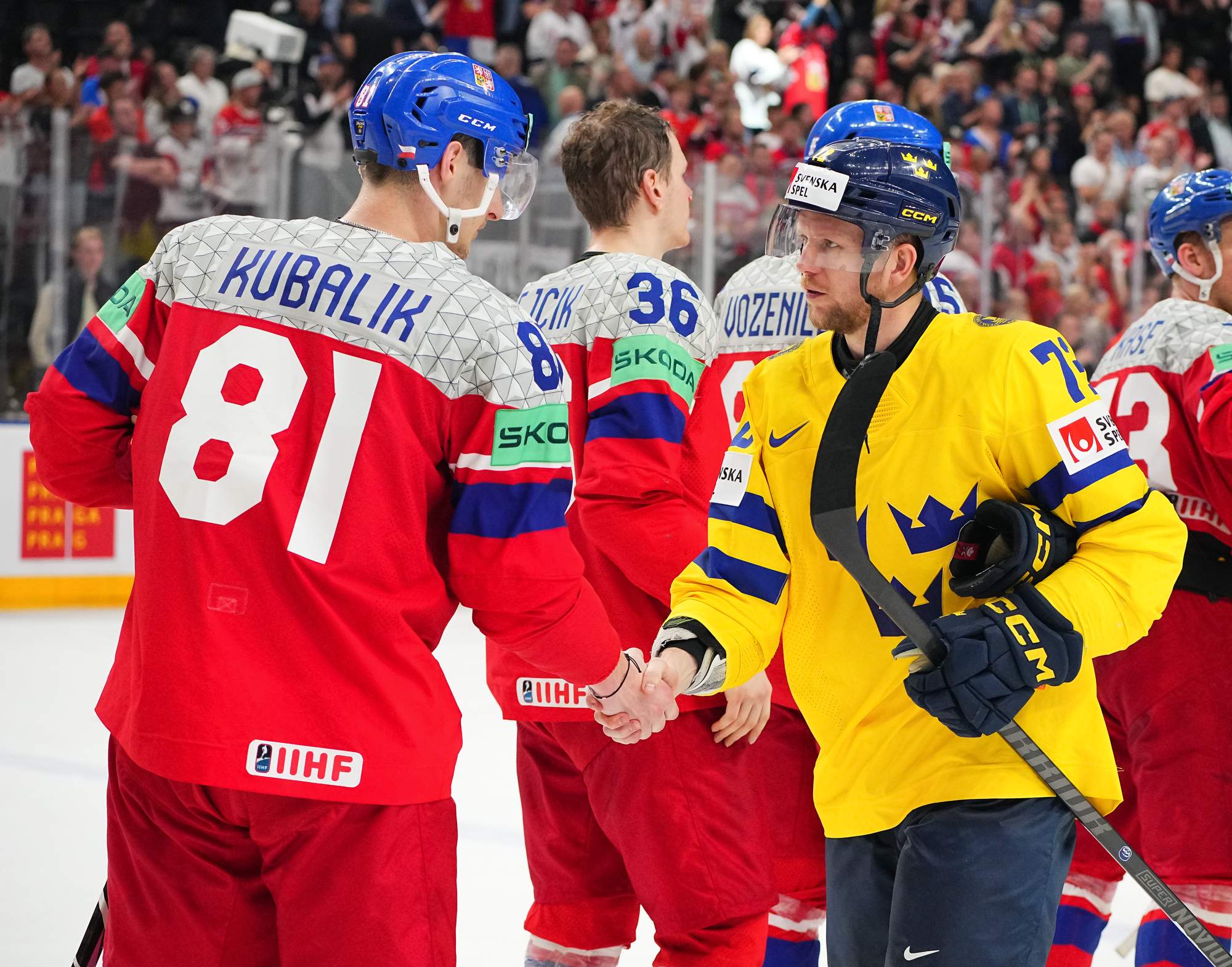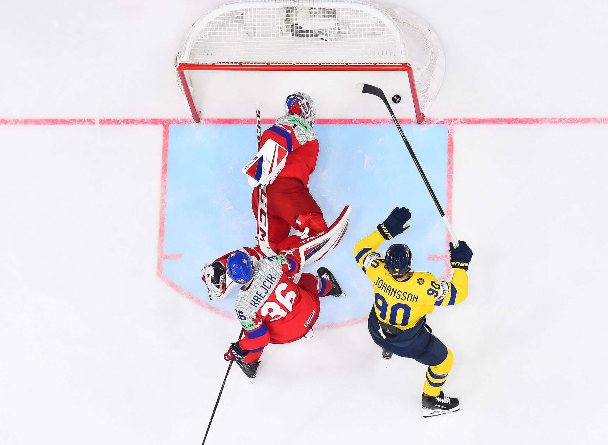Sedlak’s first goal, which came five minutes into the third, was Czechia’s sixth of the game, the most it has scored against Sweden in a Worlds game in post-Czechoslovakia history. The Czechs scored five goals in a 6-5 shootout loss to Sweden in 2015 and in a 5-2 win over the Swedes in 2019.