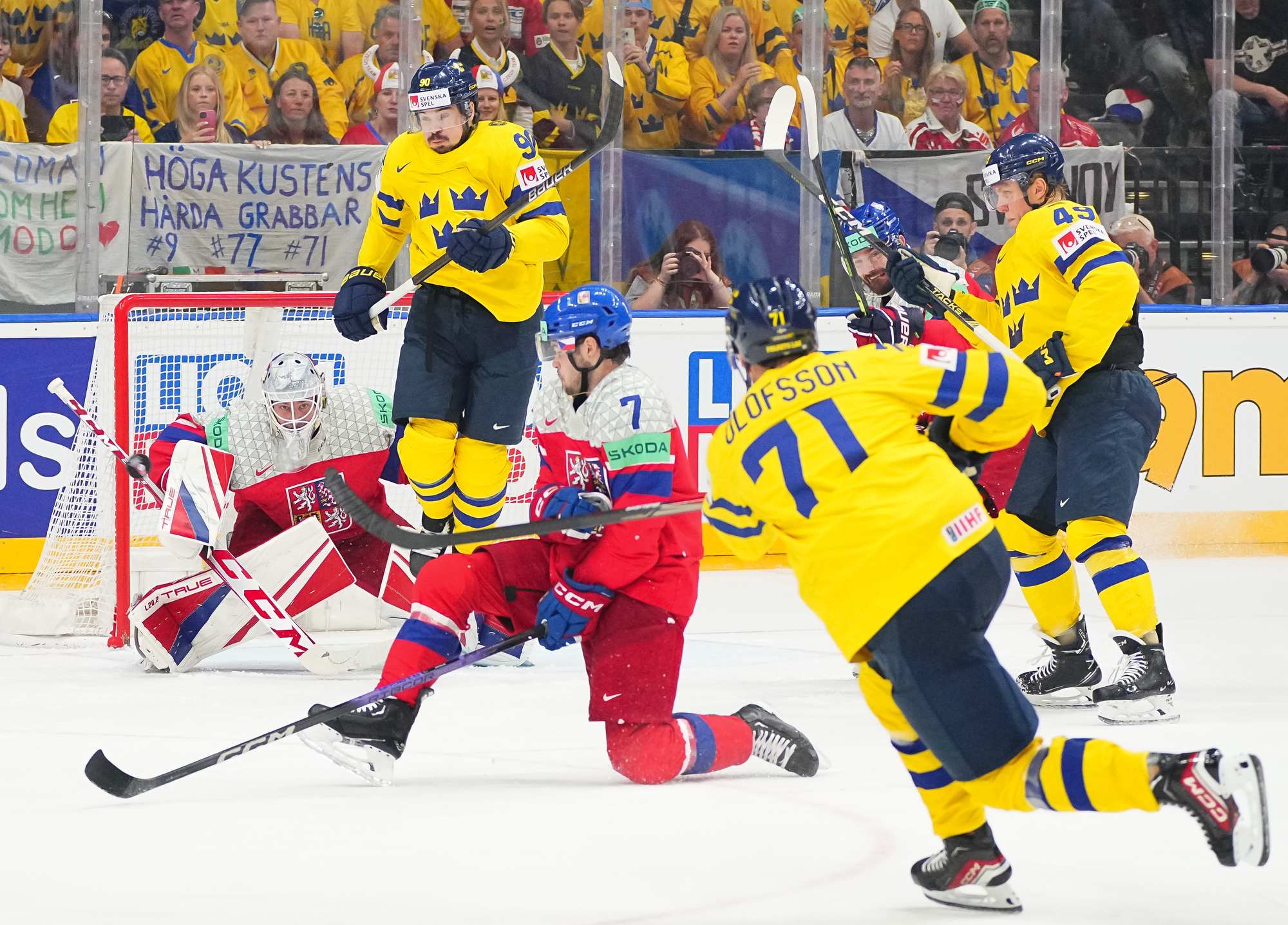 Through eight games, including a 2-1 win over Finland in the quarter-final, the Swedes hadn’t trailed. And in the first period in its semi-final against Czechia on Saturday, the streak continued for one more period as the two teams were tied 2-2 after 20 minutes.