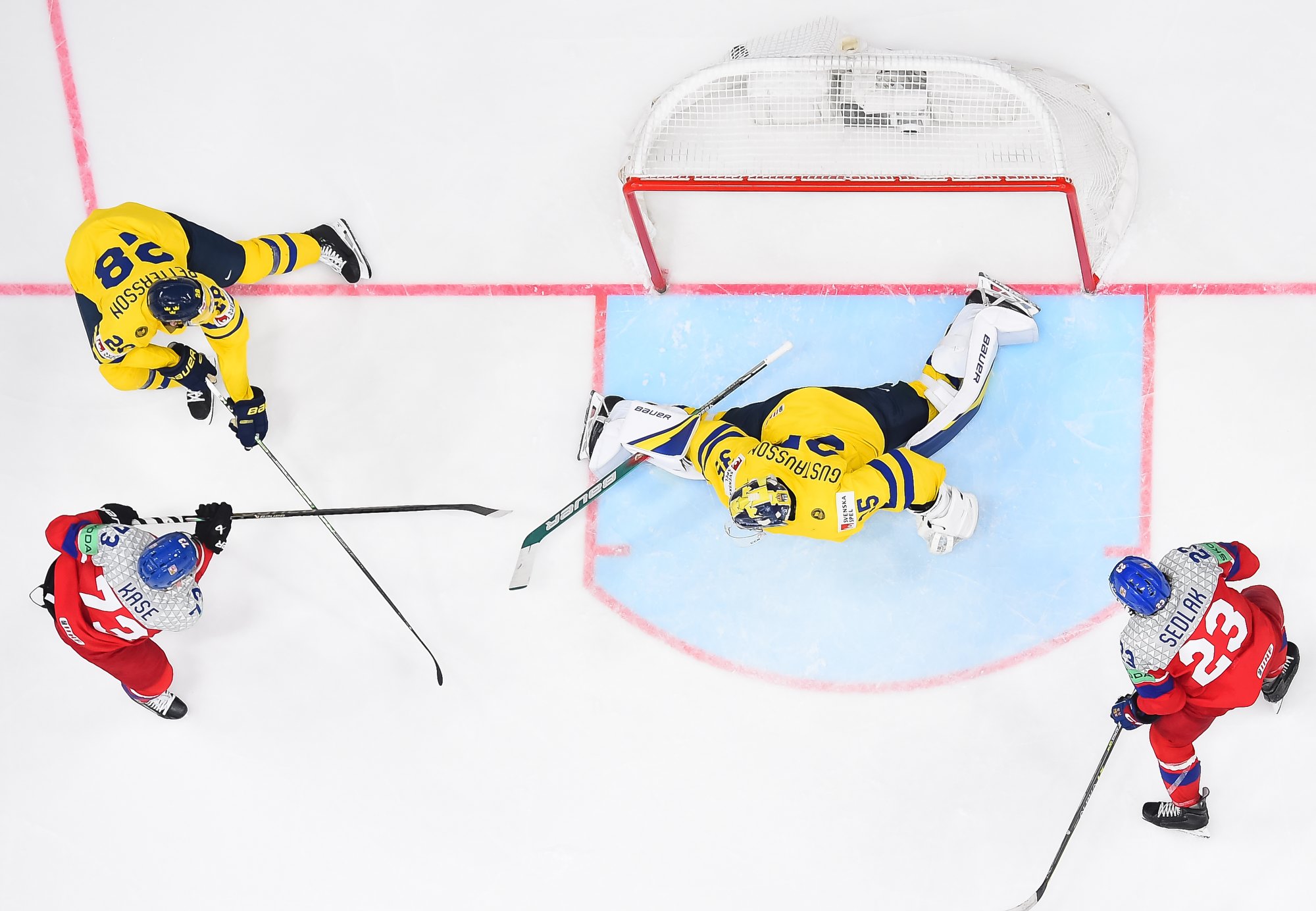 Ondrej Kase’s goal at 6:05 of the second period broke a 2-2 tie and Czechia made it 4-2 when Necas scored his first of the tournament after a quick shot off a faceoff win. Kubalik’s second of the game at 9:03 made it 5-2 Czechia and prompted Sweden head coach Sam Hallam to make the goaltending change, with Samuel Ersson replacing Gustavsson, who allowed five goals on 17 shots.