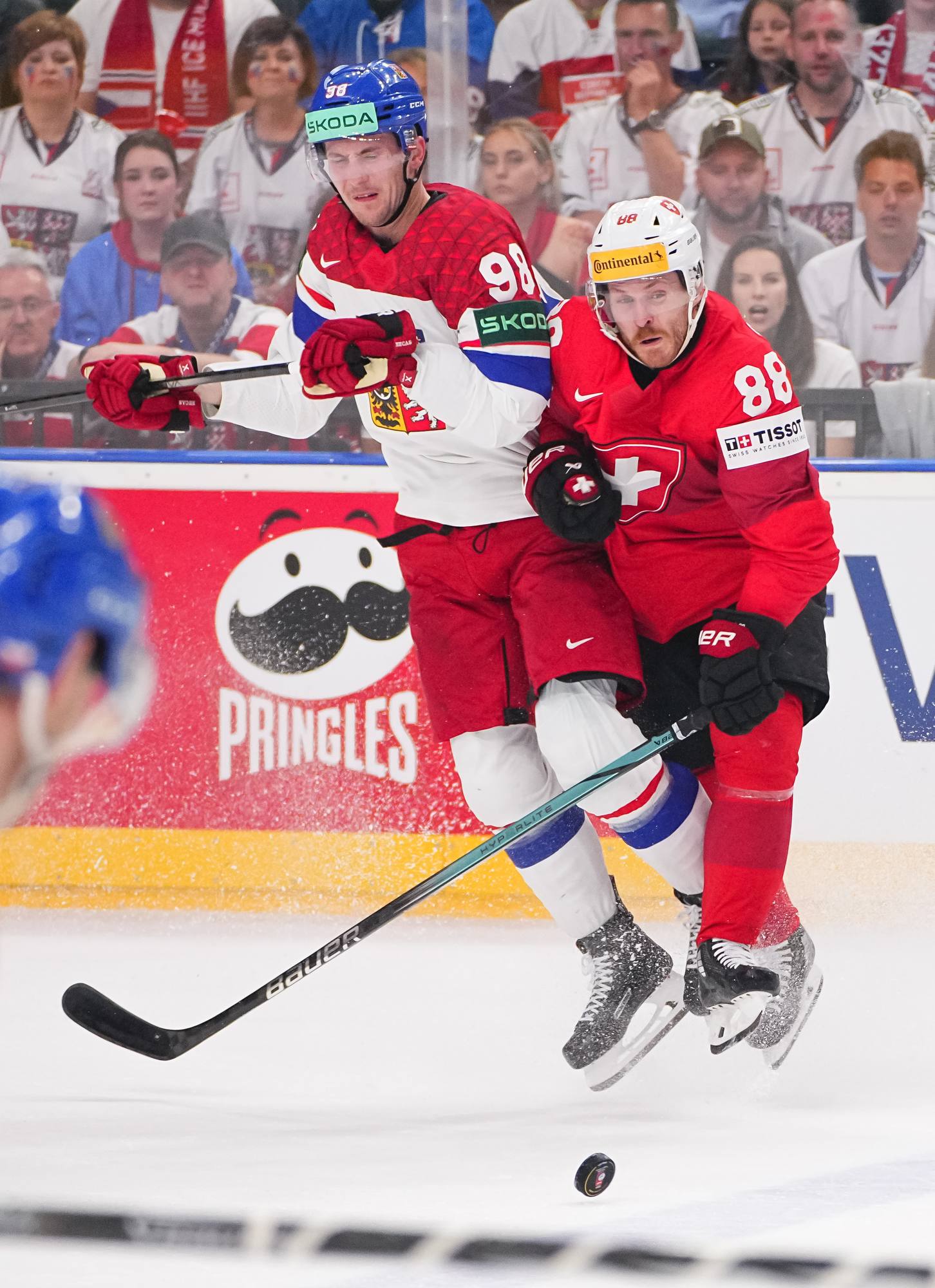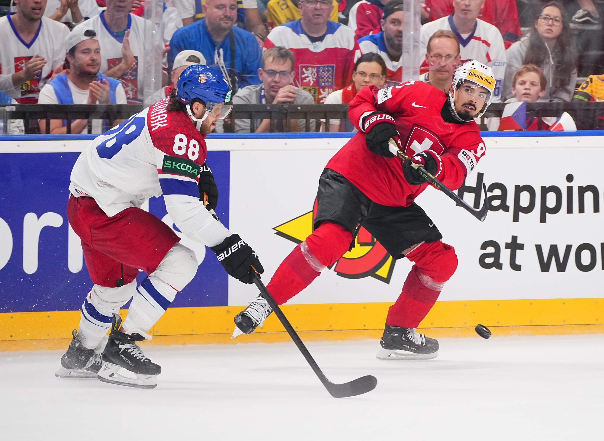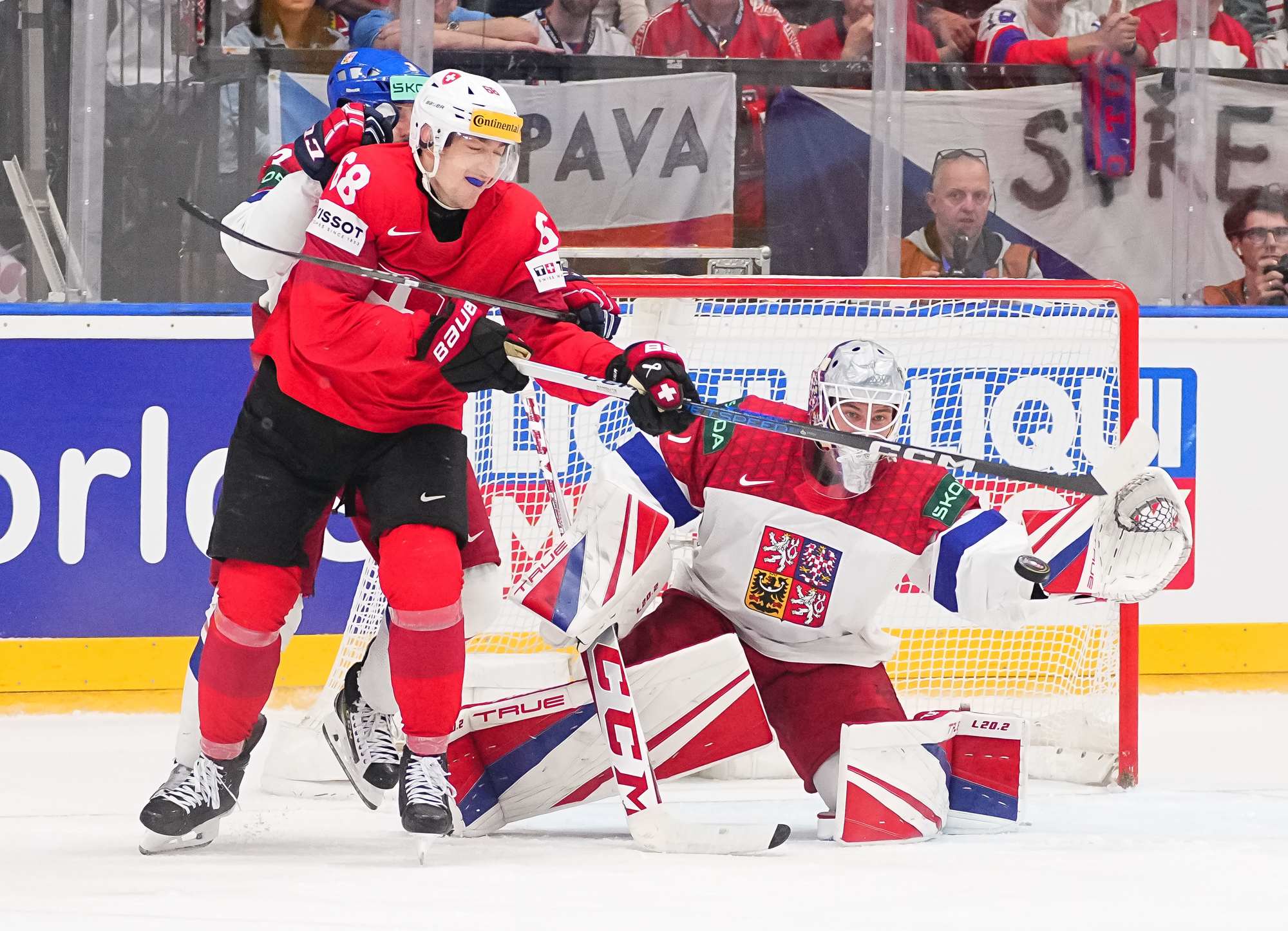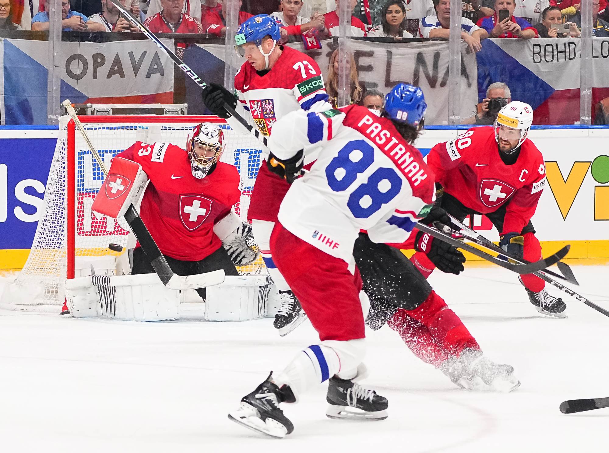 Just before the halfway point, Swiss rearguard Michael Fora went off for holding Palat behind Genoni's net. Yet the Swiss goalie frustrated both Pastrnak and Martin Necas on power-play one-timers. Switzerland's penalty kill has been surprisingly weak, ranking 15th out of 16 teams prior to the final, but delivered here.