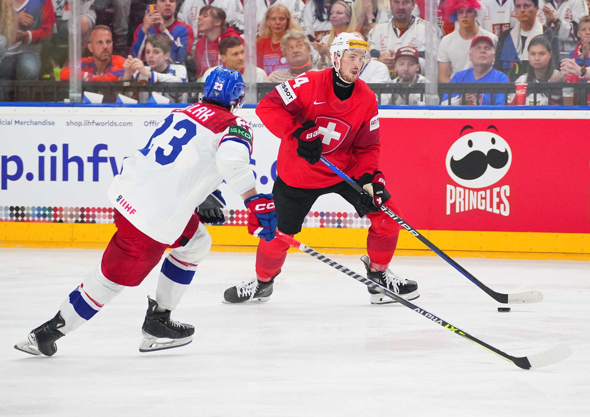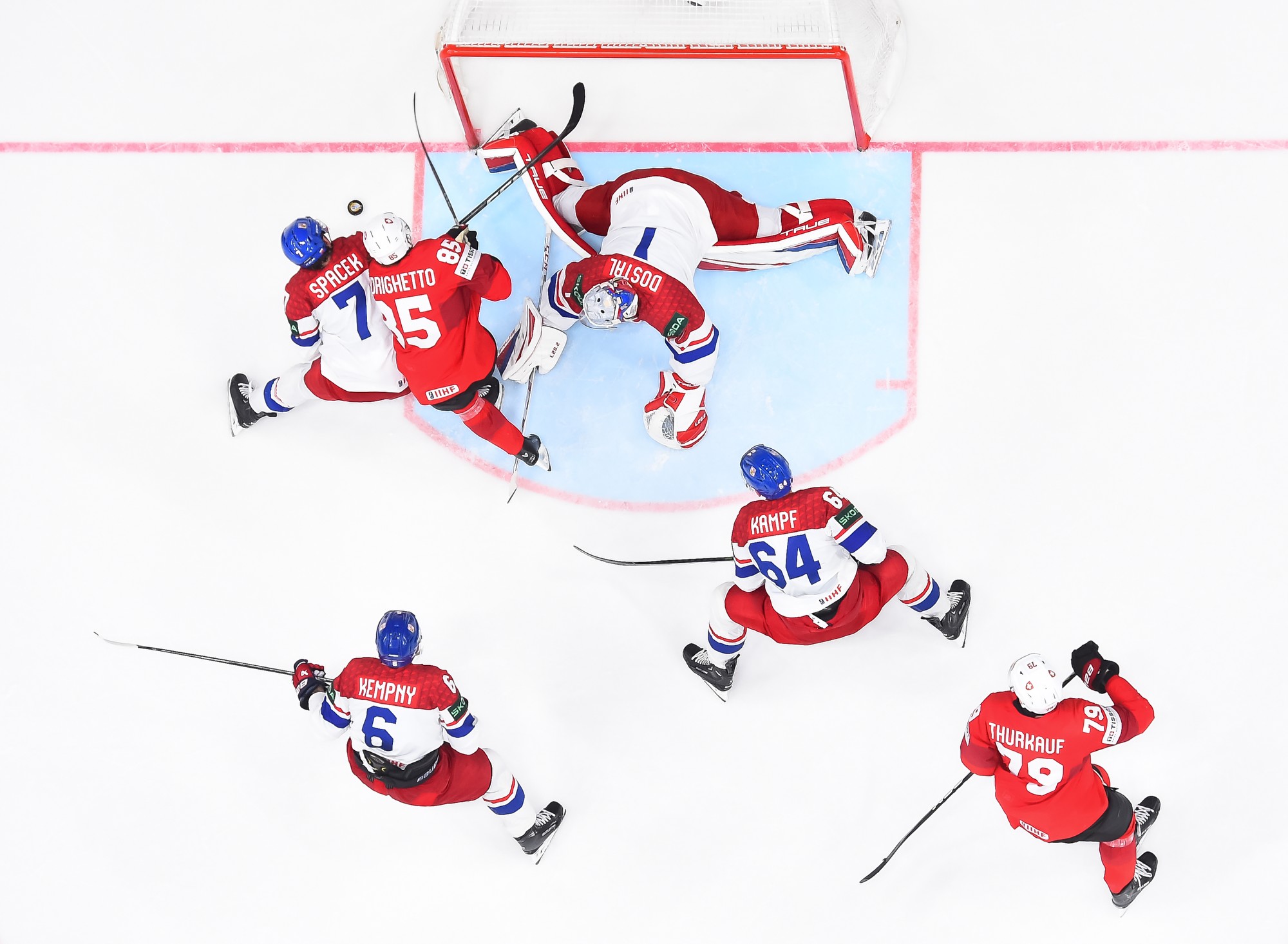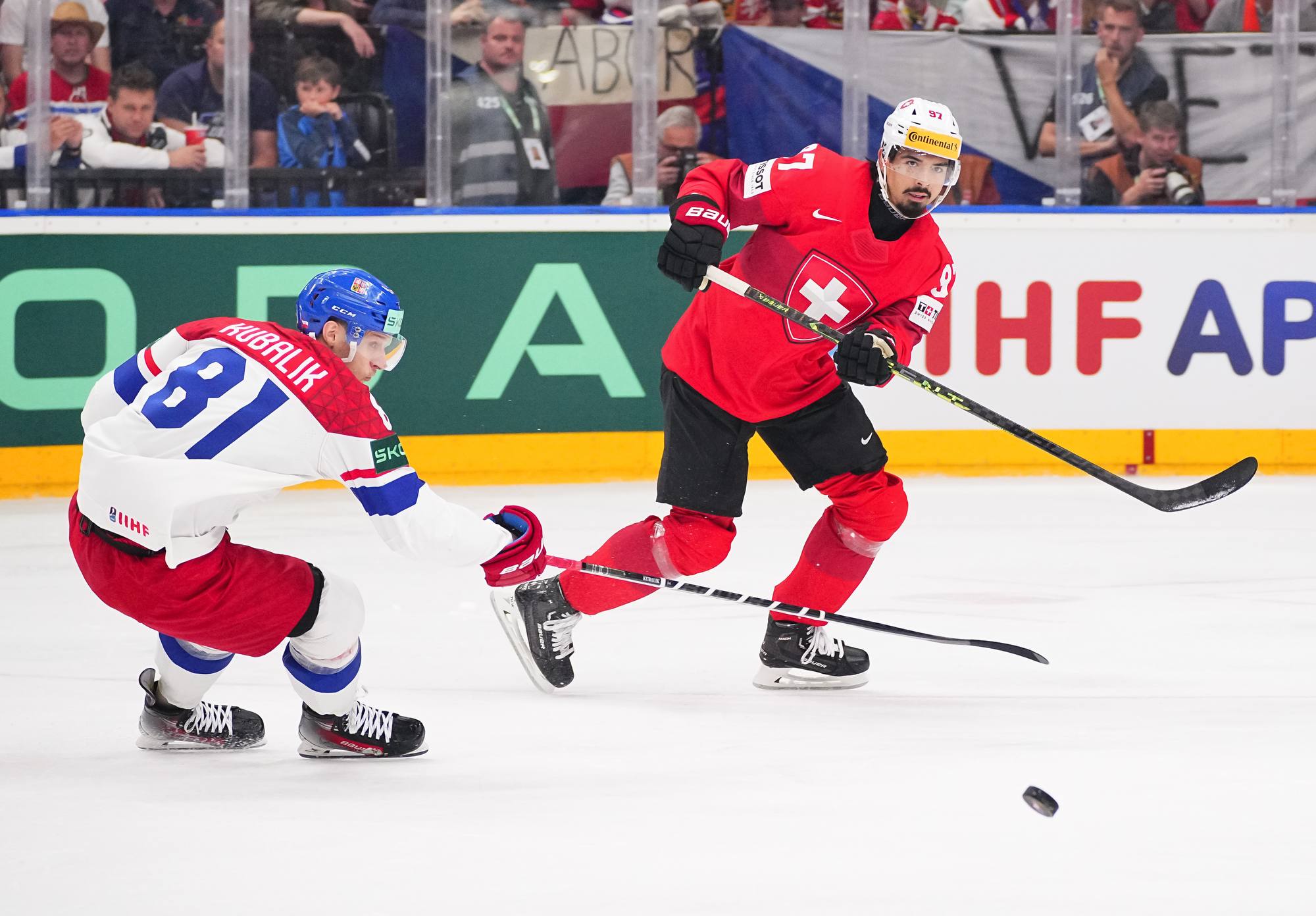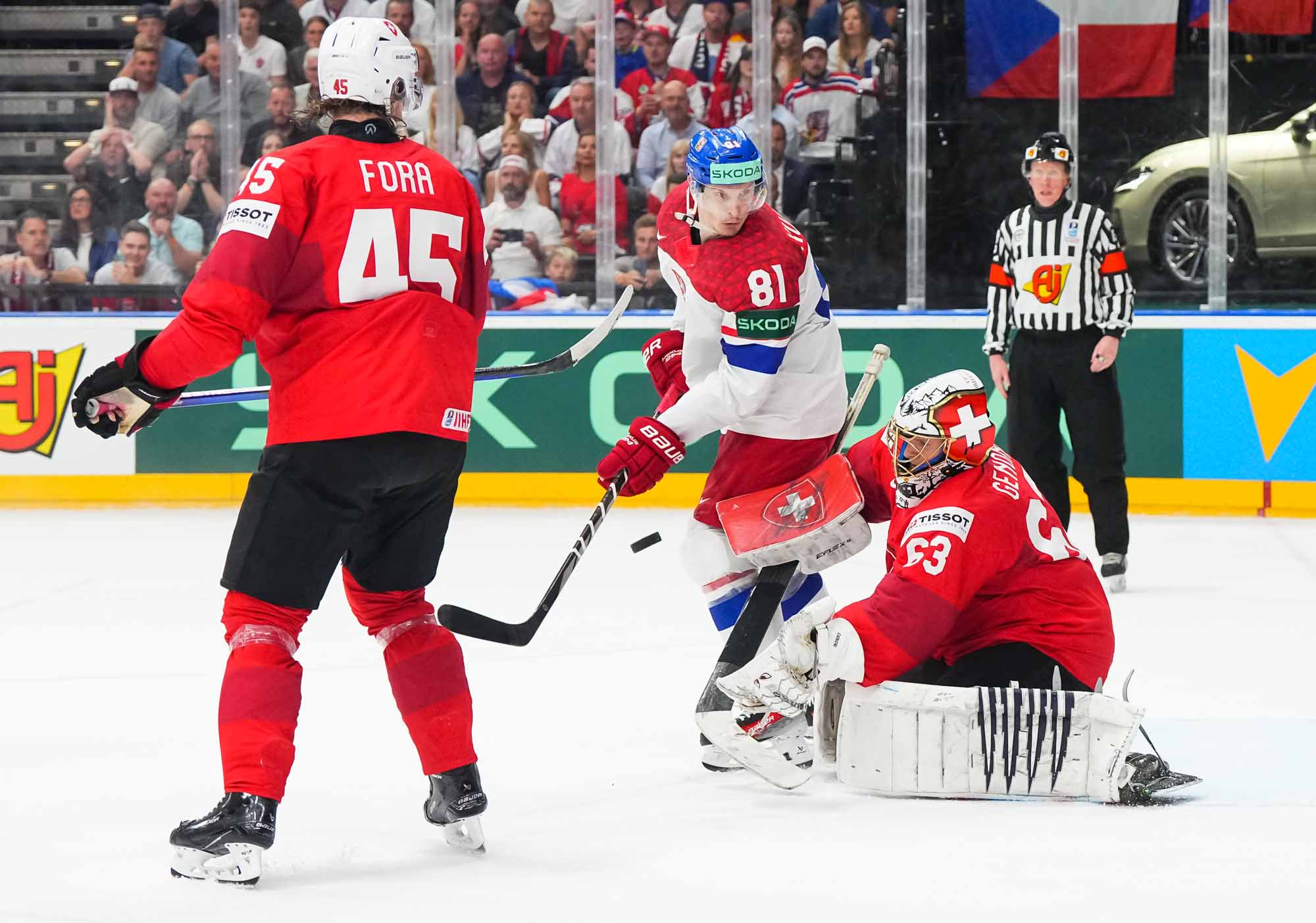 Just before the halfway point, Swiss rearguard Michael Fora went off for holding Palat behind Genoni's net. Yet the Swiss goalie frustrated both Pastrnak and Martin Necas on power-play one-timers. Switzerland's penalty kill has been surprisingly weak, ranking 15th out of 16 teams prior to the final, but delivered here.