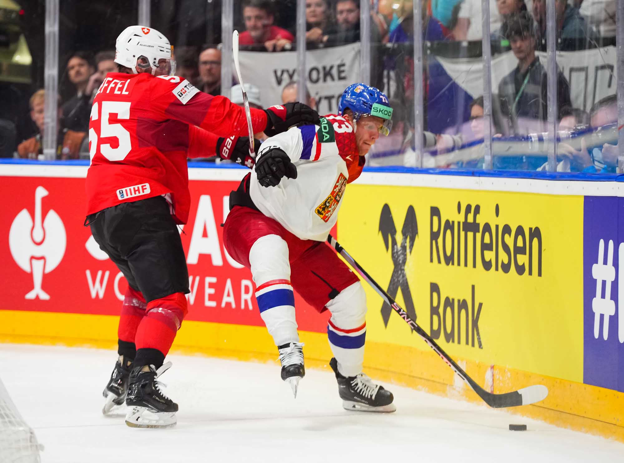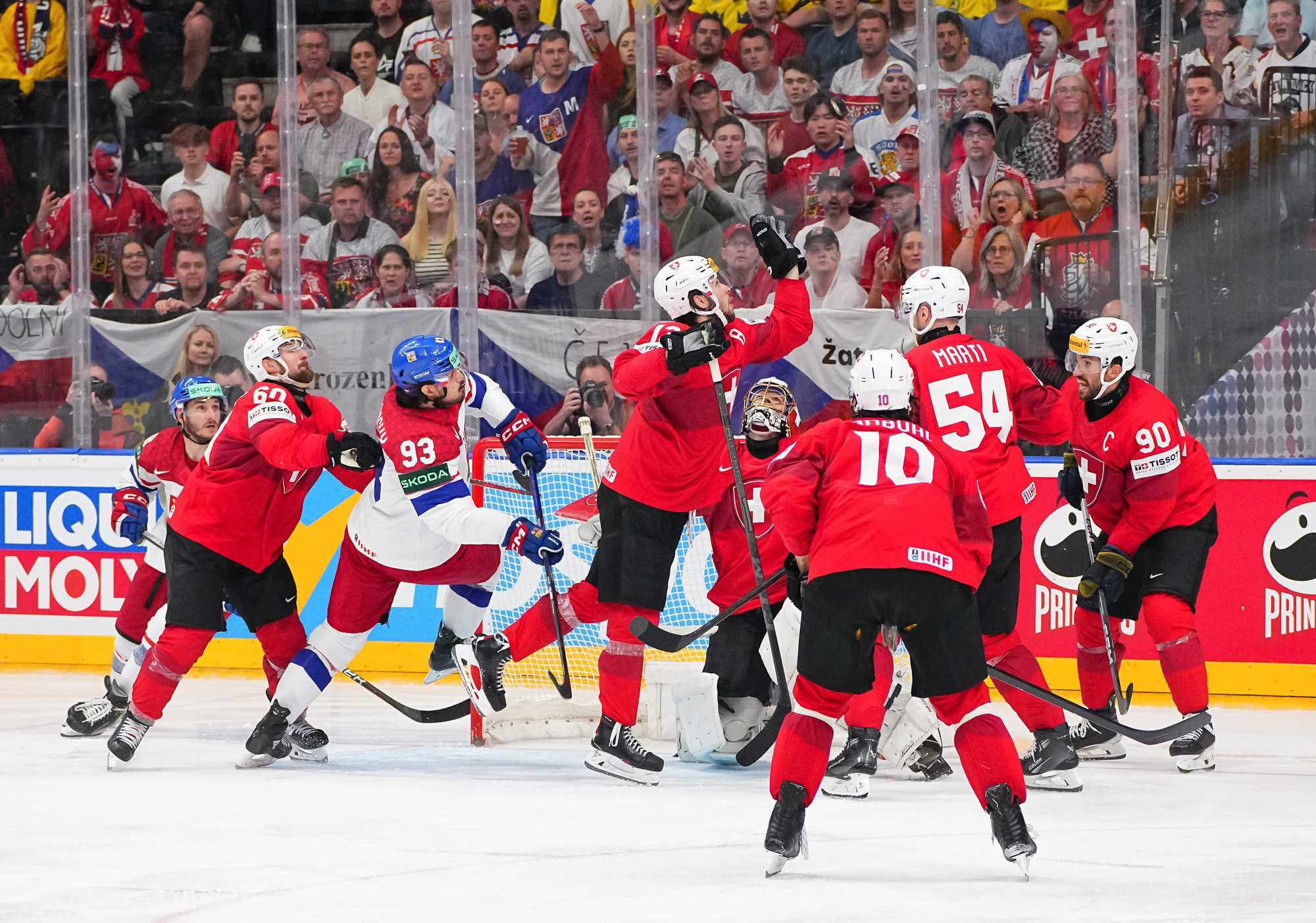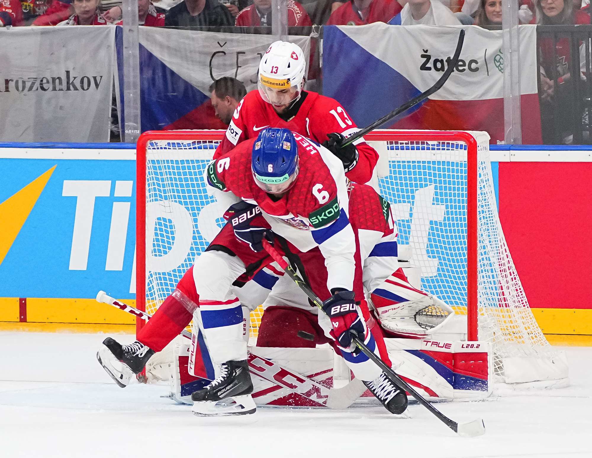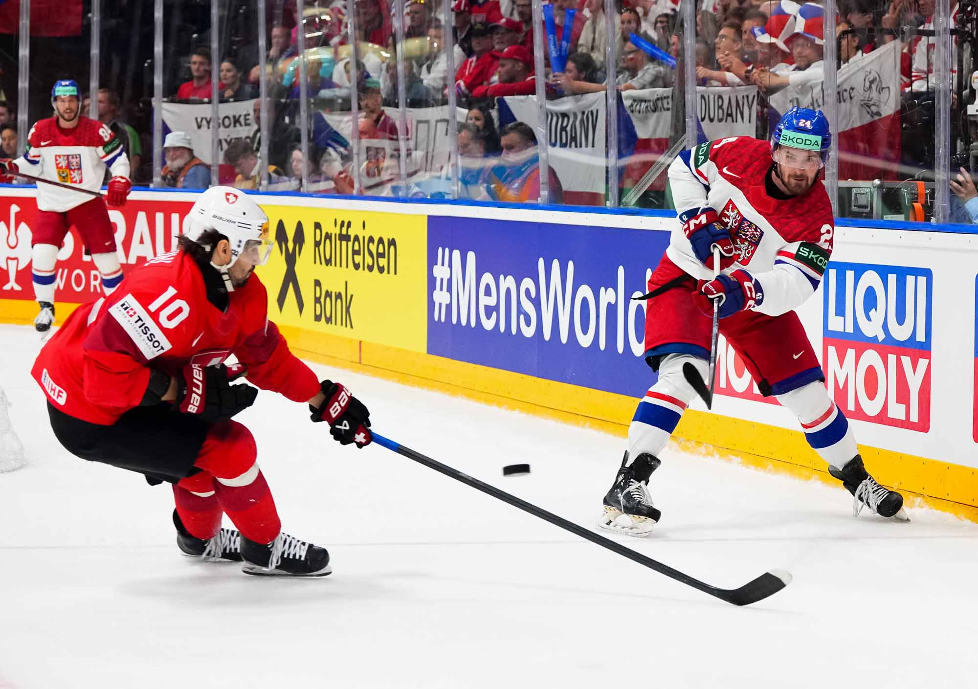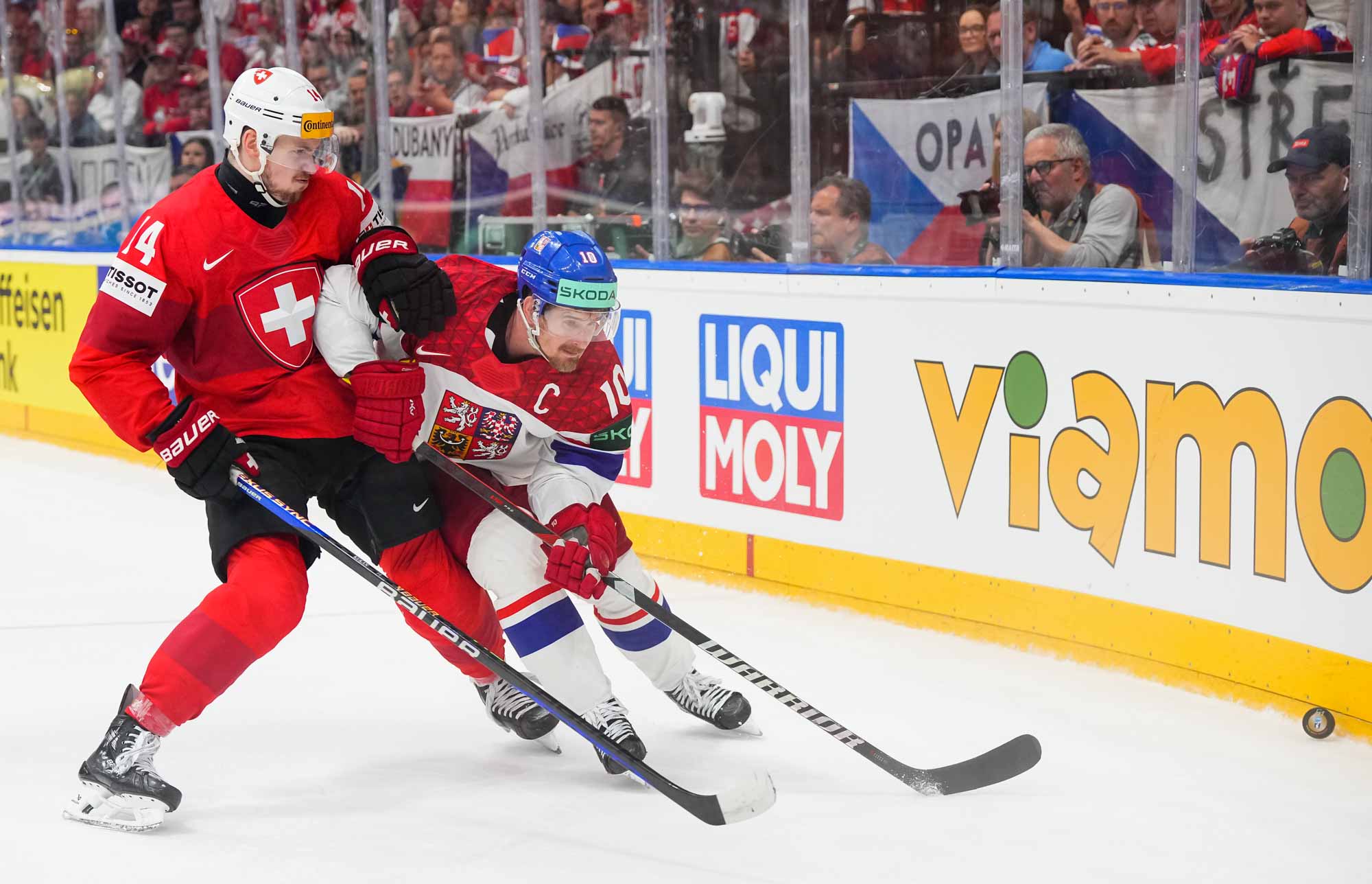 In an O2 Arena shaking with thunderous pro-Czech chants, horns, and drums, the teams set a furious pace in the penalty-free first period. Nearing the six-minute mark, forward Ondrej Beranek was so fired up that he accidentally leaped into the Swiss bench while trying to keep a puck in the attacking zone.