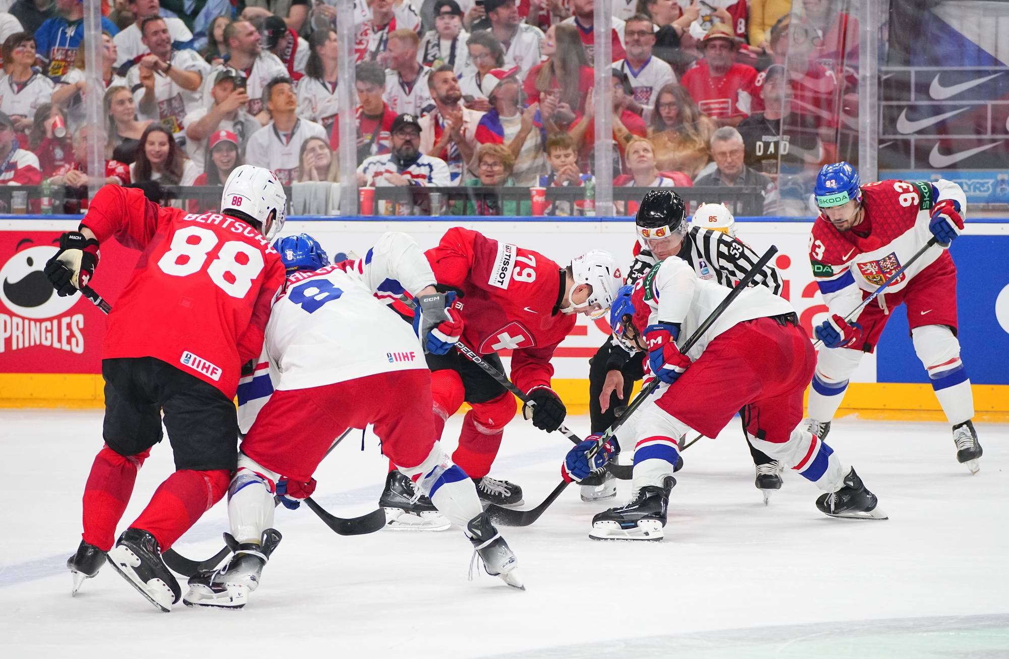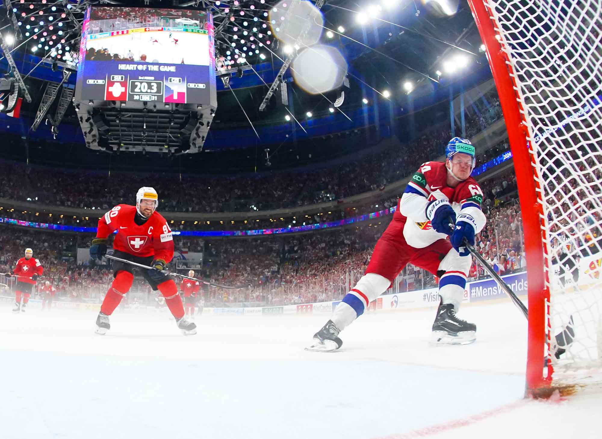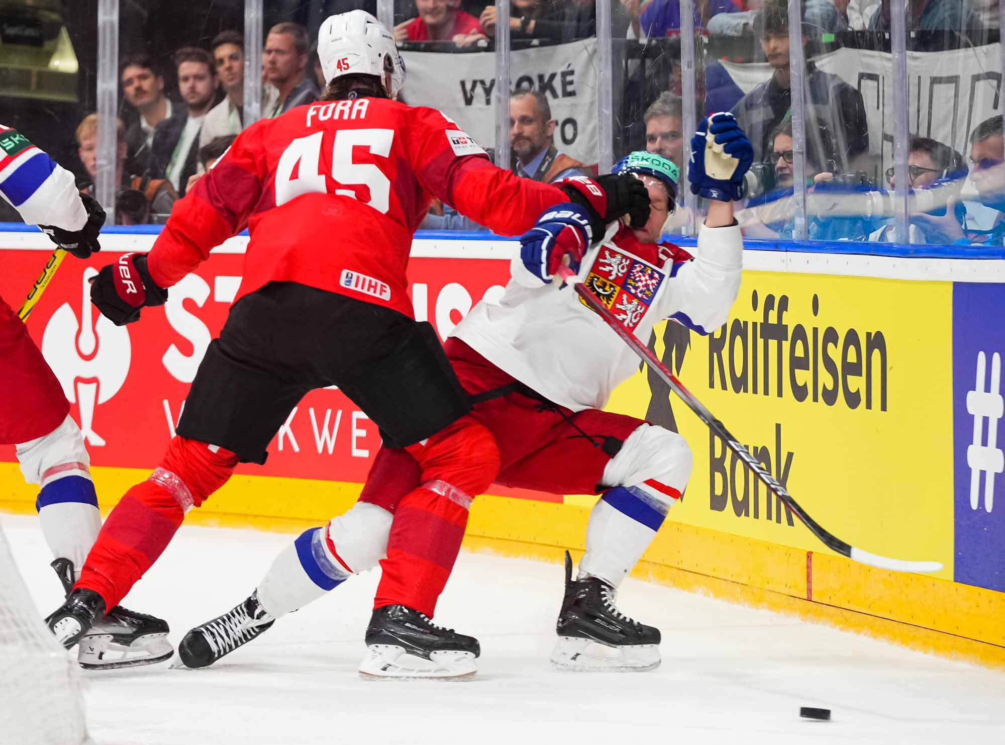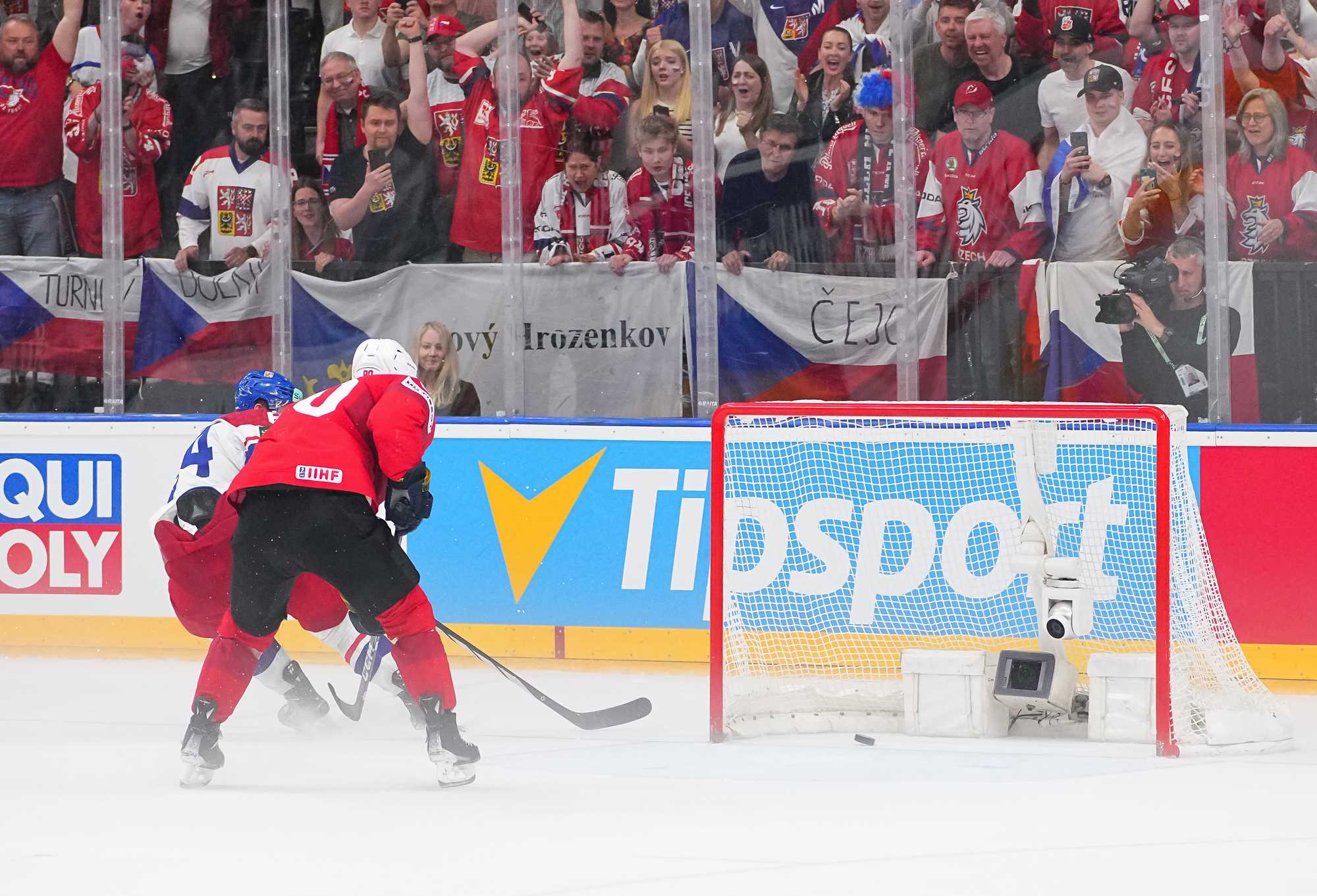 In an O2 Arena shaking with thunderous pro-Czech chants, horns, and drums, the teams set a furious pace in the penalty-free first period. Nearing the six-minute mark, forward Ondrej Beranek was so fired up that he accidentally leaped into the Swiss bench while trying to keep a puck in the attacking zone.
