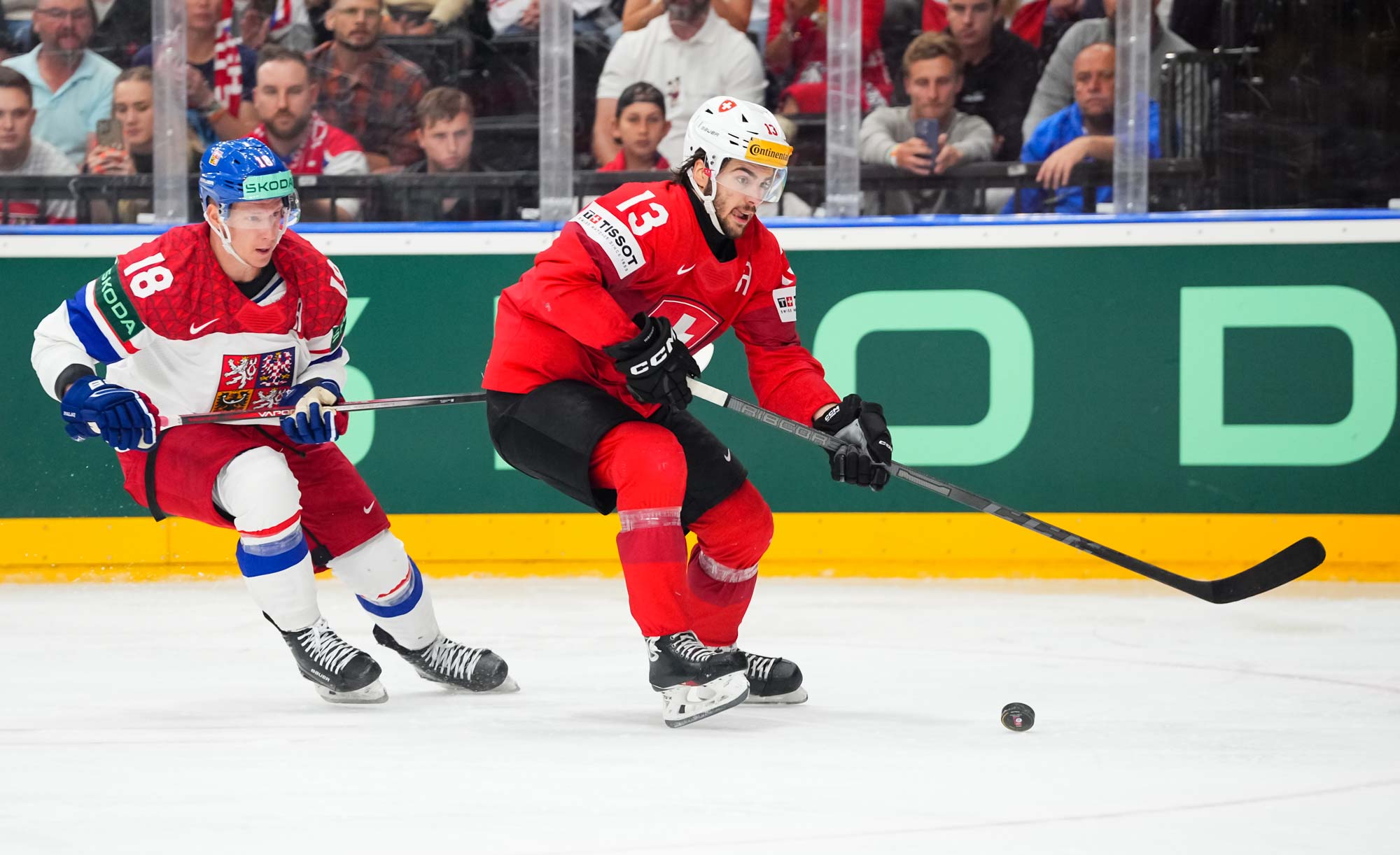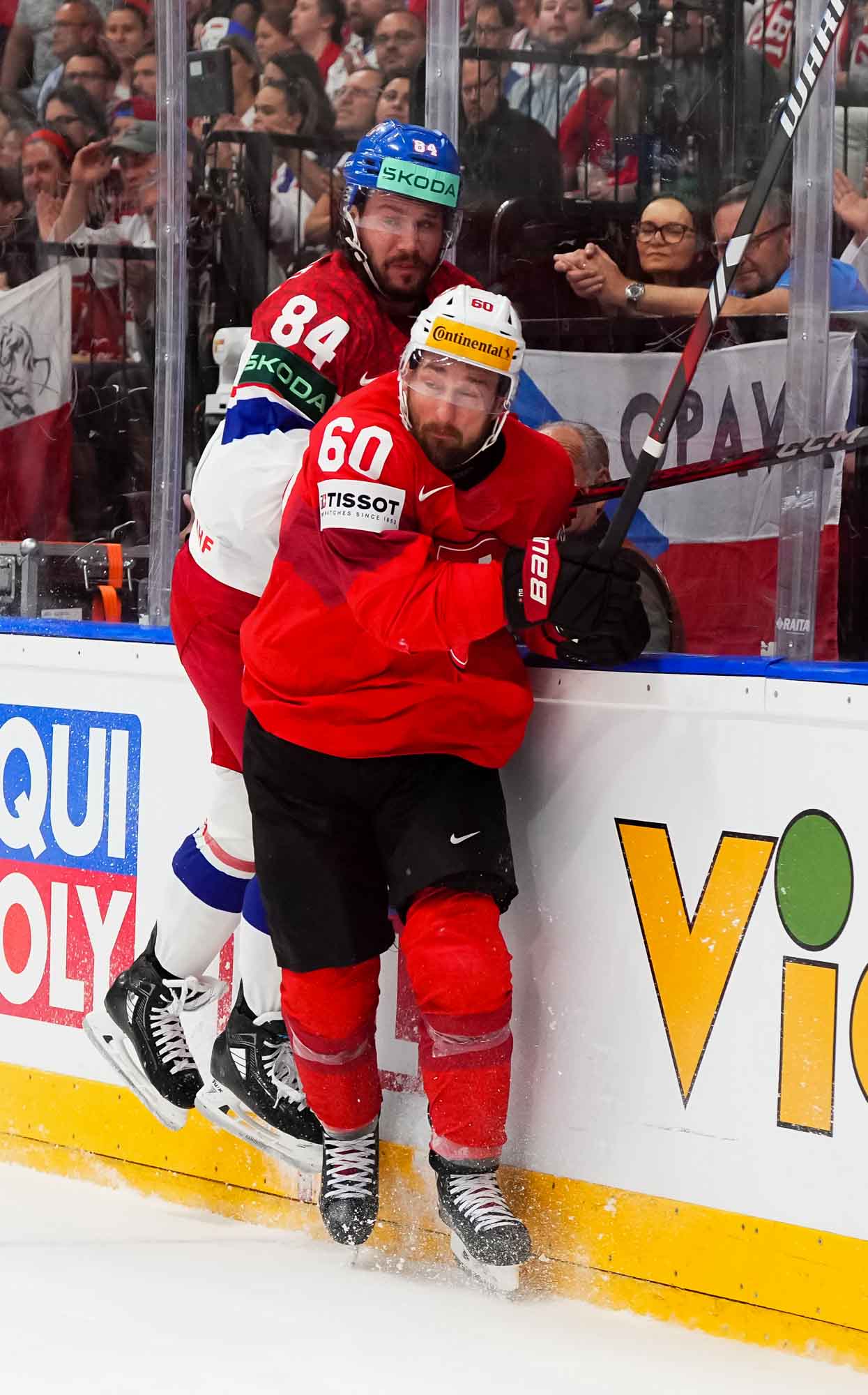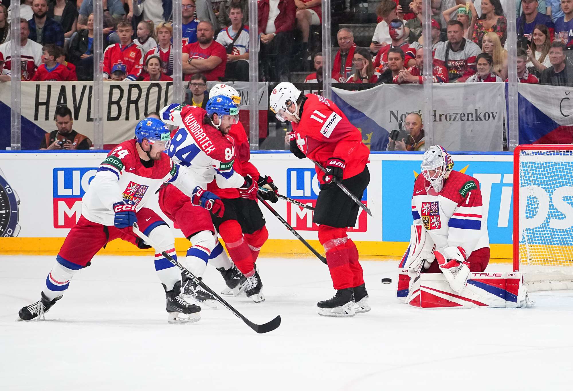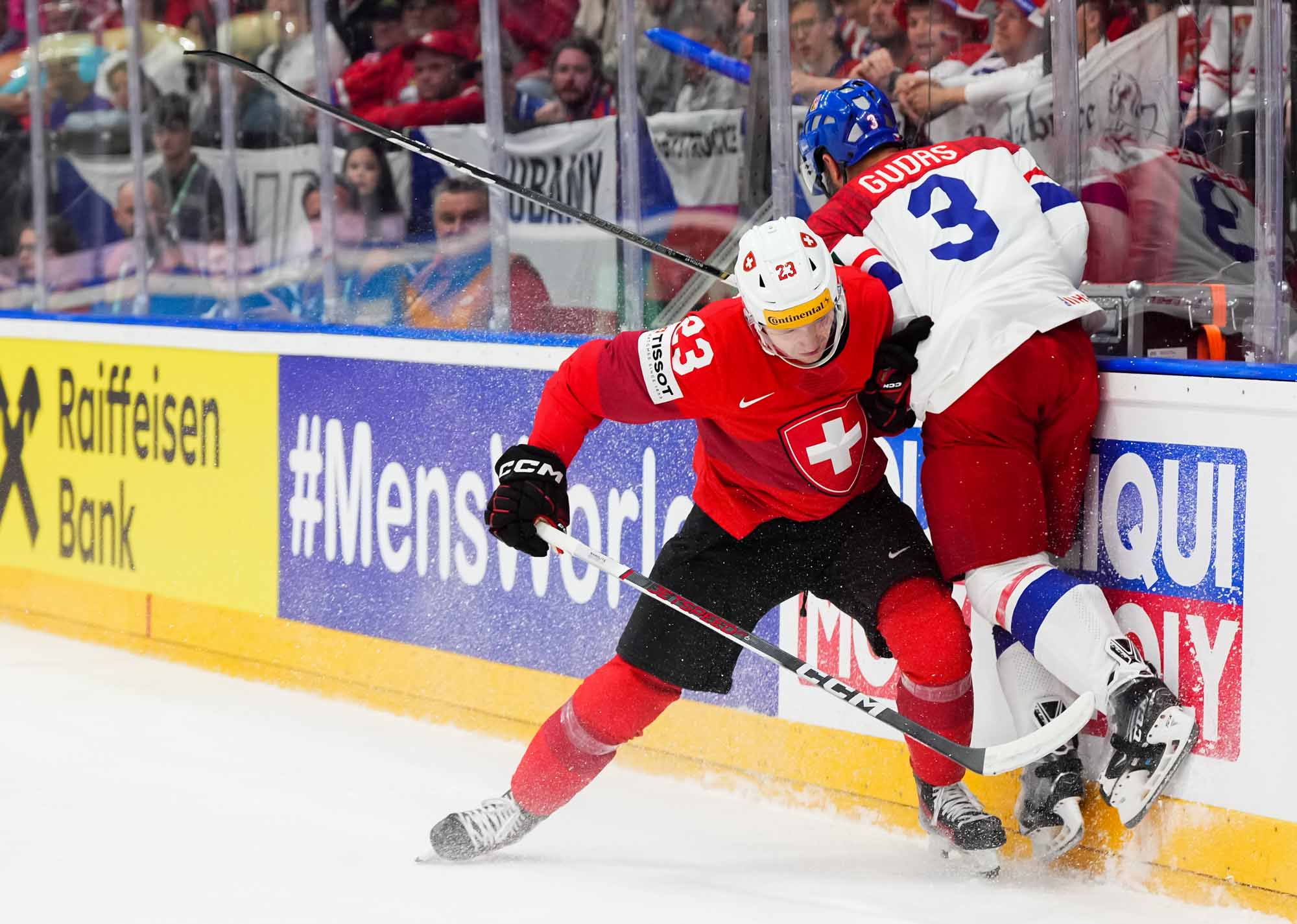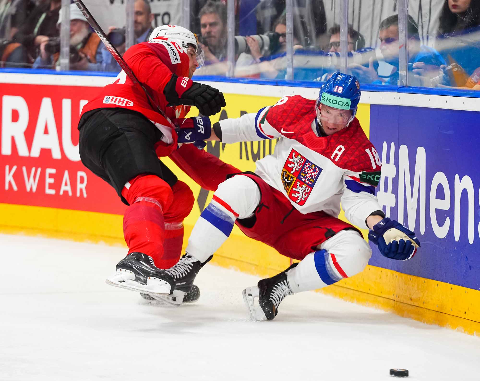 In an O2 Arena shaking with thunderous pro-Czech chants, horns, and drums, the teams set a furious pace in the penalty-free first period. Nearing the six-minute mark, forward Ondrej Beranek was so fired up that he accidentally leaped into the Swiss bench while trying to keep a puck in the attacking zone.